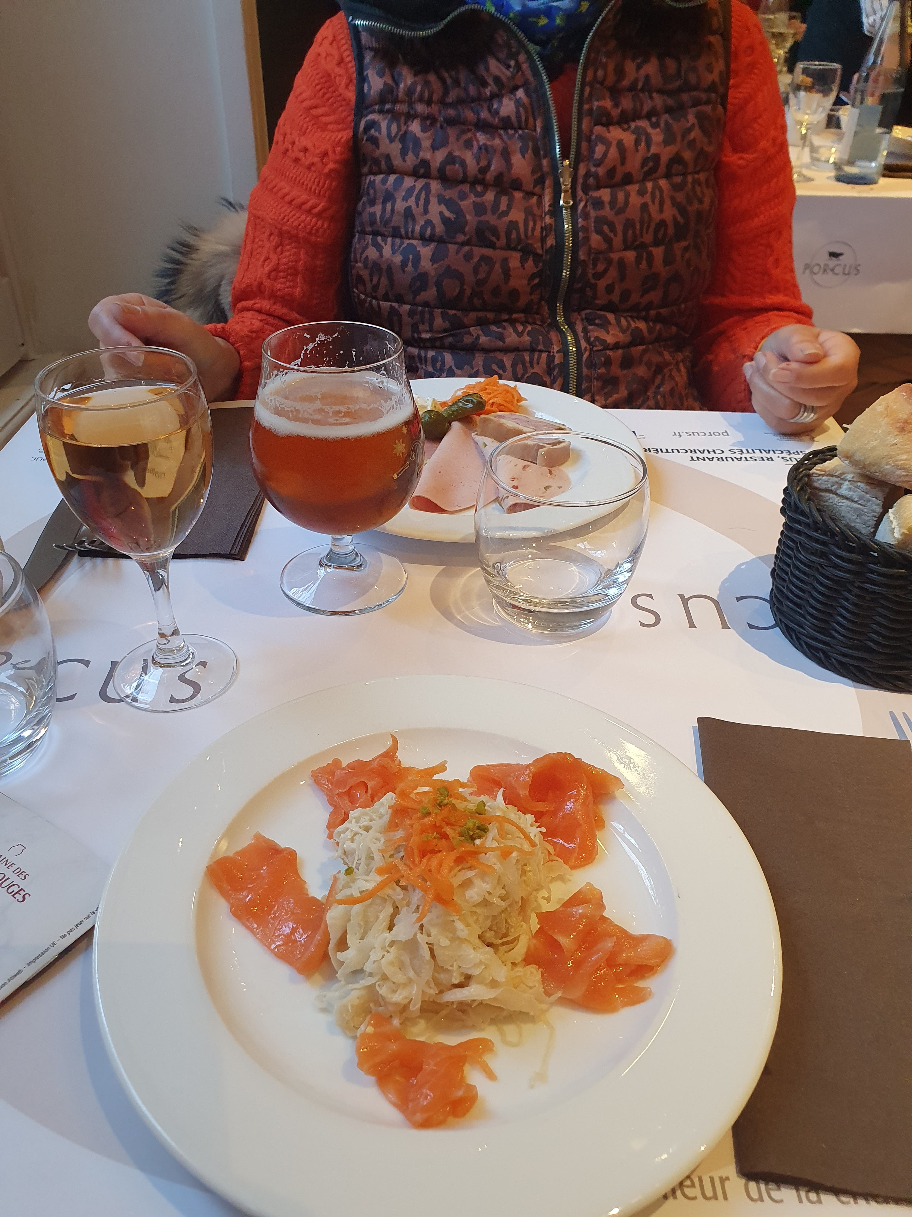 Venue comme chaque année au marché de Noël, une escale chez Porcus s'impose. Pas déçue depuis de nombreuses années. La cuisine est excellente, la salle de restaurant bien agencée, le personnel attentif. Il faut bien sûr s'arrêter à la charcuterie, et faire ses emplettes sans modération 😍😊