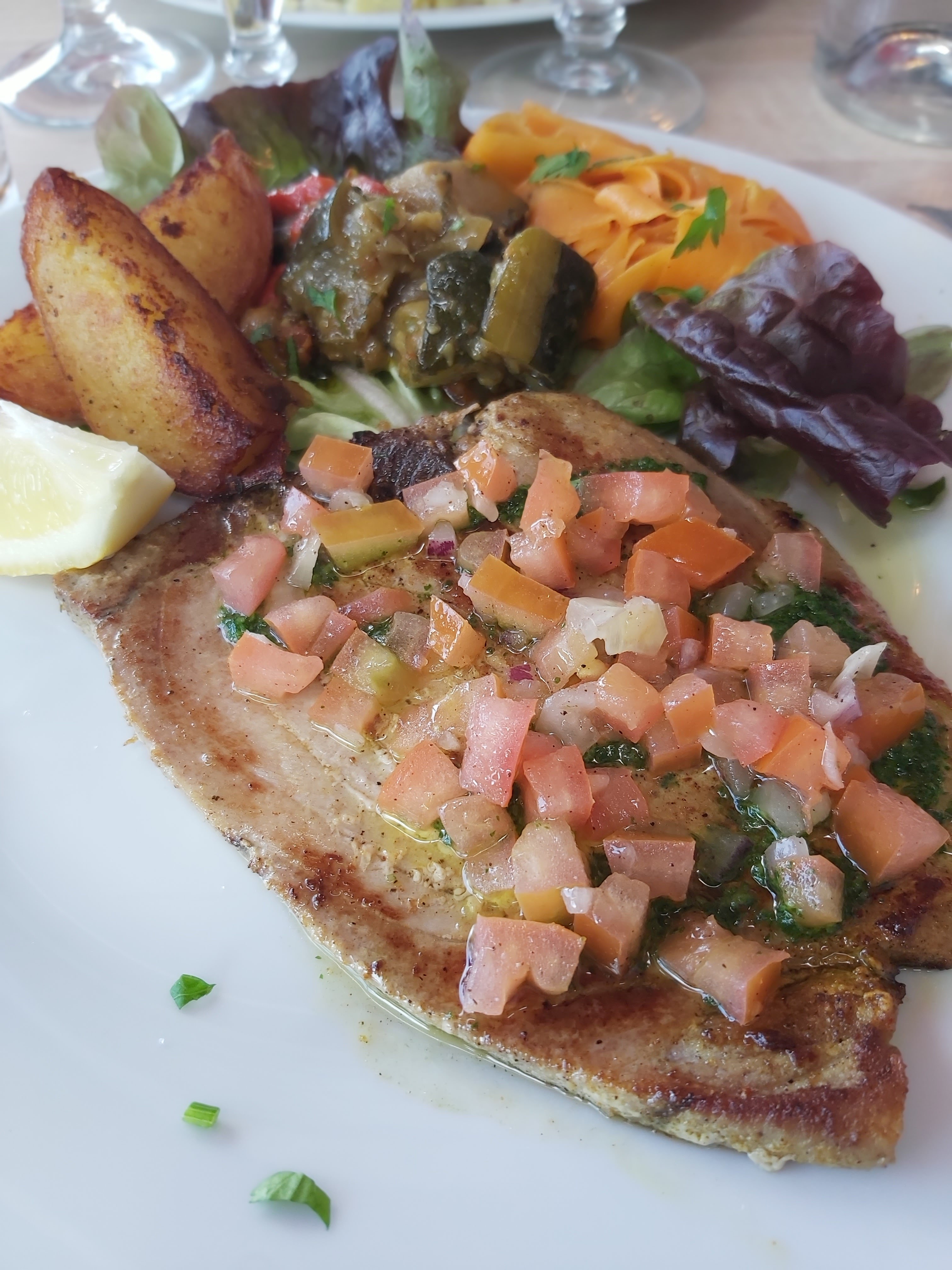 Très bon accueil. Patron arrangeant sur la composition du plat. Serveurs sympathiques. Repas excellents et copieux (poissons en ce qui nous concerne). Ambiance agréable. Établissement à recommander.