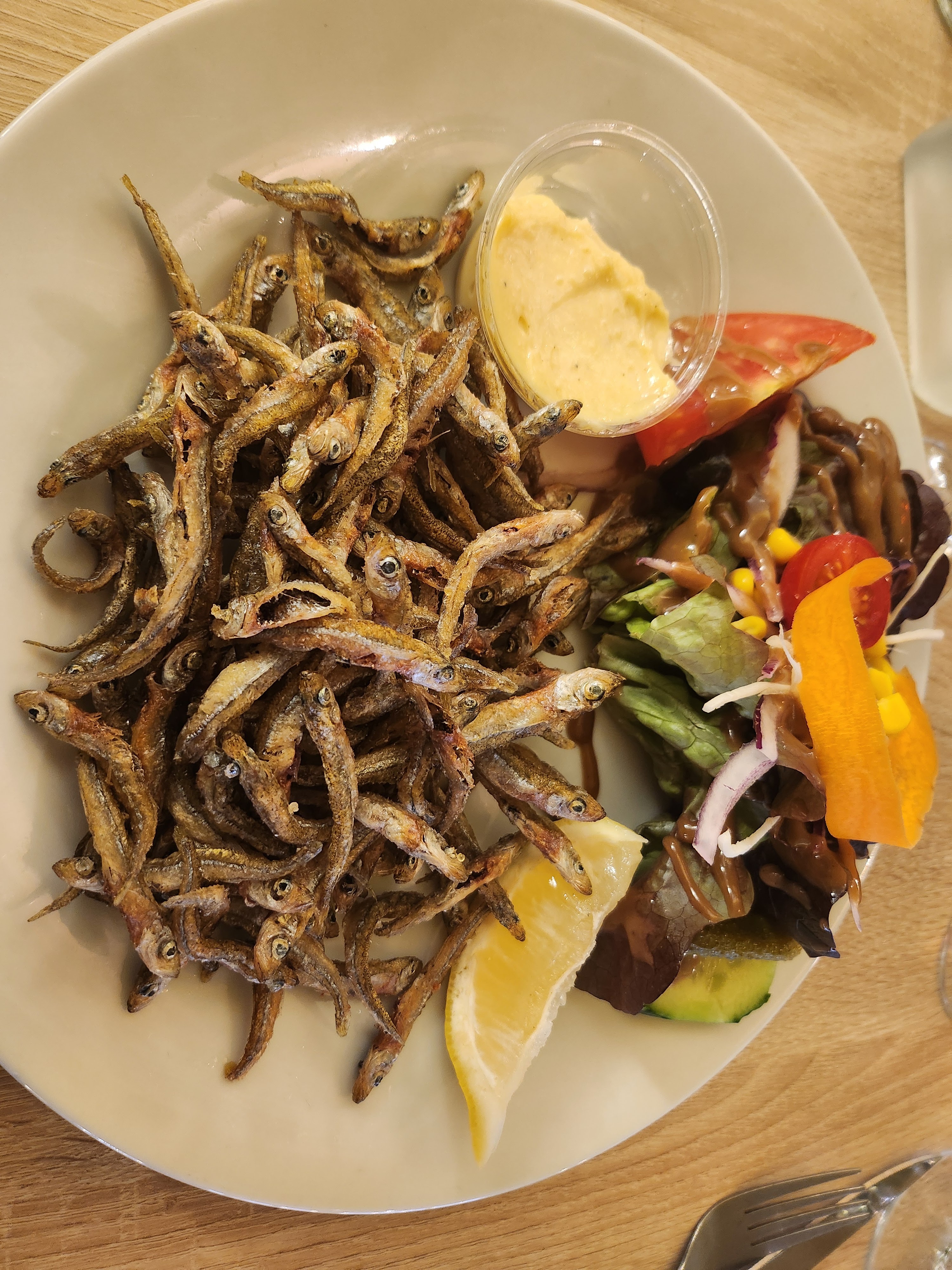 Le personnel était super sympa, les portions étaient grandes mais la nourriture n'était pas très bonne. Steak de thon sec et trop cuit, moules pas très savoureuses du tout. Les appâts blancs frits étaient ok. Le rosé maison n'était pas bon du tout.