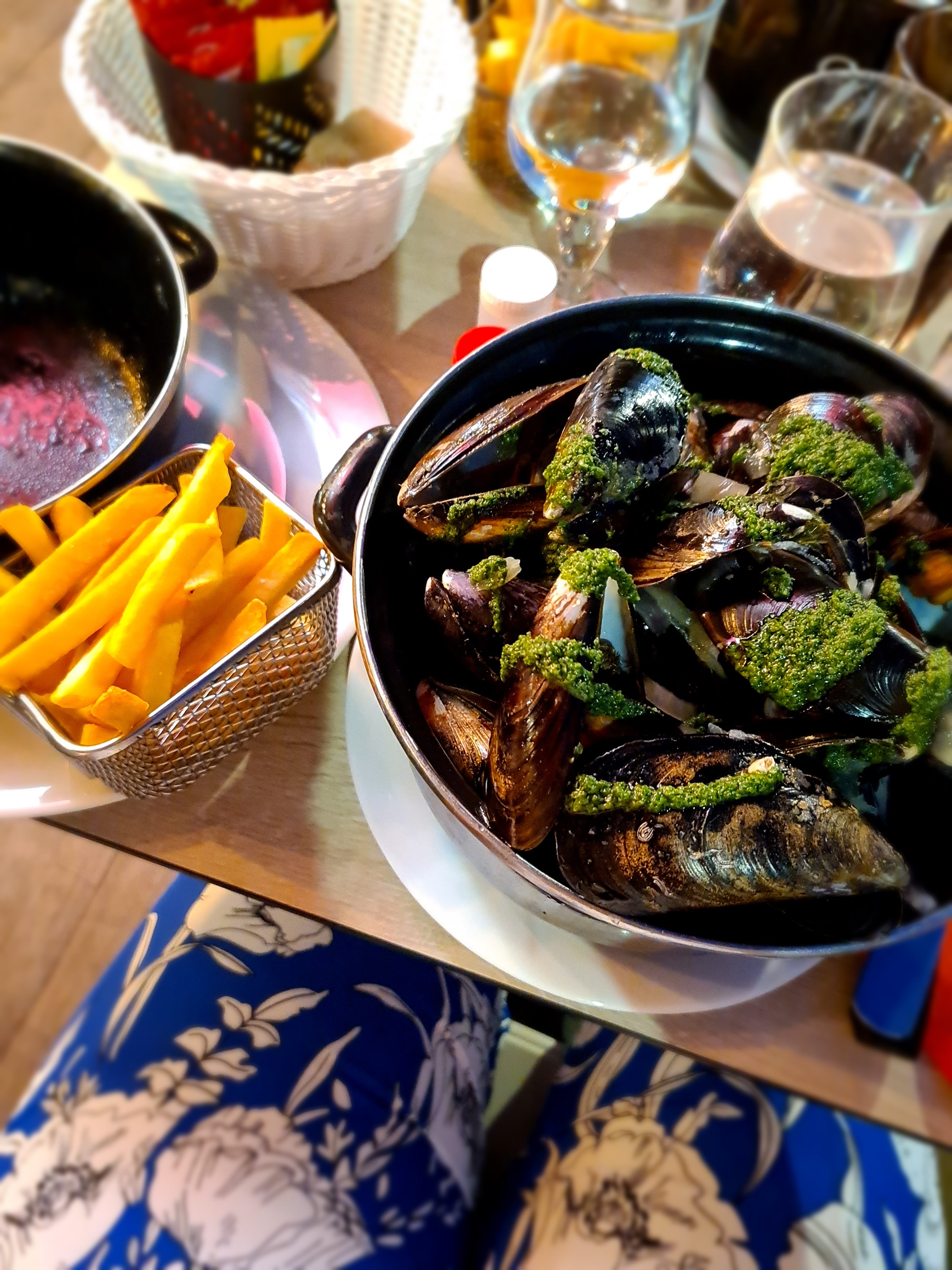 Le restaurant est super cosy les lustres magnifique les tables originales Le patron est adorable accueillant chaleureux Le personnel au petits soin vraiment agréable Et les moules excellentes et fraiches Allez y les yeux fermés