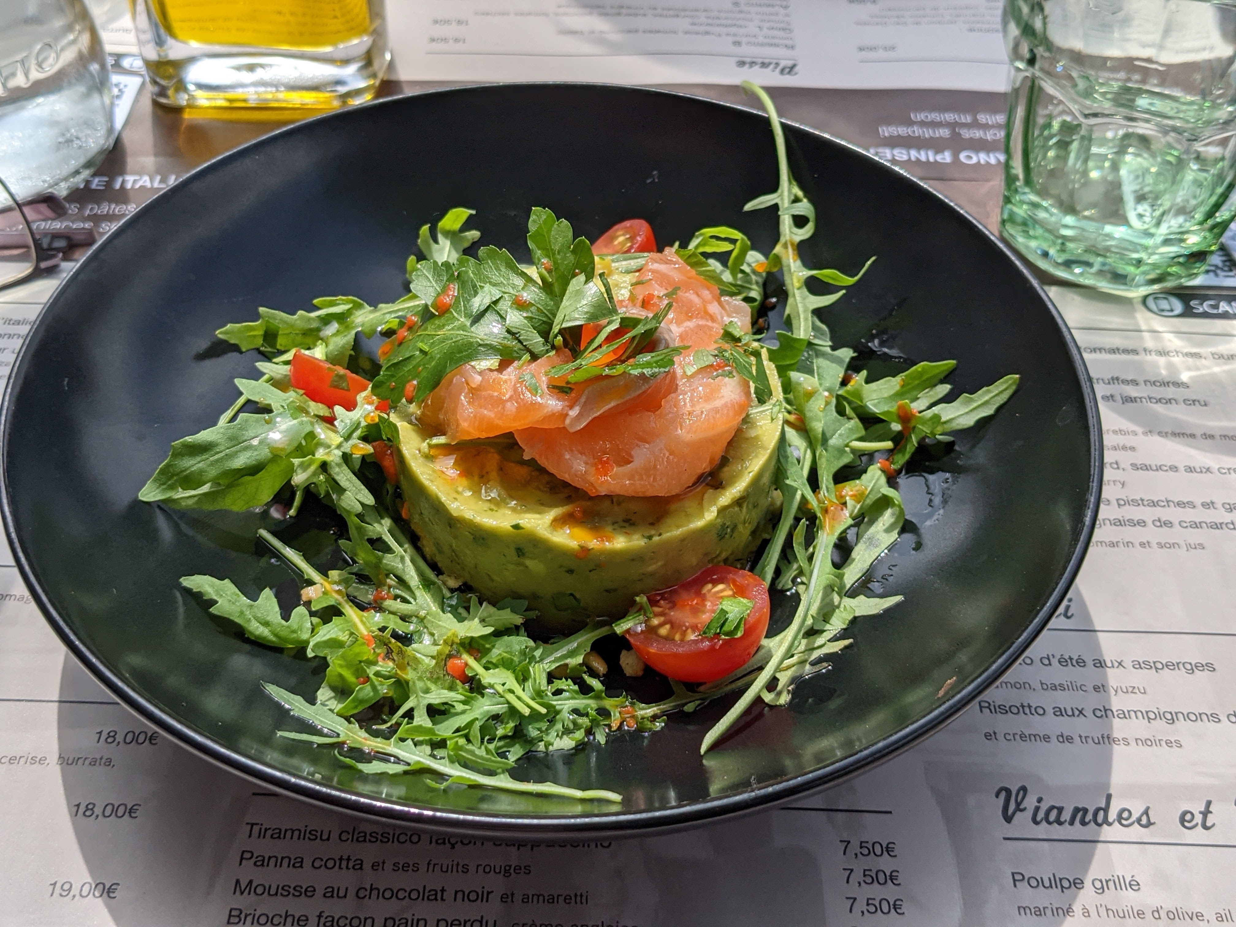 Pinceria. Excellente cuisine italienne et créative. Terrasse en bord de Seine ou patio. Service accueillant et sympathique.