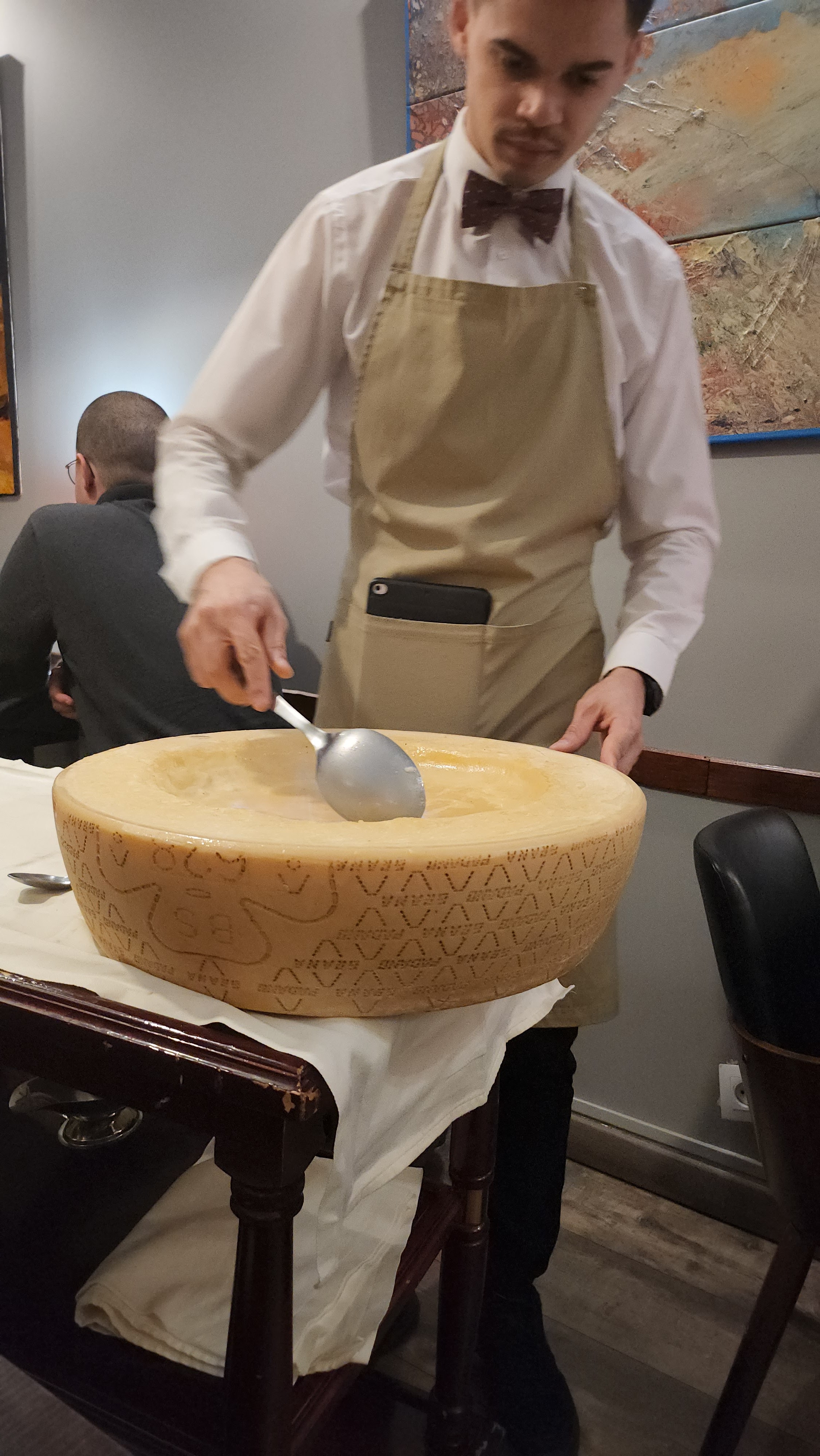 Cela fait plusieurs fois que je mange dans ce restaurant, et je n’ai jamais été déçu, ni du personnel, ni de ce que l’on peut y manger. J’ai pris des plats différents à chaque fois, qui étaient tous vraiment SUCCULENT ! De plus l’endroit est chaleureux, on s’y sent bien, et on pourrait y rester des heures pour savourer toutes ces bonnes spécialités italiennes. Une adresse à ne pas louper ! Je recommande vraiment ce restaurant Les pâtes dans la meule de parmesan ……. EXCELLENT !!!!!