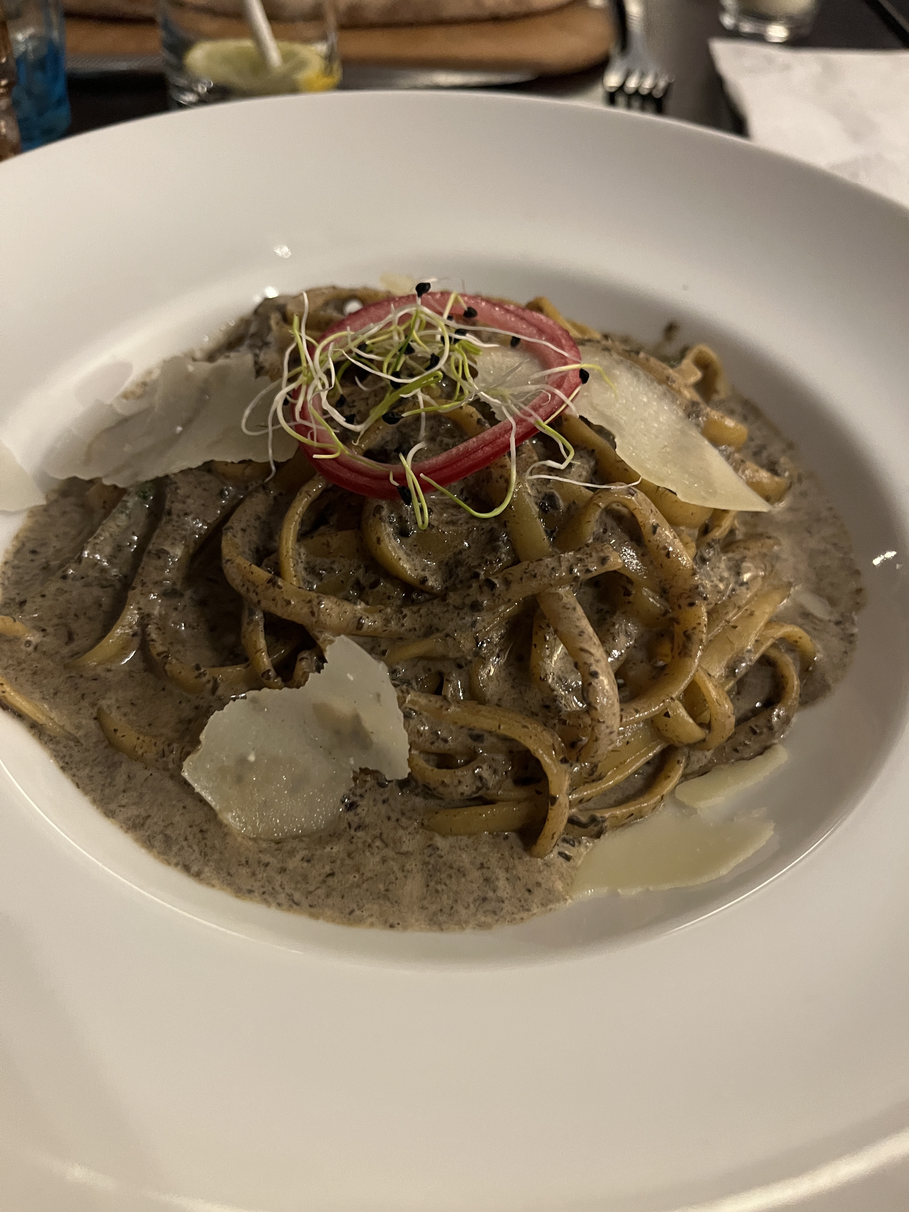 Délicieux! J’ai adoré la pappardelle au pesto de pistaches, tiramisu et cheesecake avec limoncello.