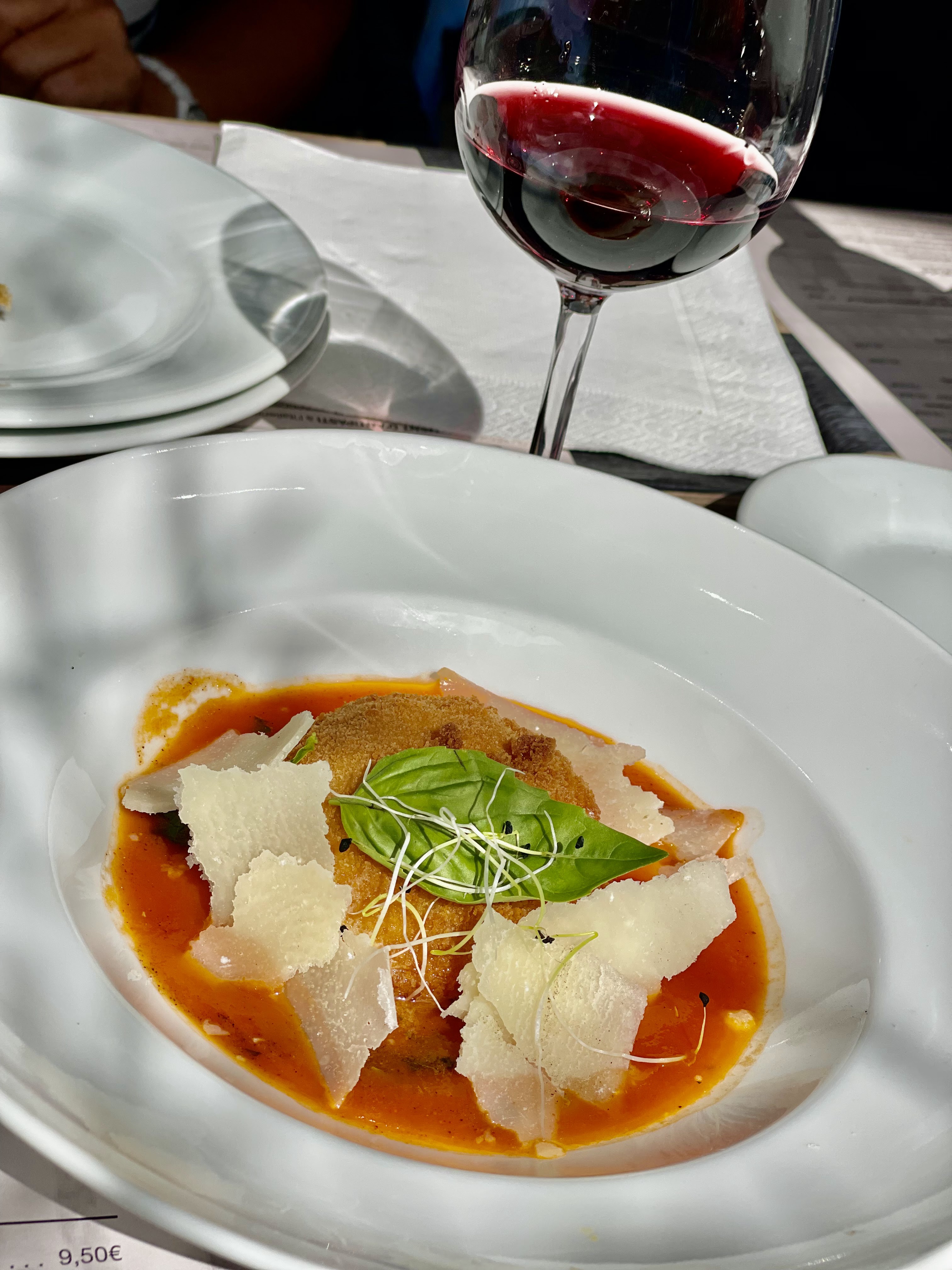Pâtes au Parmesan excellent et préparé devant nous. Patron très gentil et aux petits soins. Idem pour les serveur ! Les planches de charcuterie sont à tomber tellement c’est délicieux ! Assez cher, certes. Mais la qualité est absolument présente ! Nous y retournerons avec grand plaisir !