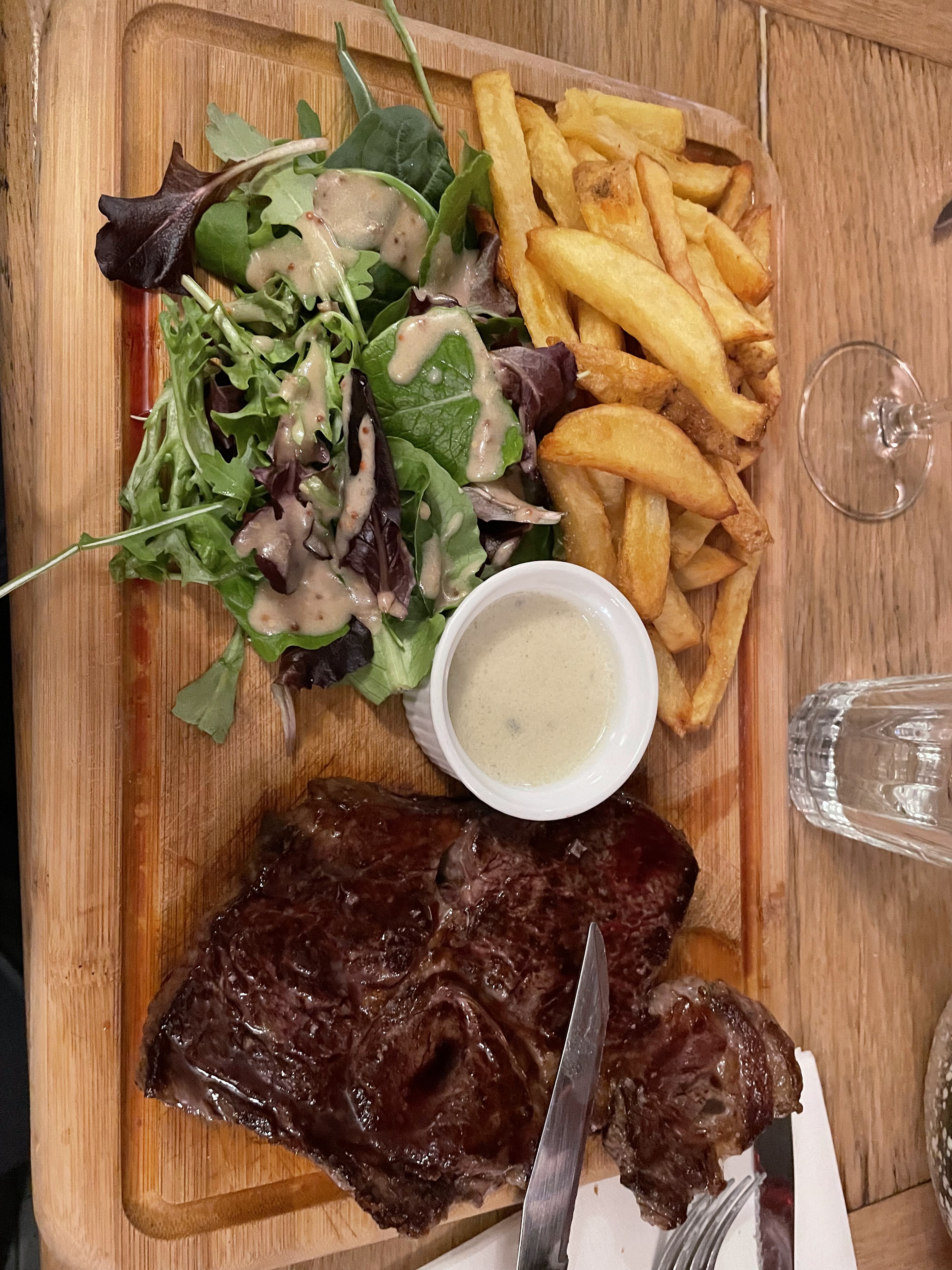 Bon restaurant français, personnel incroyable ! Nous avons essayé l'entrecôte et l'agneau. Étonnamment, la viande contenait beaucoup de gras, ce qui ne nous plaisait pas beaucoup. Je vous suggère d'essayer d'autres options. Le reste était bon