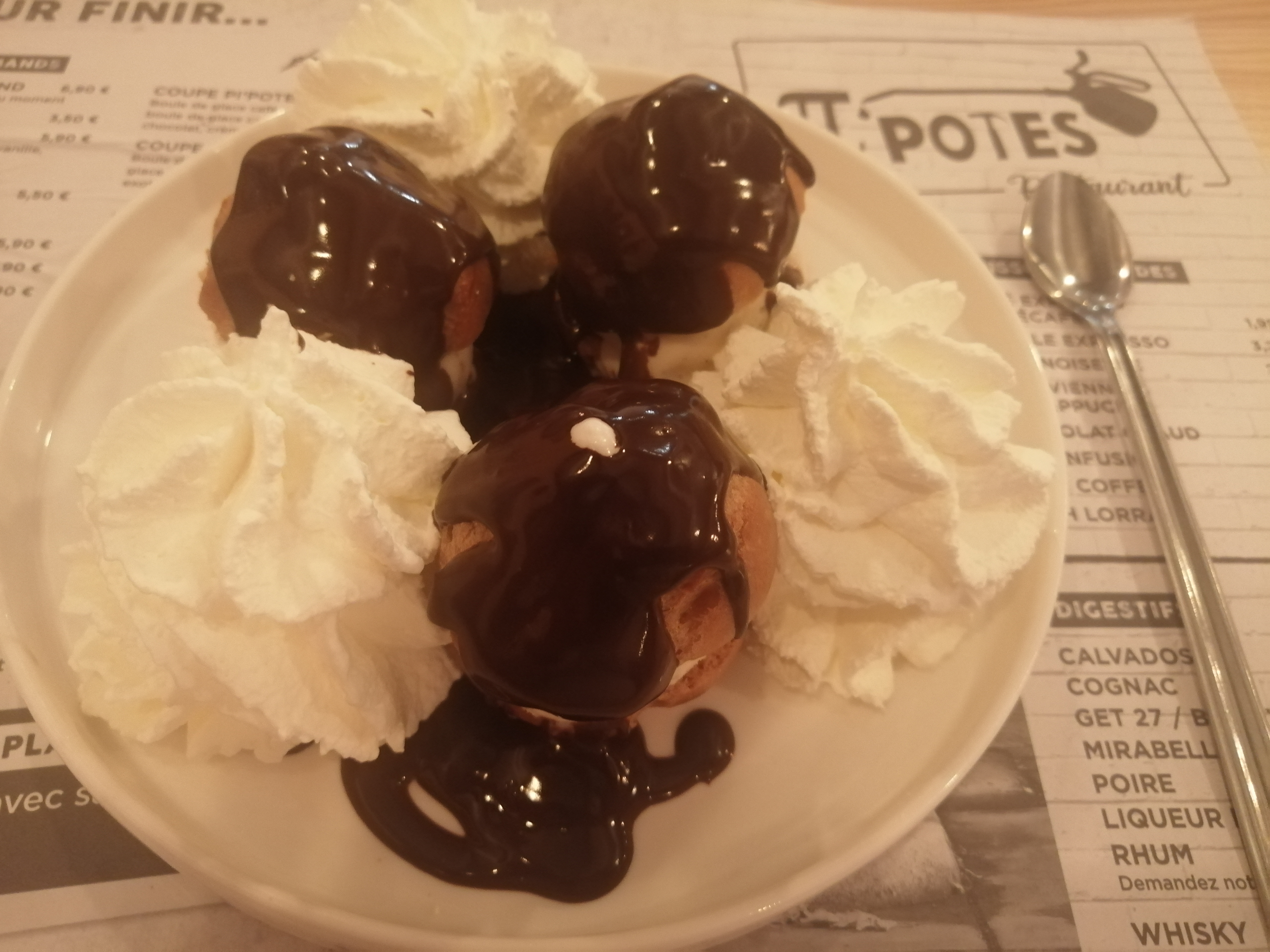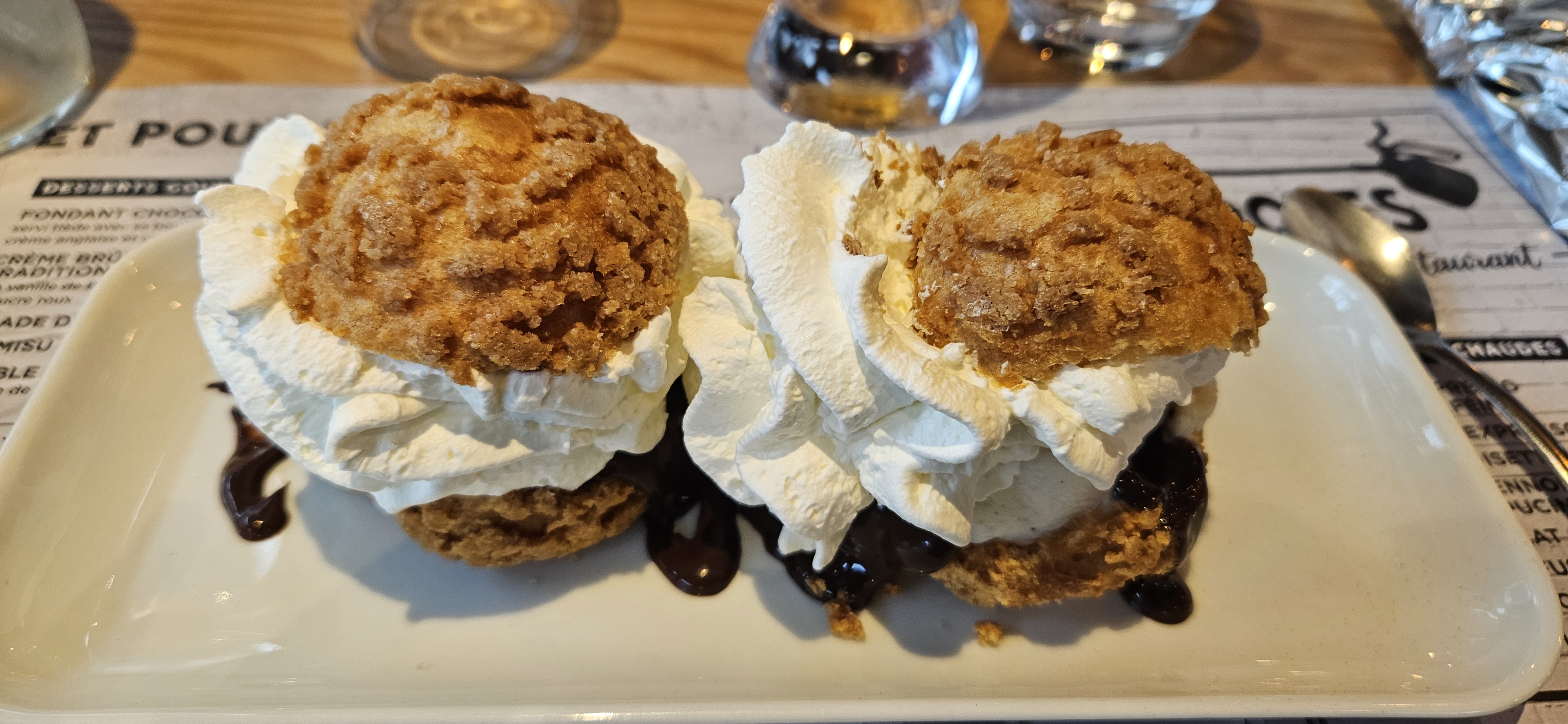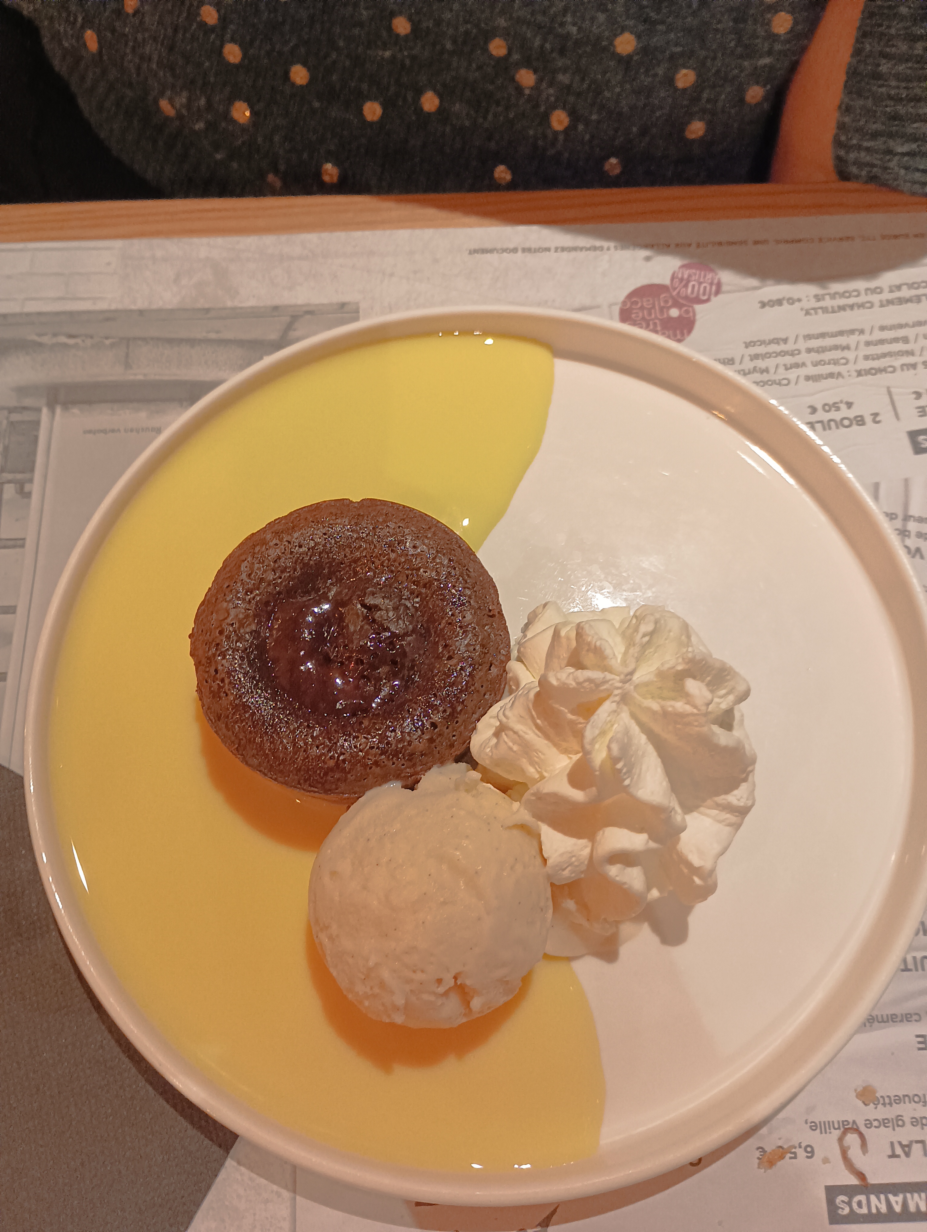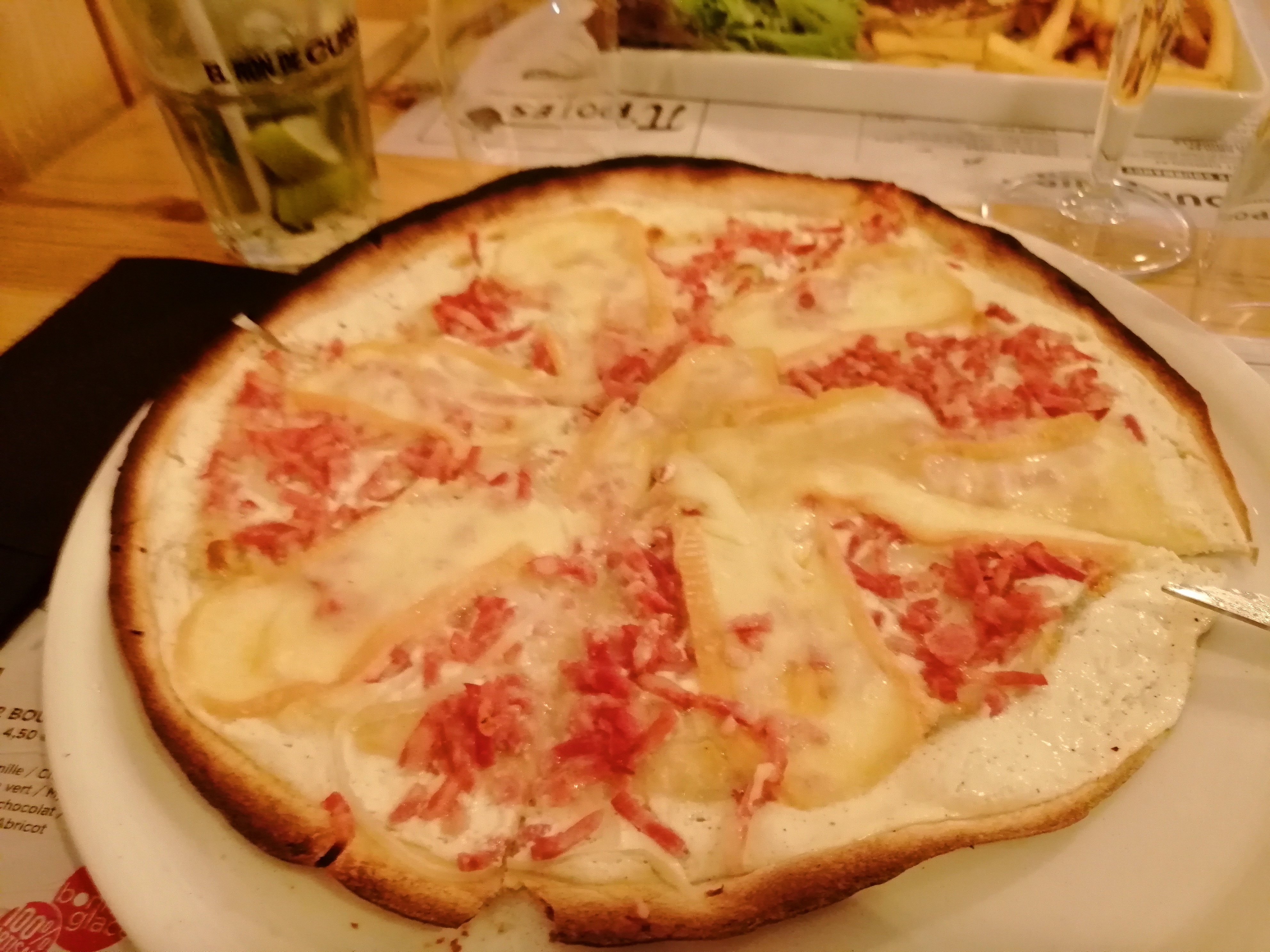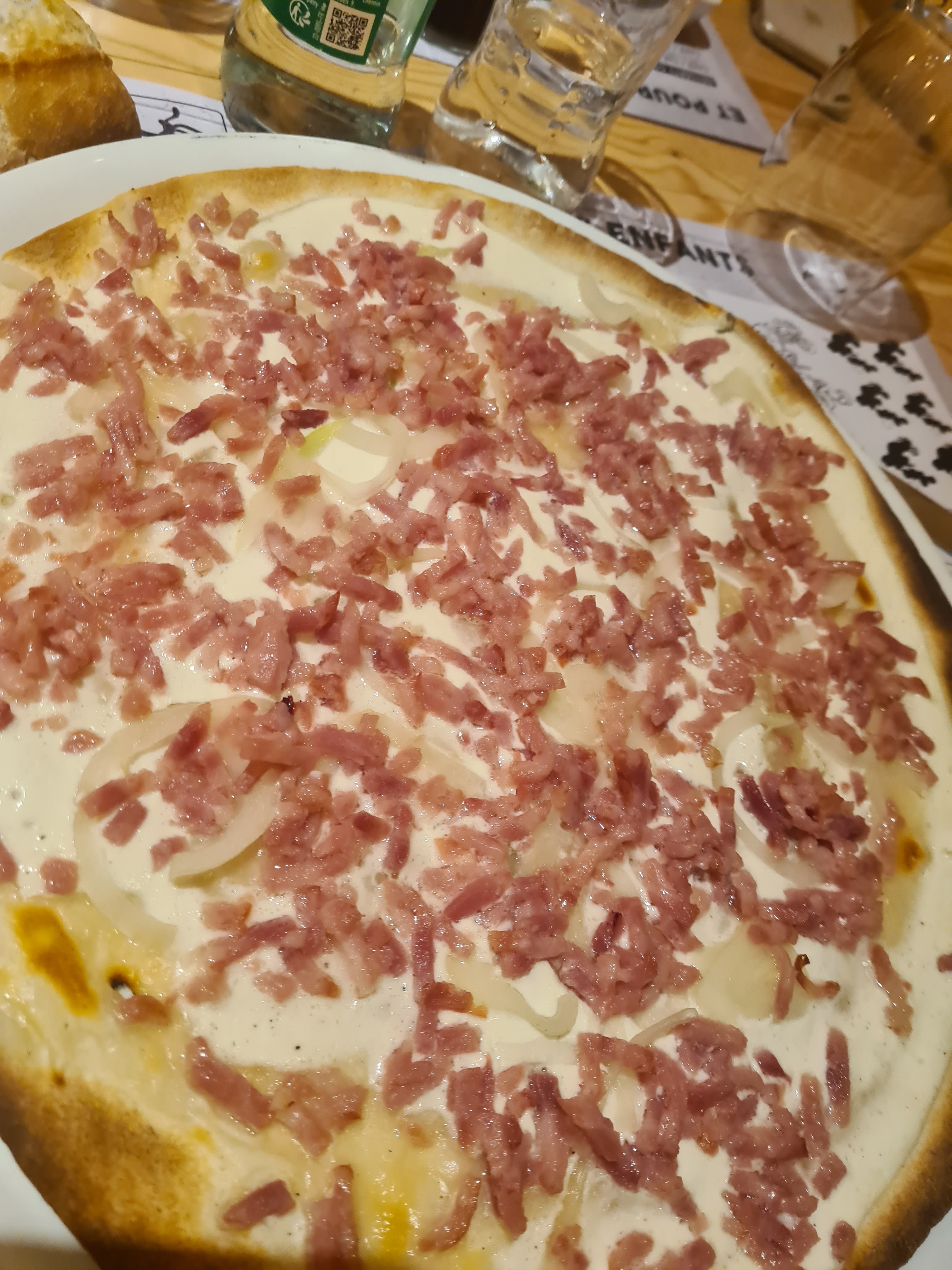 On ne se doutait pas en entrant dans ce petit lieu sans prétention que nous serions si bien servi. C'était les assiettes les plus copieuses de notre séjour à Gérardmer. J'ignore si c'est clair sur la photo mais les flamms sont vraiment très grande. En entrée nous avions pris des camembert oignons et frites de patates douces c'était excellent je vous conseille. En dessert il y a un fondant au chocolat et un banana split. La photo de ce dernier ne lui rend pas honneur, sous la chantilly il y a 3 boules de glaces et du coulis de chocolat, j'ai adoré 🥹 Le service était rapide et de qualité. Nous avons payé 42€ pour une entrée, deux flamms et deux desserts. C'est plus que raisonnable je dirais même que c'est une affaire 😊