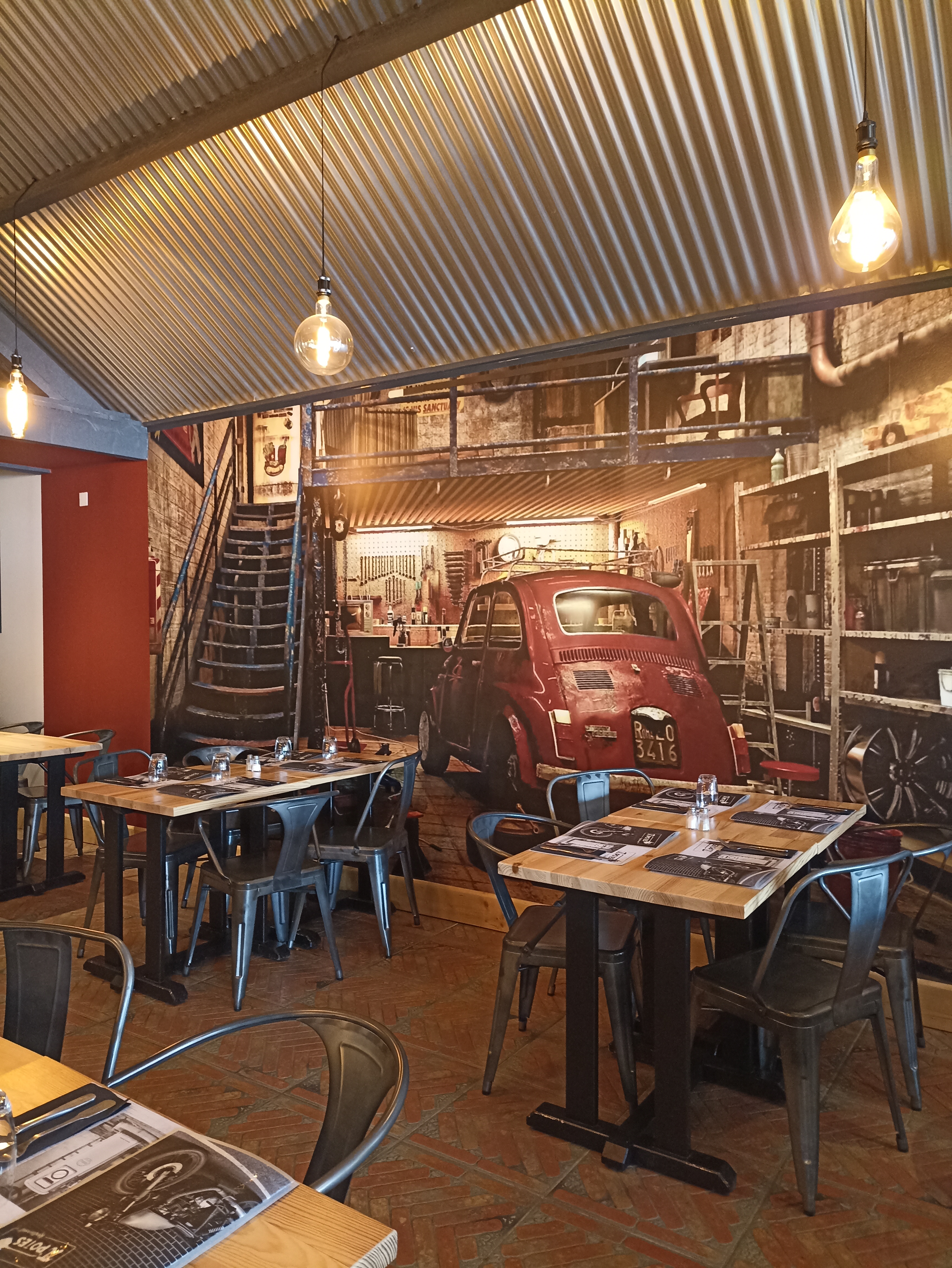 Dès l'entrée déco sympa et bon accueil de la demoiselle. À l'intérieur déco ambiance garage bien pensée. Services et repas au top. Un vrai régal et super bien servi. Dommage que j'habite si loin je serai devenu un client fidèle....