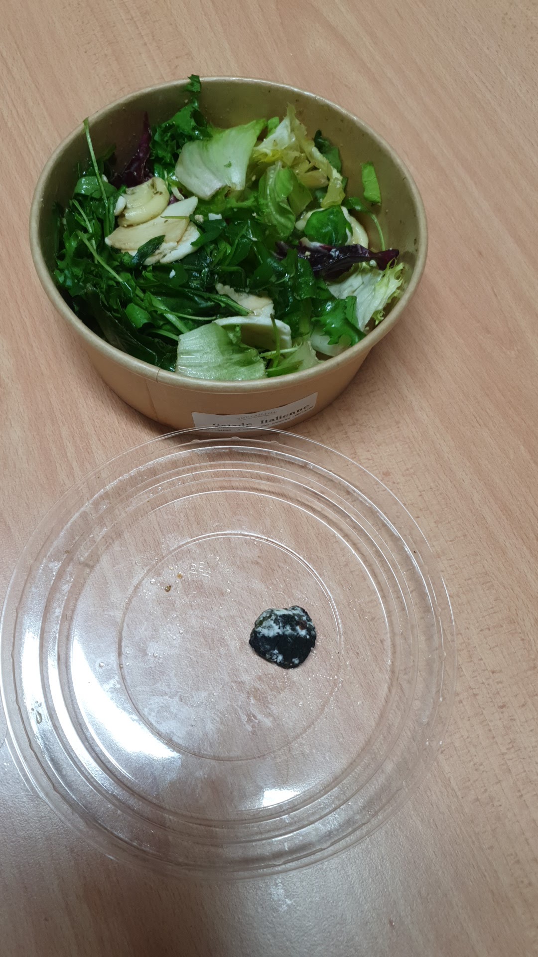 Je suis habituée à cette chaîne en Alsace pour ça que je m'y suis rendue les yeux fermés. Mais quelle surprise en ouvrant mon couvercle et en découvrant un aliment, sans doute tomate séchée, pourri et noire de moisissure. Je ne comprends pas comment une telle chose pour arriver avec avec toutes nos normes.