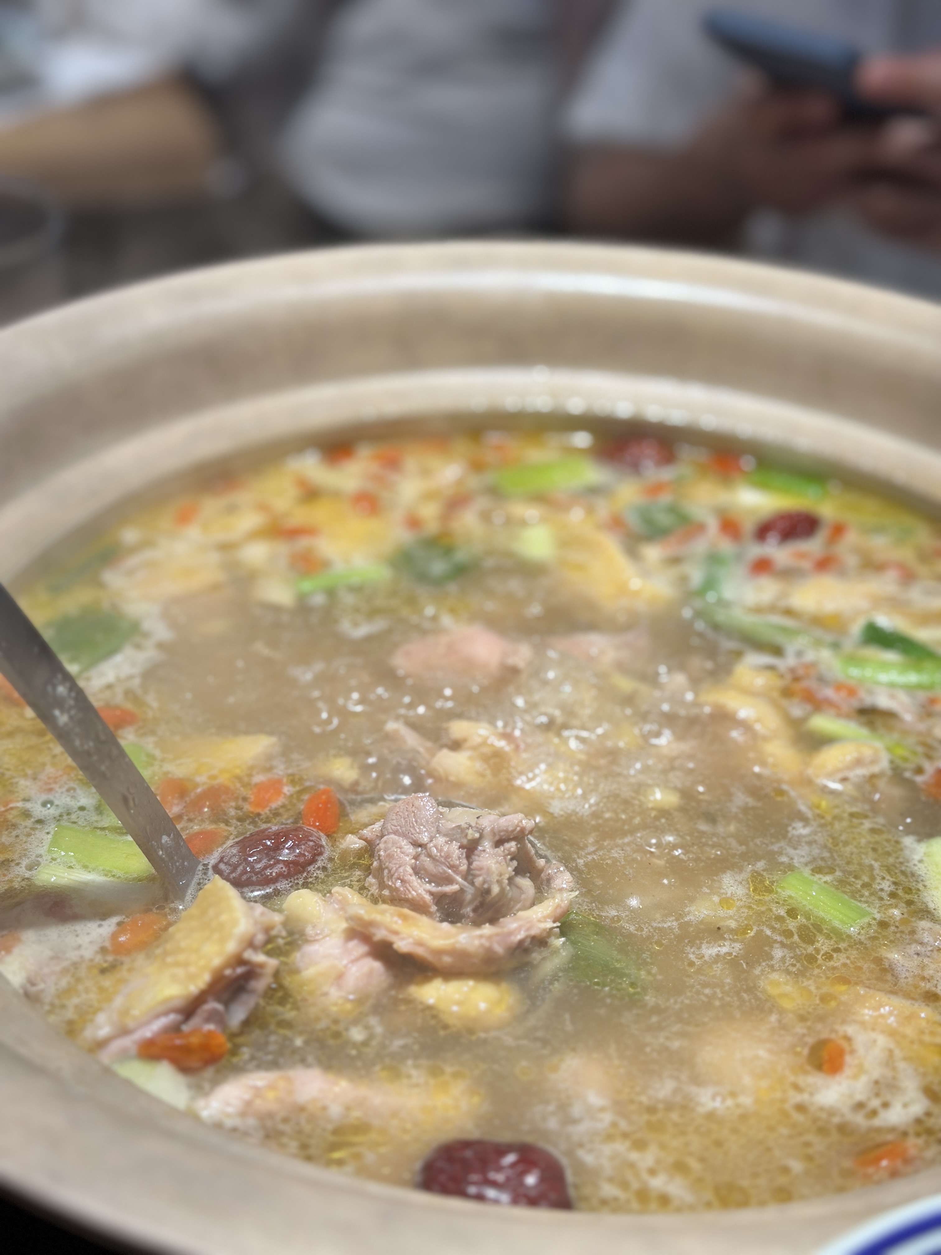 Le goût général est correct, légèrement épicé et le poulet a un goût différent de celui de nombreux restaurants à l'extérieur. Après avoir demandé, j'ai découvert que le poulet utilisé est du poulet fermier français et que la peau du poulet est plus délicieuse que le poulet ! Mais la portion était si grande que deux personnes ne pouvaient vraiment pas la finir ! La prochaine fois, j'essaierai le pot de poulet aux gros intestins.