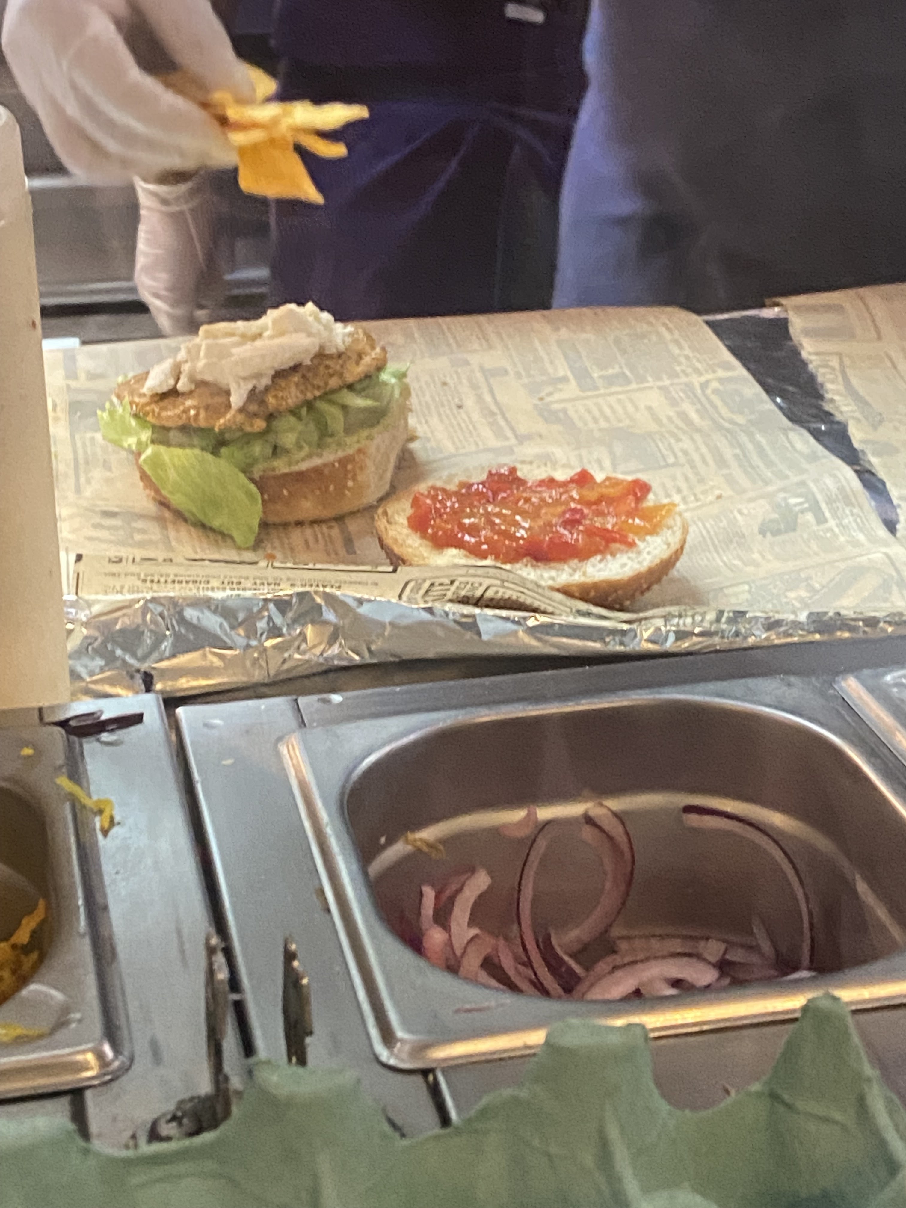 Les petits pains étaient un peu démodés ! Le morceau de poulet était un peu petit. le tout n'était pas si bon. Je ne sais pas si j'ai eu de la malchance cette nuit-là, mais je n'y retournerais pas.