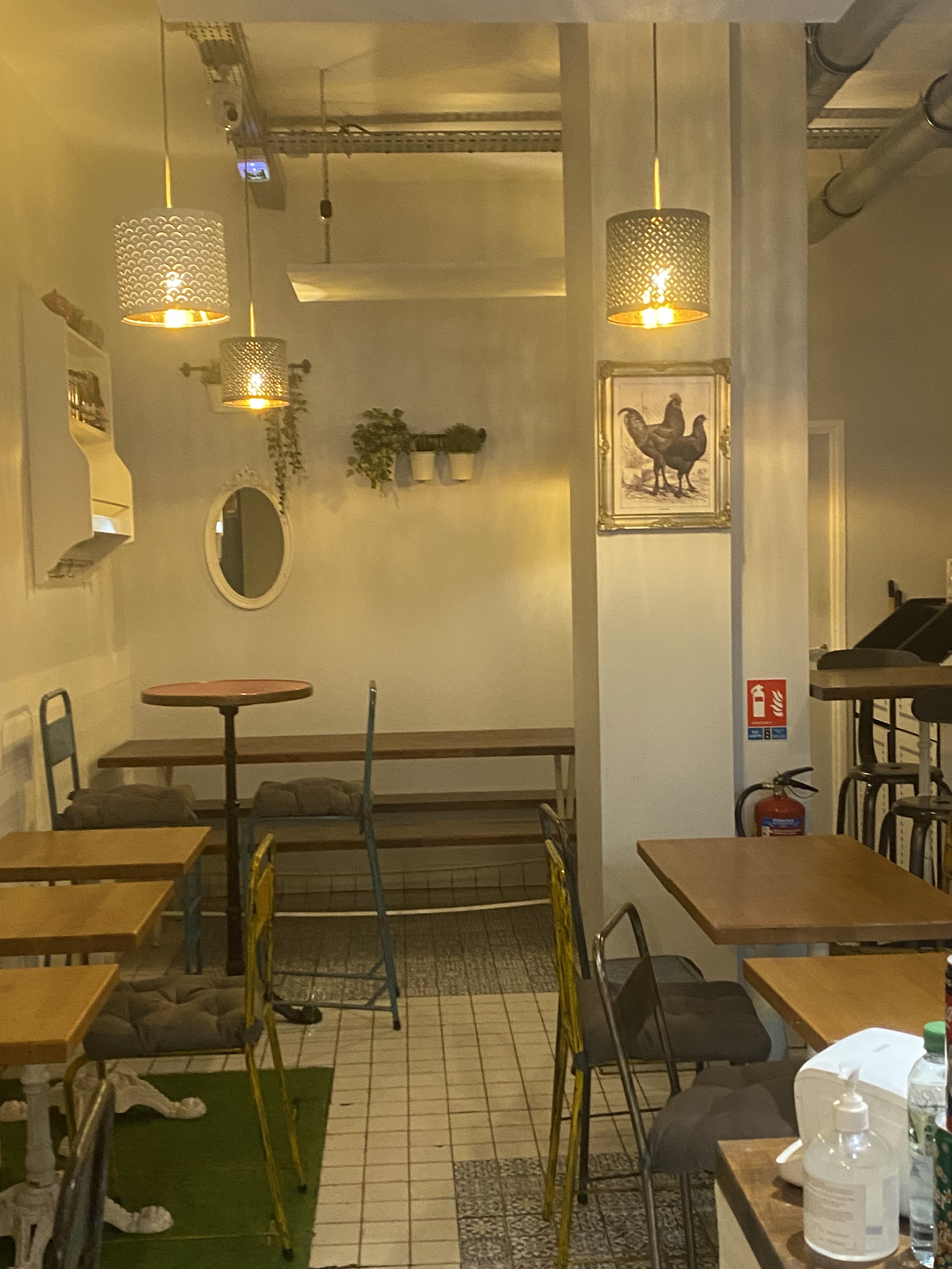 Petit restaurant très sympa avec une salle intérieure étroite mais chaleureuse. Le poulet est bien mis en valeur autant en burger que brut. A tester !