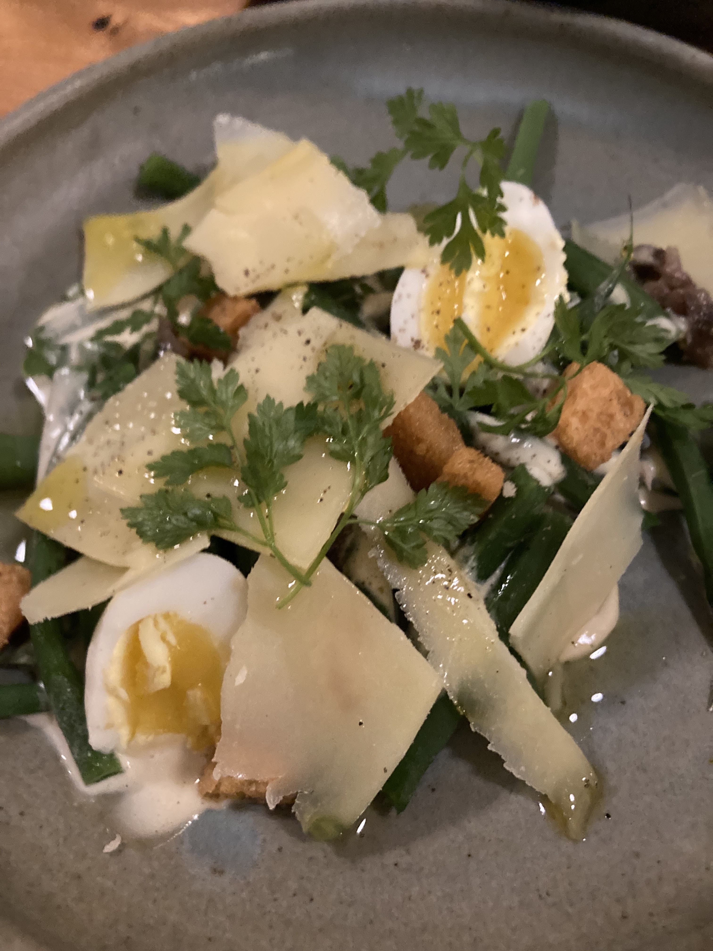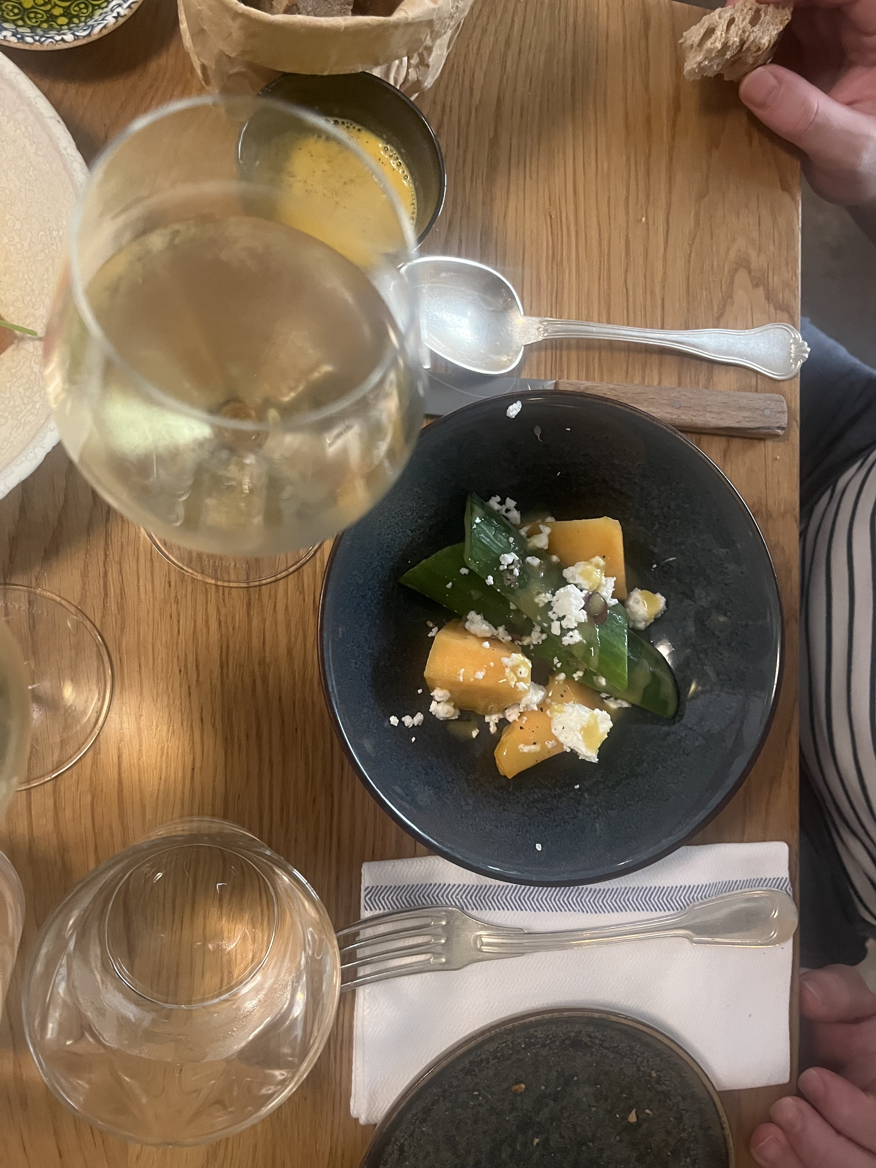 Repas très bon, du début à la fin ! Le concept des entrées imposées à partager est une excellente idée ! Aperol Spritz maitrisé Malgré l’accueil et le sourire des serveurs, le service n’est malheureusement pas à la hauteur de ce qui est dans l’assiette, vraiment lent… d’où l’étoile en moins