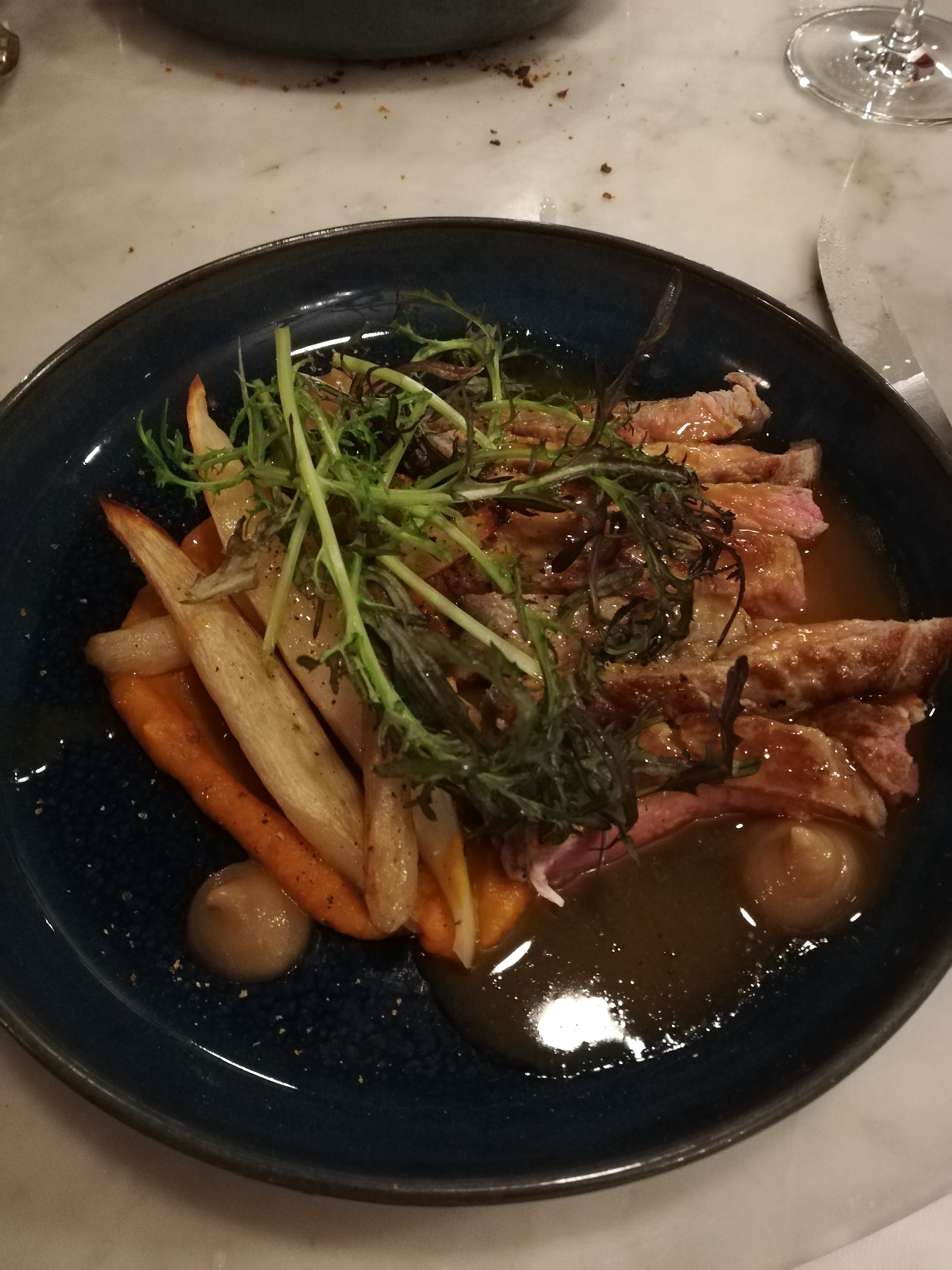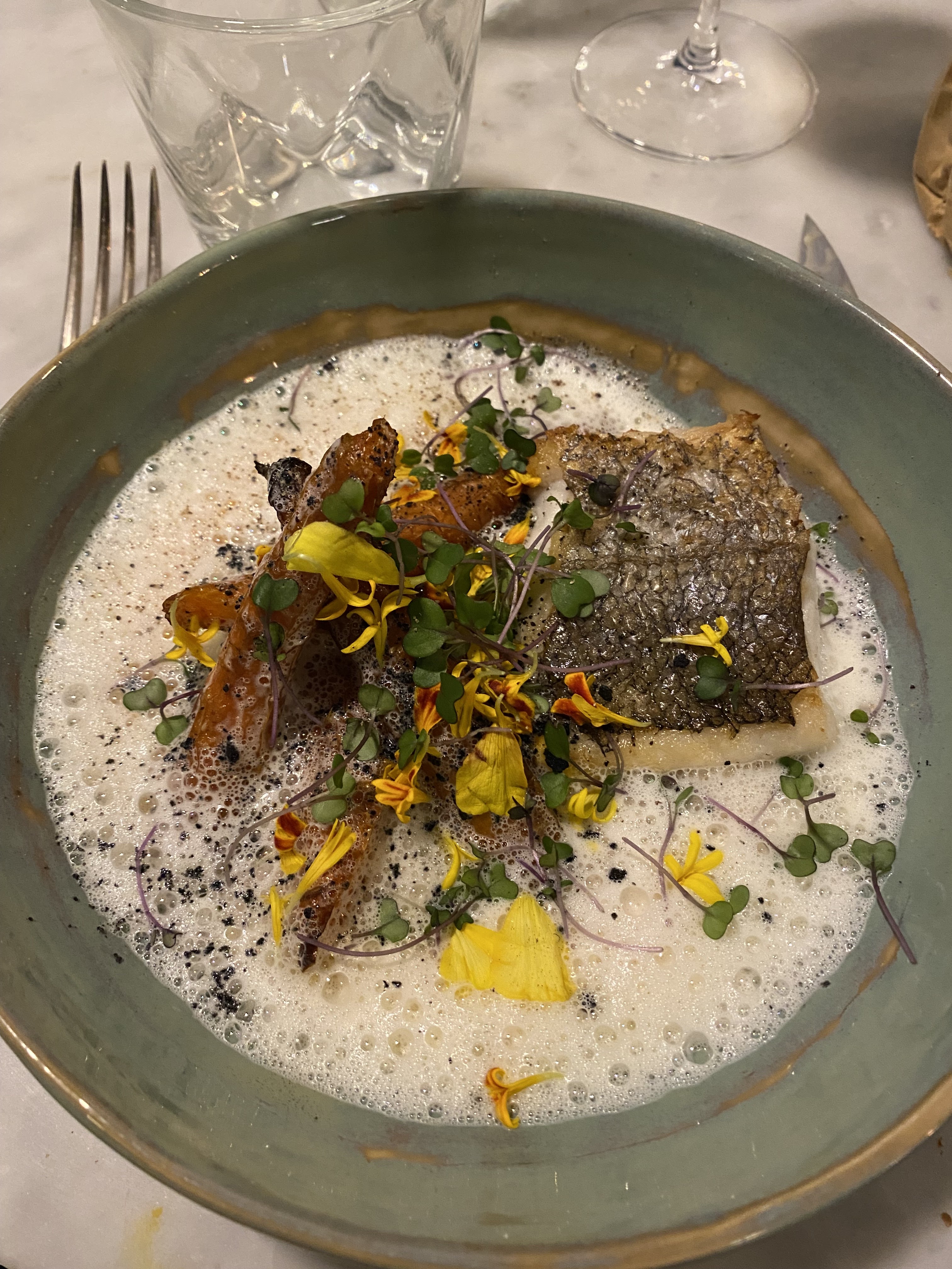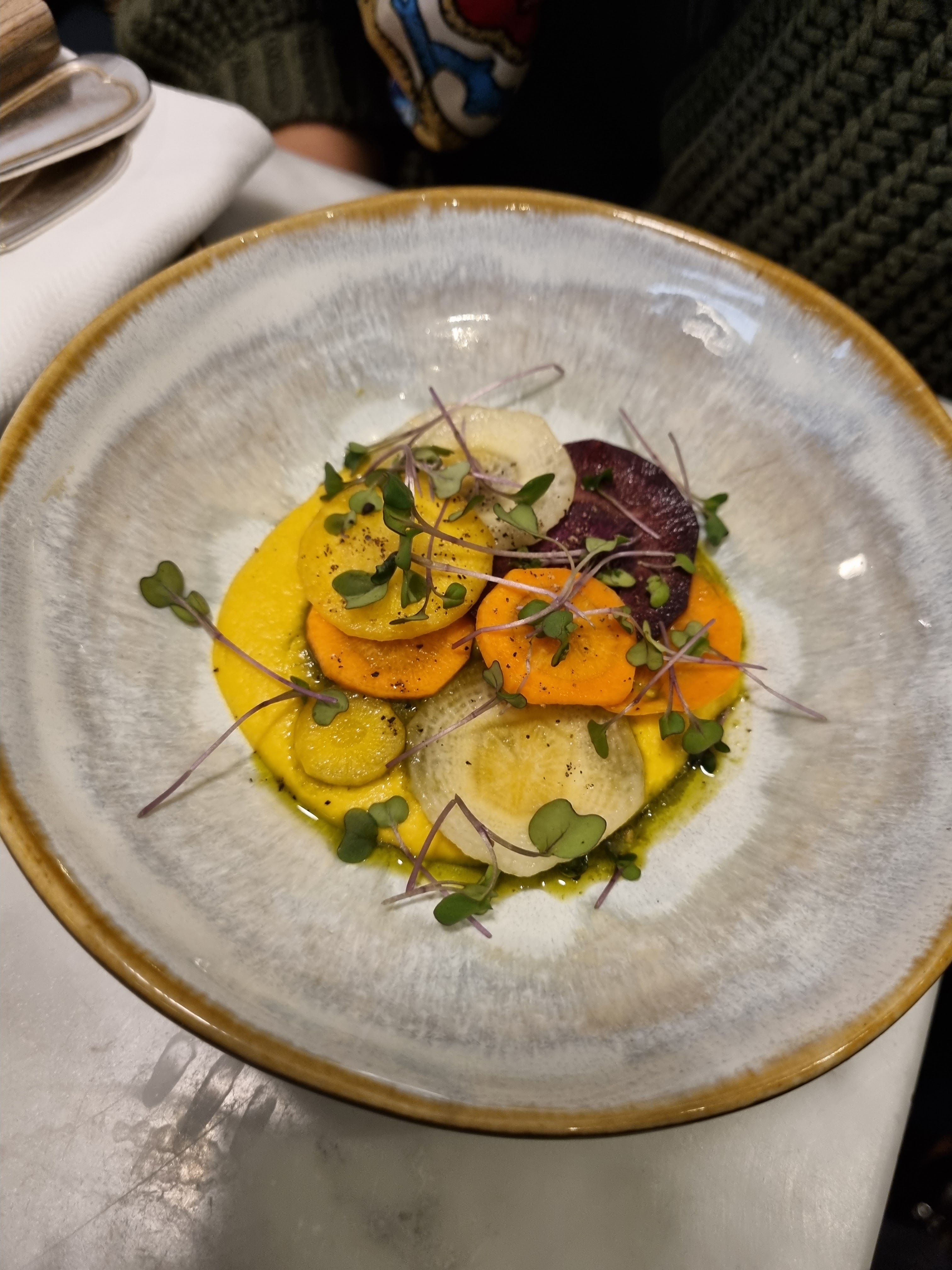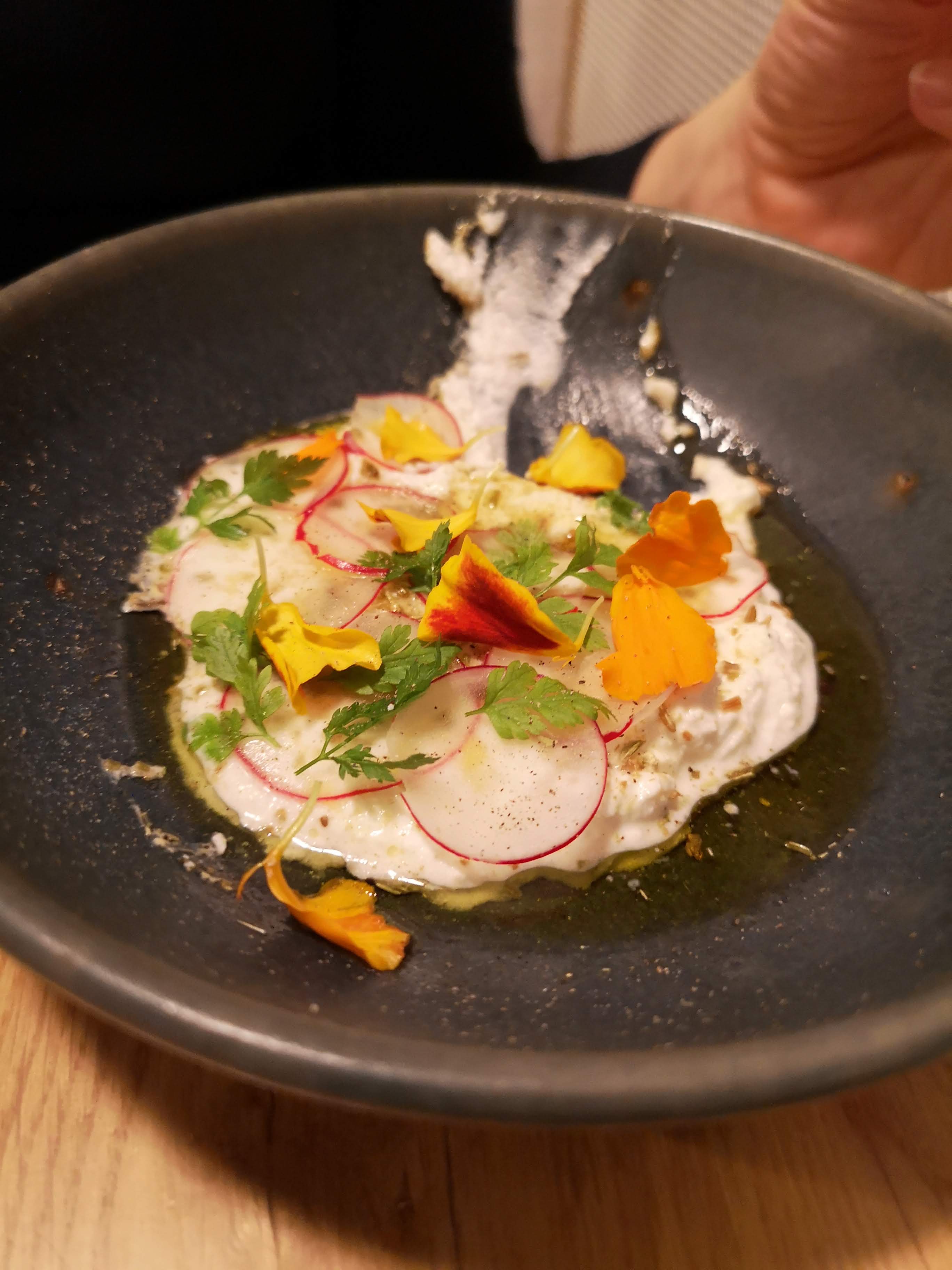 La nourriture est fantastique, des ingrédients frais servis dans un style simple mais raffiné. Tout était cuit à la perfection. L’utilisation de légumes-racines anciens, par exemple, était l’un de ces jolis détails. Le service était très sympathique et rapide. Je reviendrai certainement. Merci à toute l'équipe pour cette merveilleuse soirée.