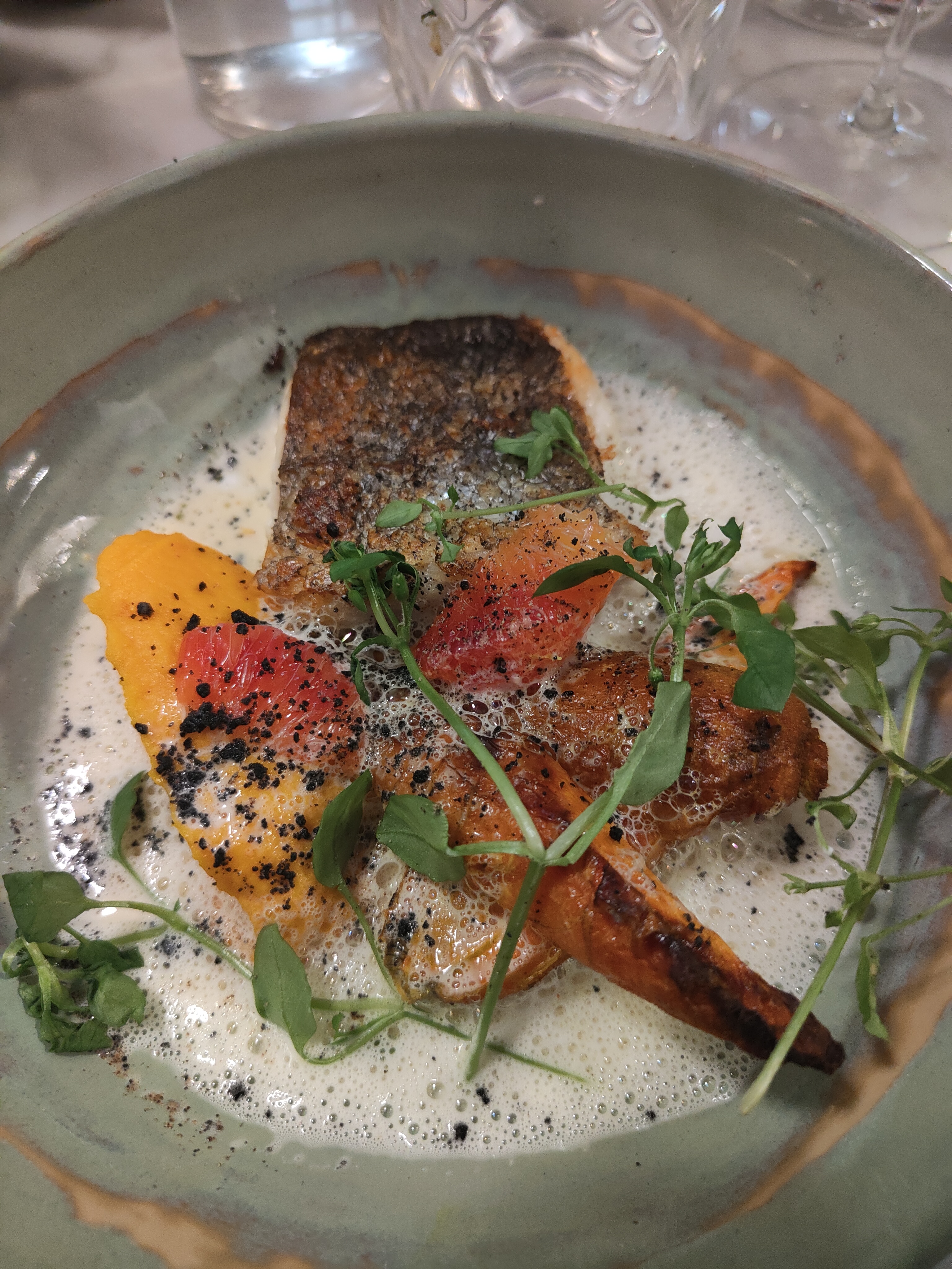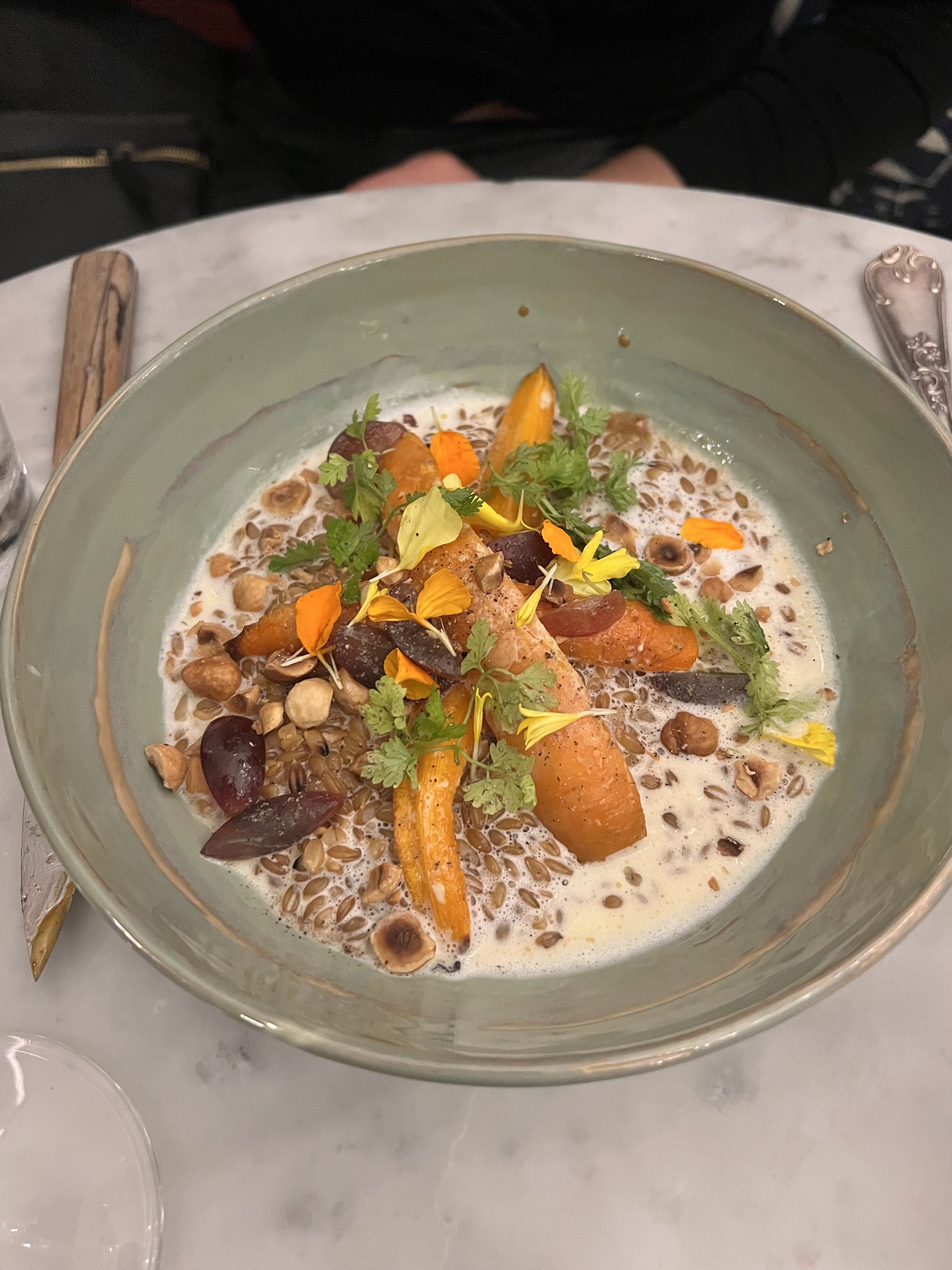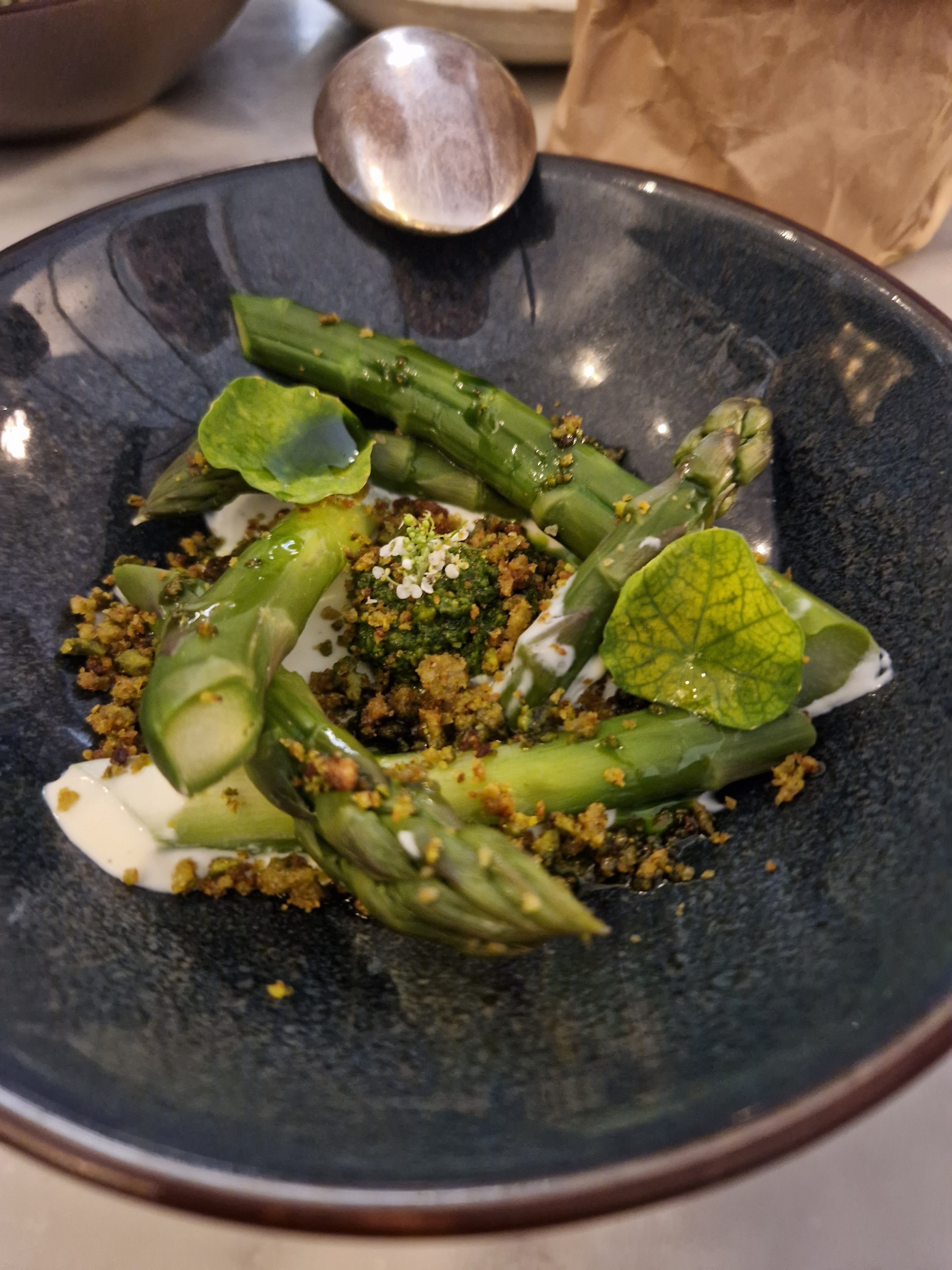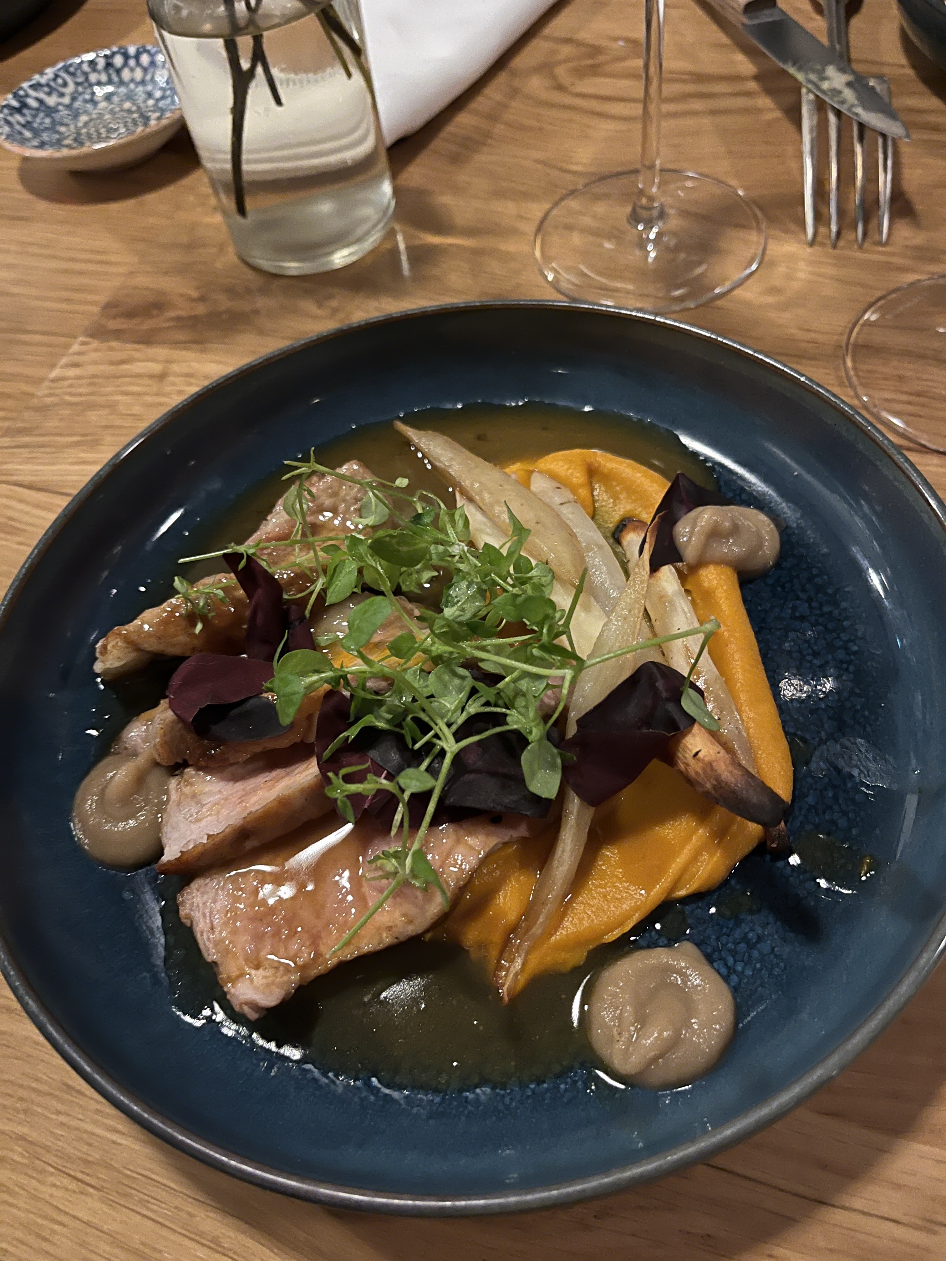 La nourriture est fantastique, des ingrédients frais servis dans un style simple mais raffiné. Tout était cuit à la perfection. L’utilisation de légumes-racines anciens, par exemple, était l’un de ces jolis détails. Le service était très sympathique et rapide. Je reviendrai certainement. Merci à toute l'équipe pour cette merveilleuse soirée.