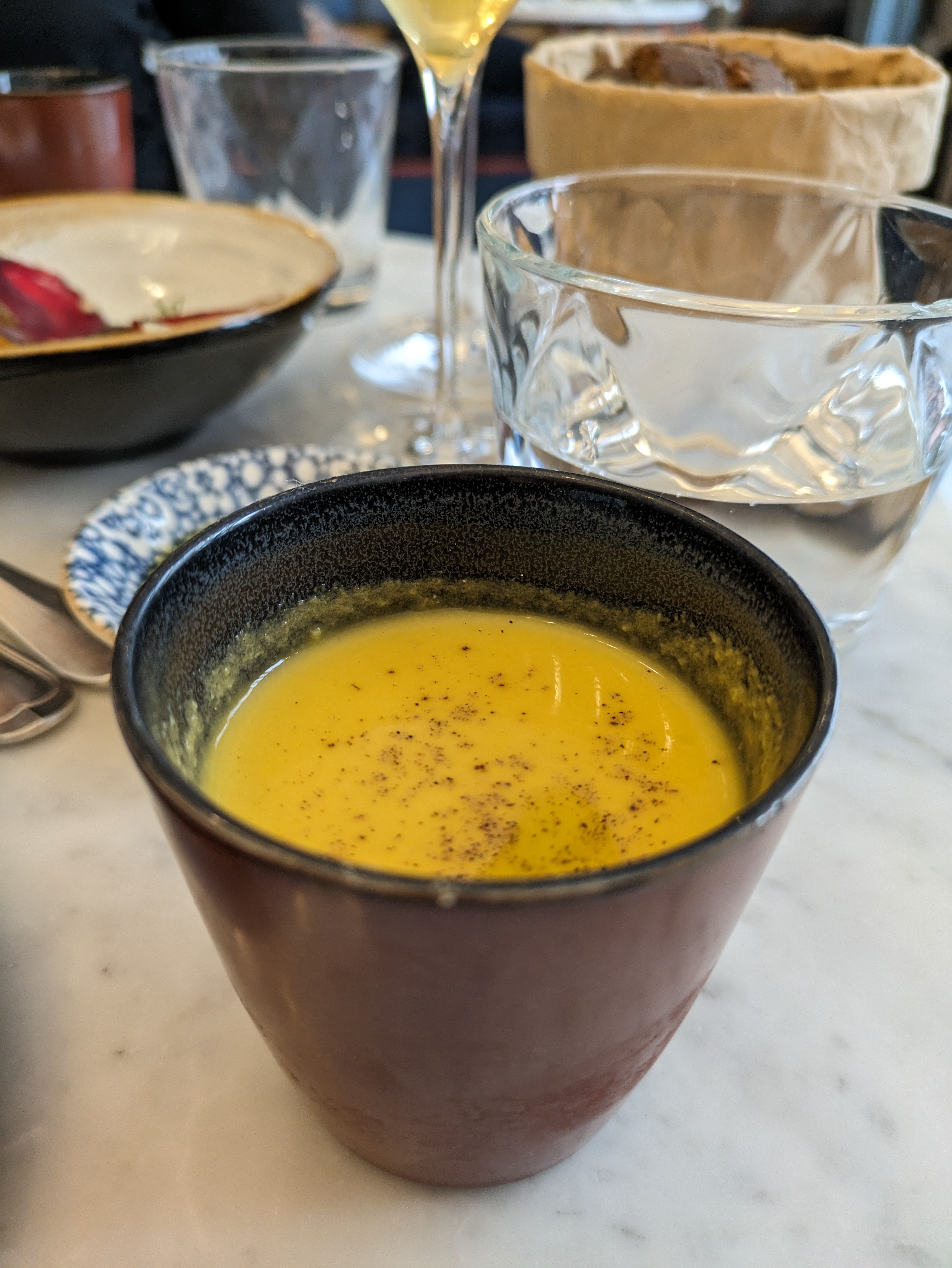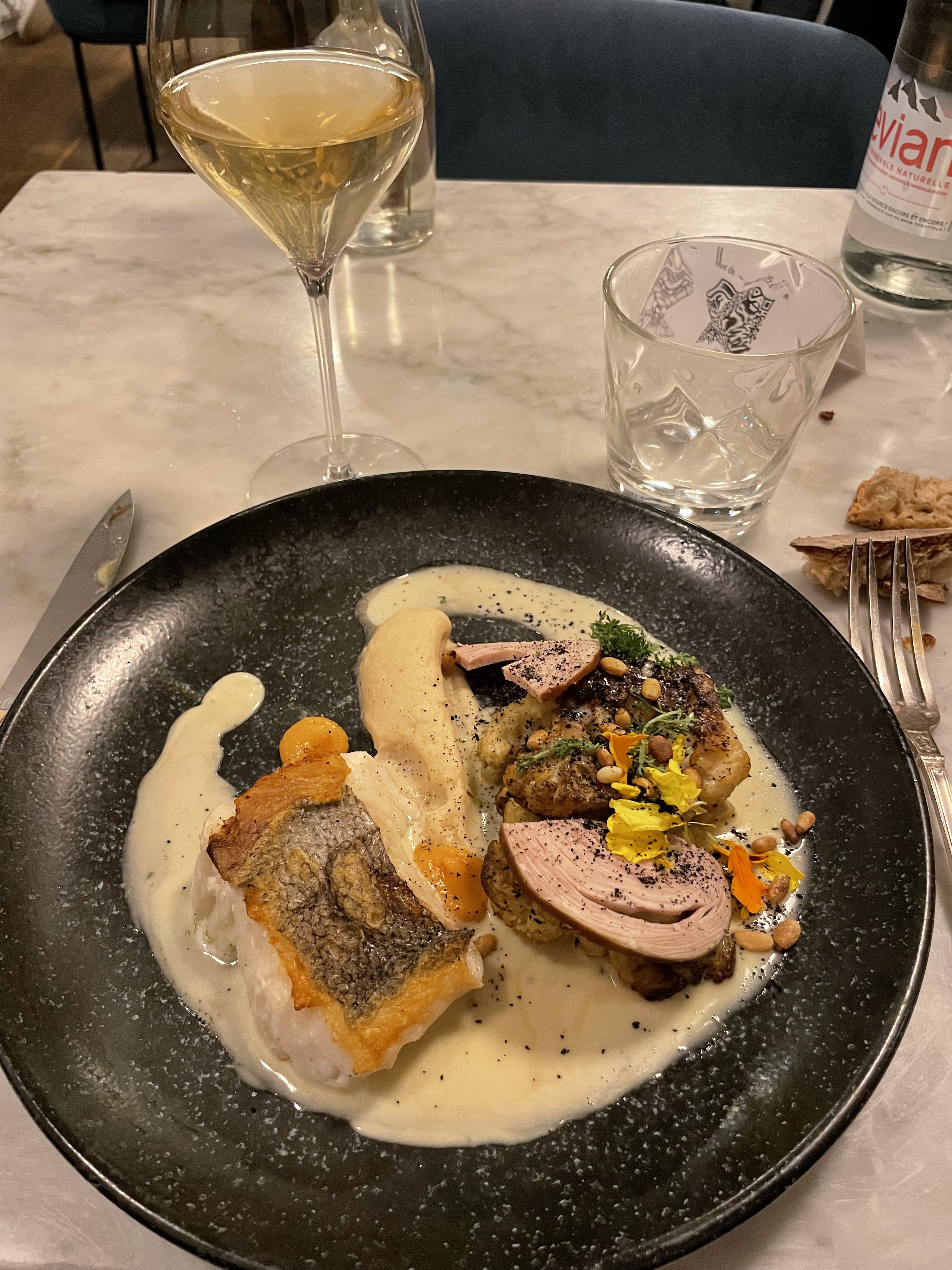 Bonne expérience. Manque de jeux de textures (émulsion de foie gras, purée de betterave et soupe pour l’entrée et encore de la purée dans le plat : ça mérite un peu de croquant !!) 14€ le verre de vin, prix non affiché sur la carte, on aurait aimé être prévenus :)