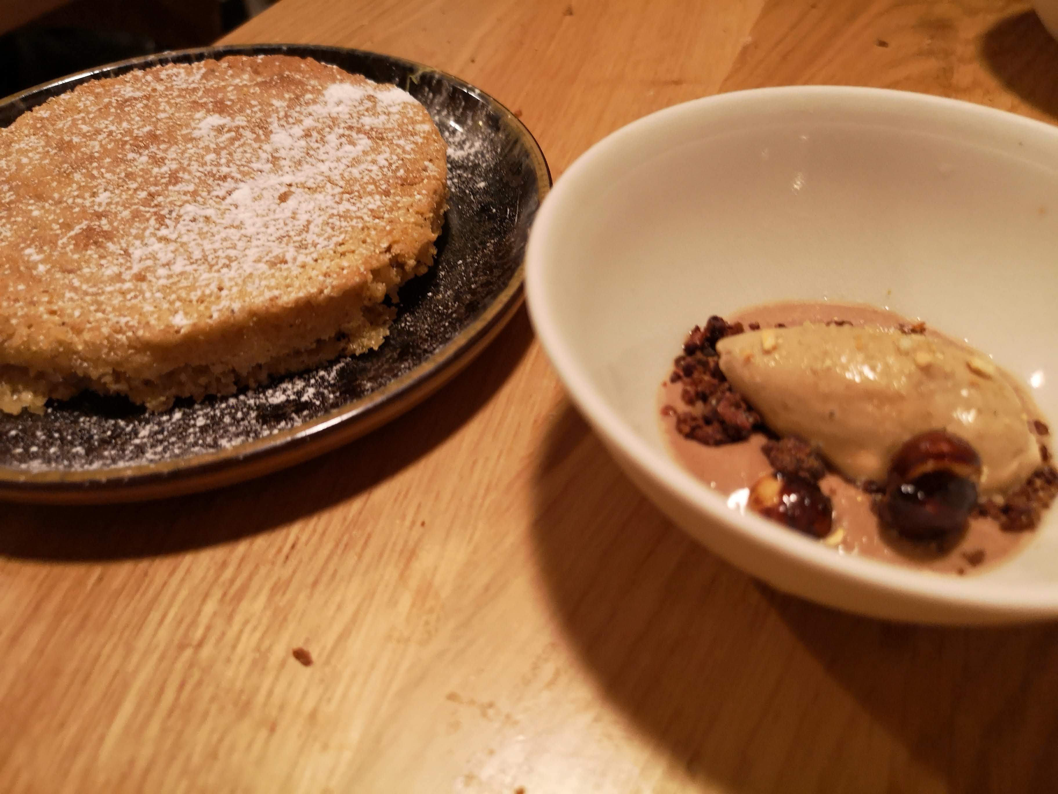 Menu à prix fixe avec des entrées surprises, une soupe, trois plats au choix et un dessert et un gâteau à tomber par terre pour lequel nous avons préparé nos valises pour le lendemain !