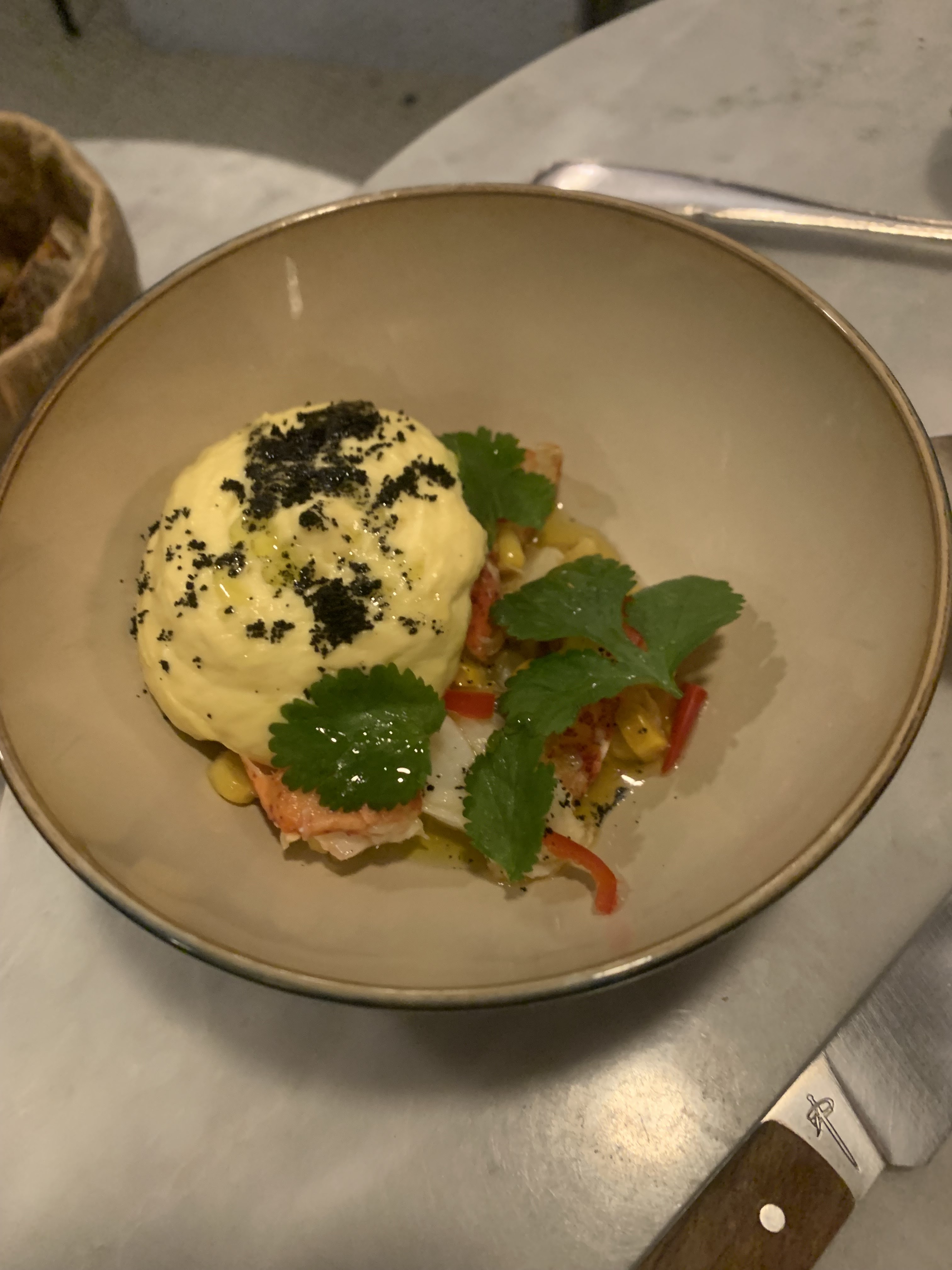 Un décor réussi et confortable, des entrées à partager délicatement élaborées, un pur régal. Petit souci de synchro dans le service de celles-ci et des cocktails. Les plats en revanche sont un peu ternes comparativement aux entrées et desserts. Mais la team compense cette petite faiblesse par une attention aussi discrète qu'efficace. Et pour moi une délicate initiative au dessert.