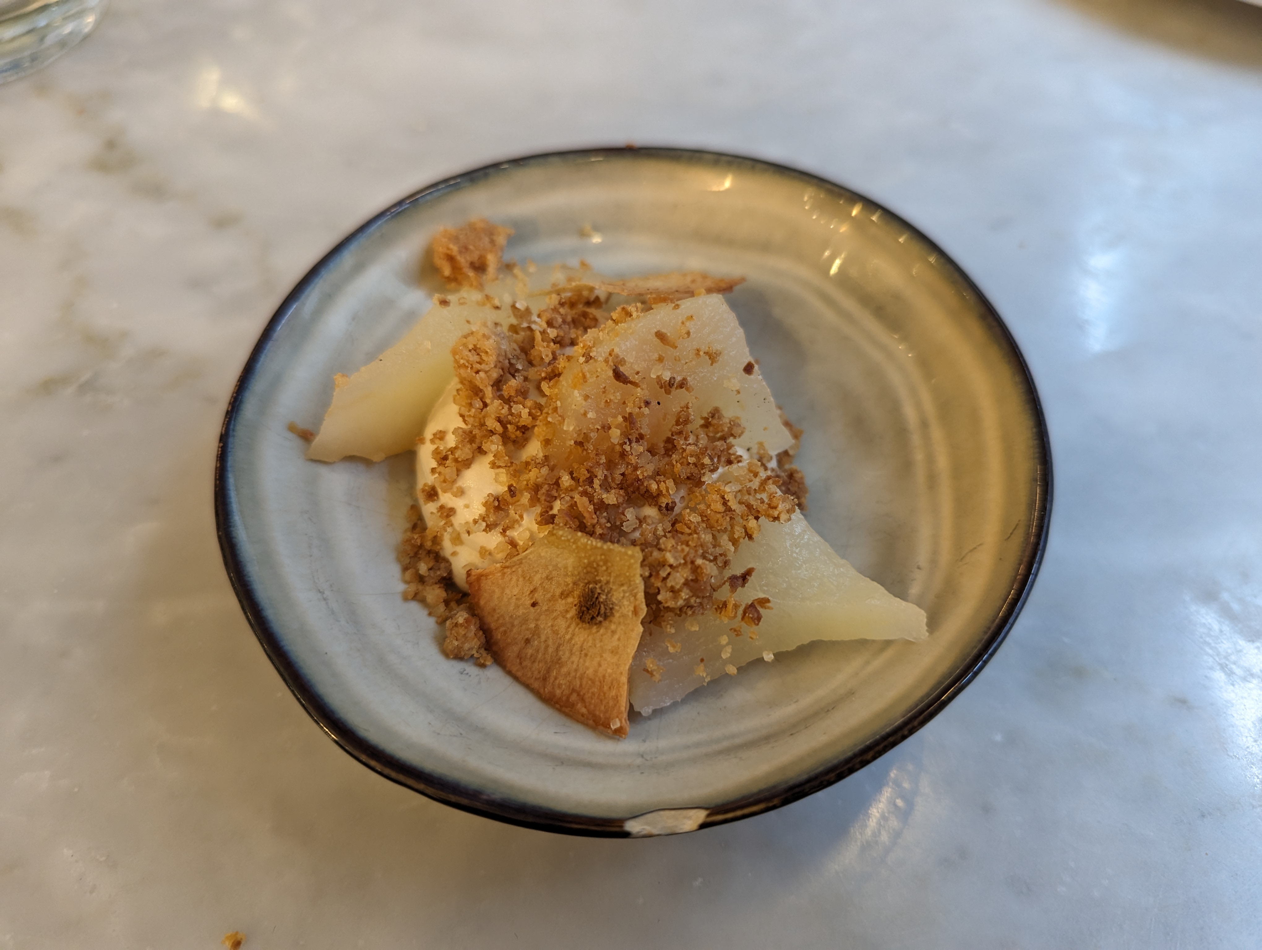 Le brunch du nouvel an était prévu. Le service et l'ambiance étaient bons mais malheureusement, l'ensemble ne reflétait pas ce que le restaurant fait de mieux. D'après les critiques, le restaurant est réputé pour ses sauces et ses saveurs, mais l'ensemble n'y parvient qu'à peine. L'œuf brouillé était grumeleux et la truffe n'avait pas l'arôme qu'elle aurait dû avoir. L'ensemble de l'expérience n'a apporté un facteur gastronomique époustouflant dans aucun des plats. Tout était bien trop standard, à tel point que n'importe quel bistro décent du côté de la rue parisienne peut vous le livrer si vous demandez le bon plat. La meilleure nourriture était en fait les accompagnements de pommes de terre qui accompagnaient la pintade, mais la viande elle-même n'avait pas le goût de gibier que je m'attendais à avoir. Peut-être que le chef aurait pu envisager de le fumer étant donné qu'il s'agit d'une toile vierge ? A 65 € par personne, le menu ne fait pas vraiment ressortir le meilleur de leurs compétences. J'espère que la prochaine visite sera plus intéressante.