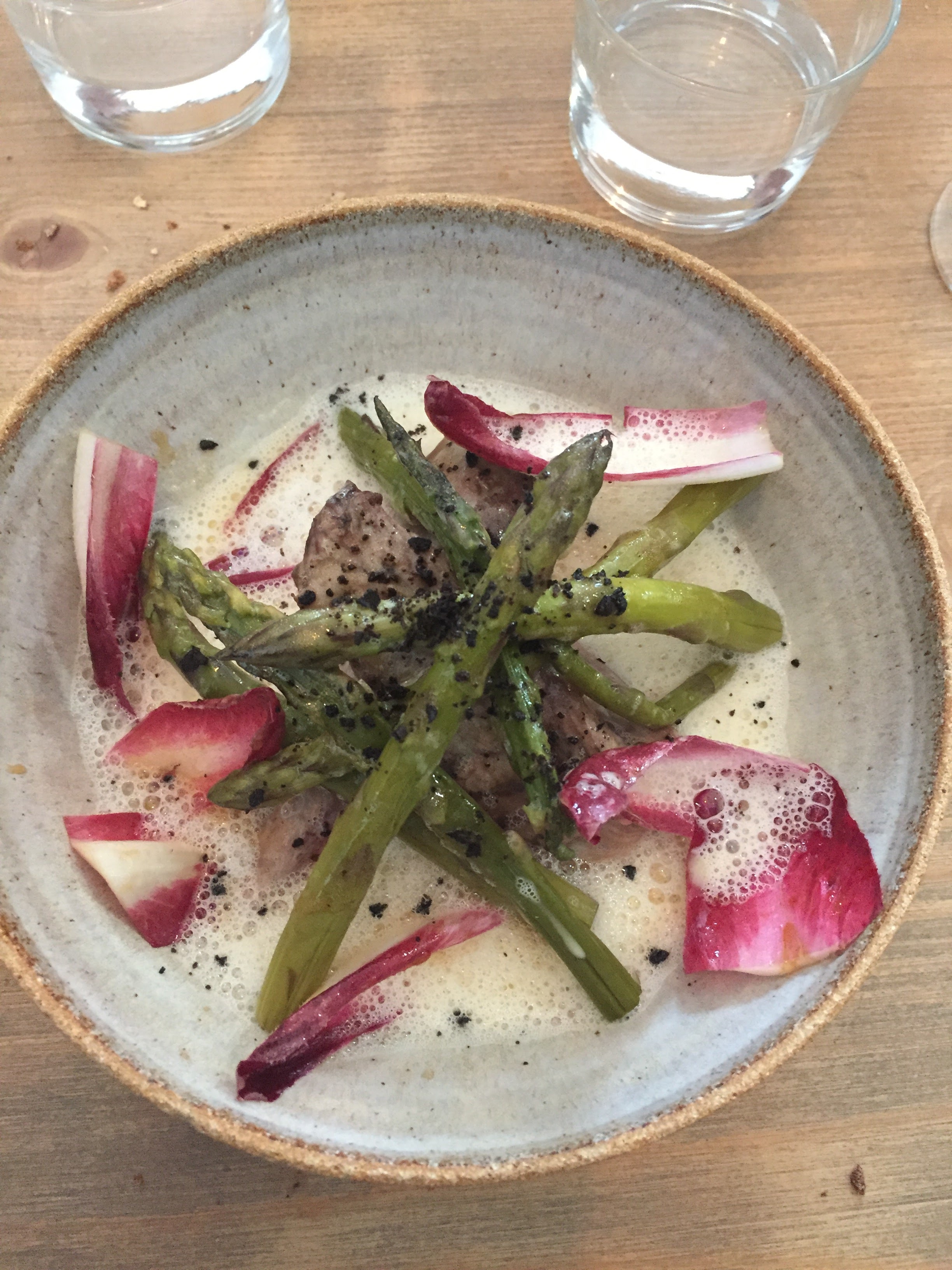 Véritable découverte pour moi et mon mari. Décoration des lieux industriels. Ambiance feutrée. Deux choix possibles pour l'entrée, le plat et le dessert. Plats succulents. Alliance de saveurs maitrisée même si elles peuvent surprendre. Mix d'aliments crus et cuits qui se marient à merveille, cuisson de la viande (veau) parfaite. Le serveur est à nos petits soins mais reste discret.