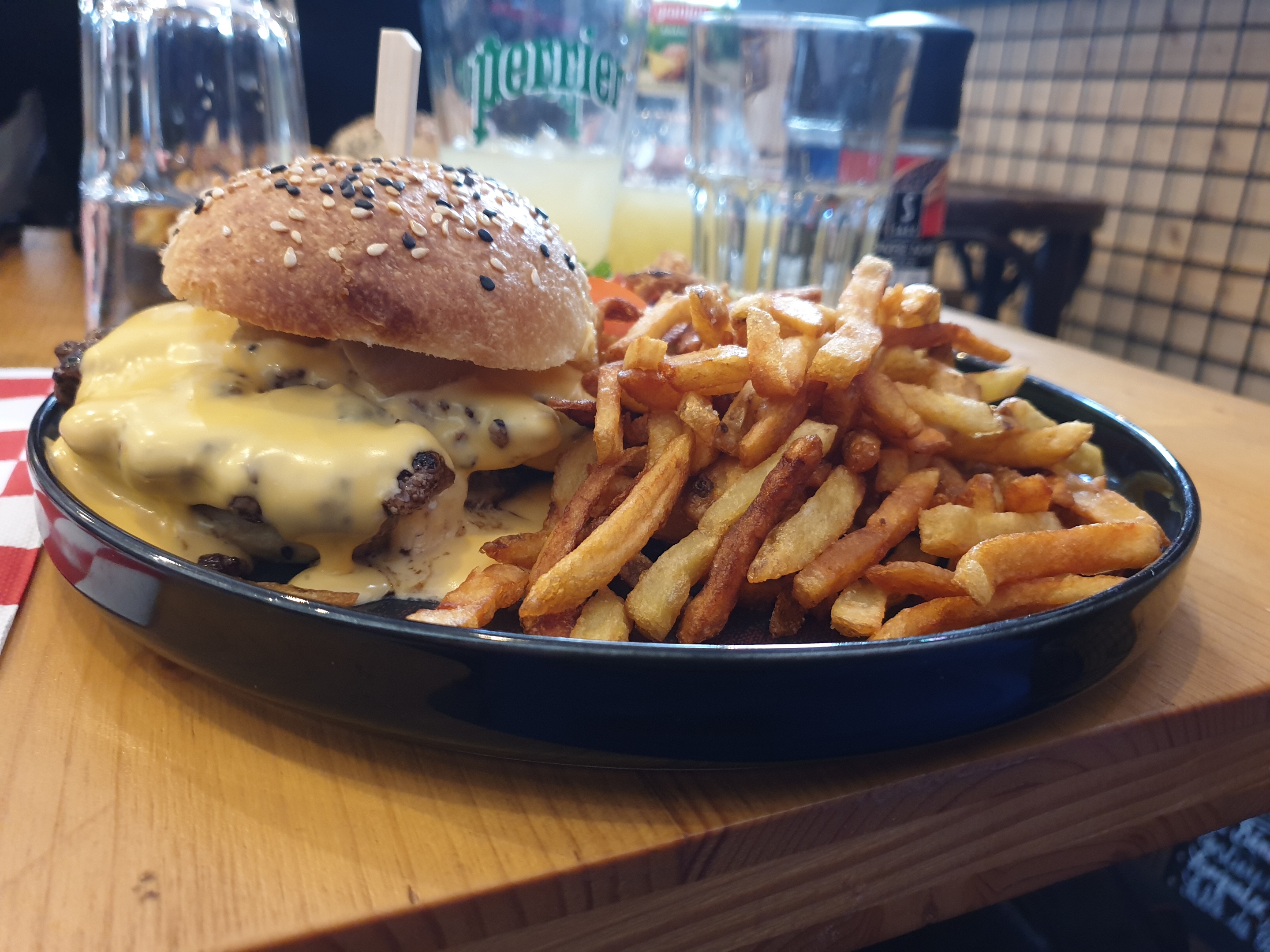 Tres très bon burger,ils plaignent pas les frites,serveuse agréable,merci.