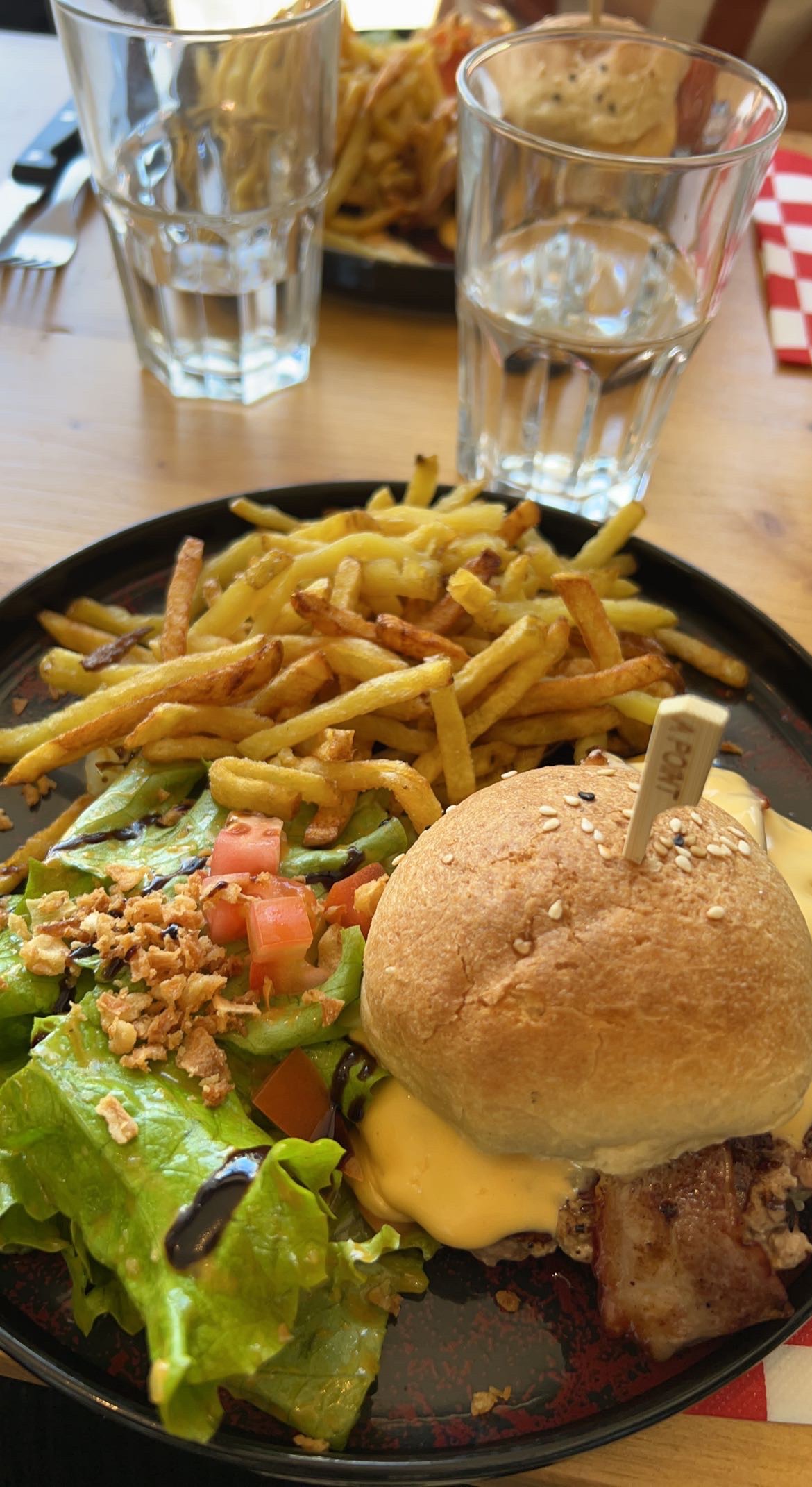 Impeccable ! Le burger était délicieux, surtout la sauce, et la charlotte poire chocolat parfaite. La mayo était très très bonne.