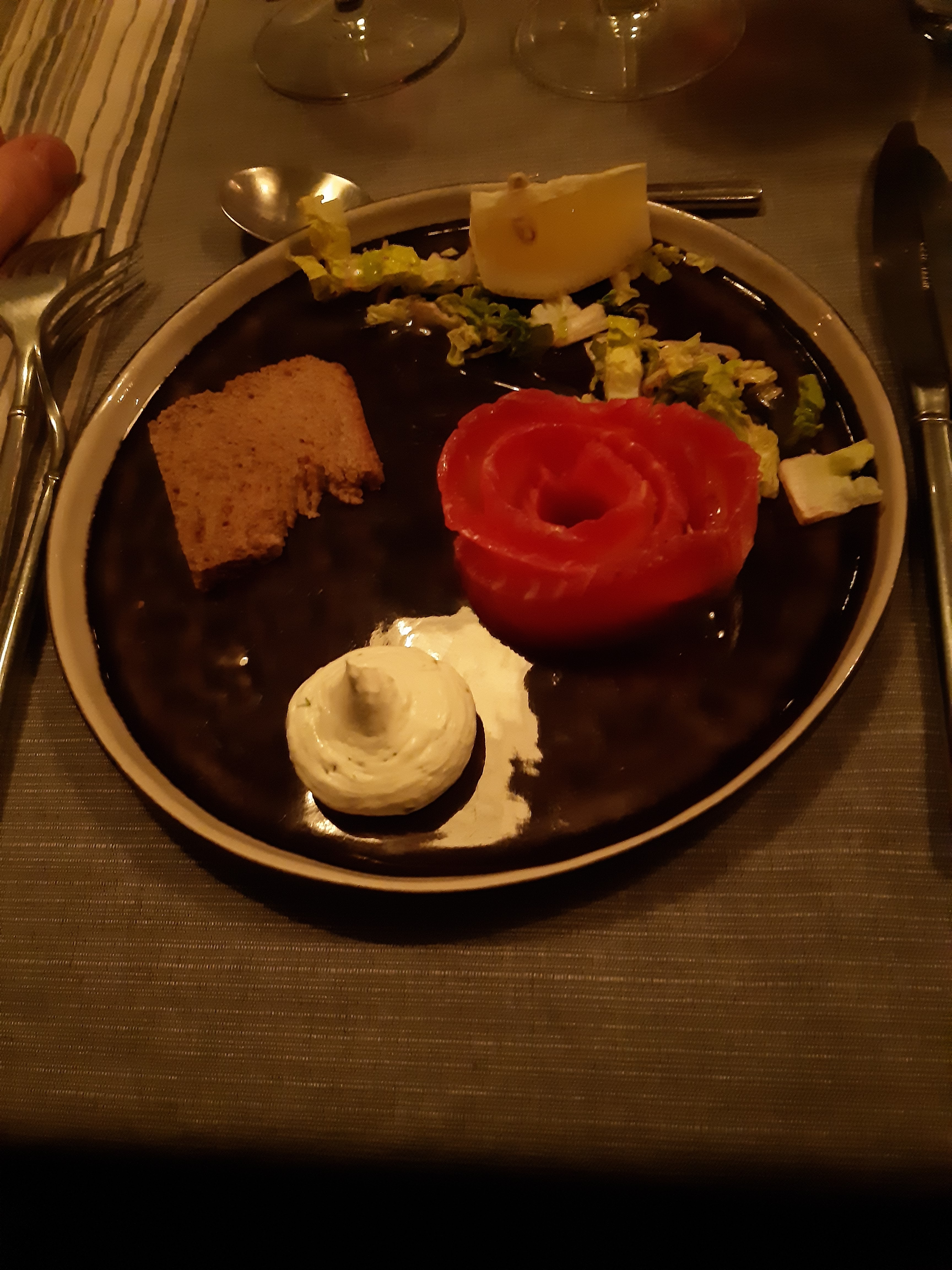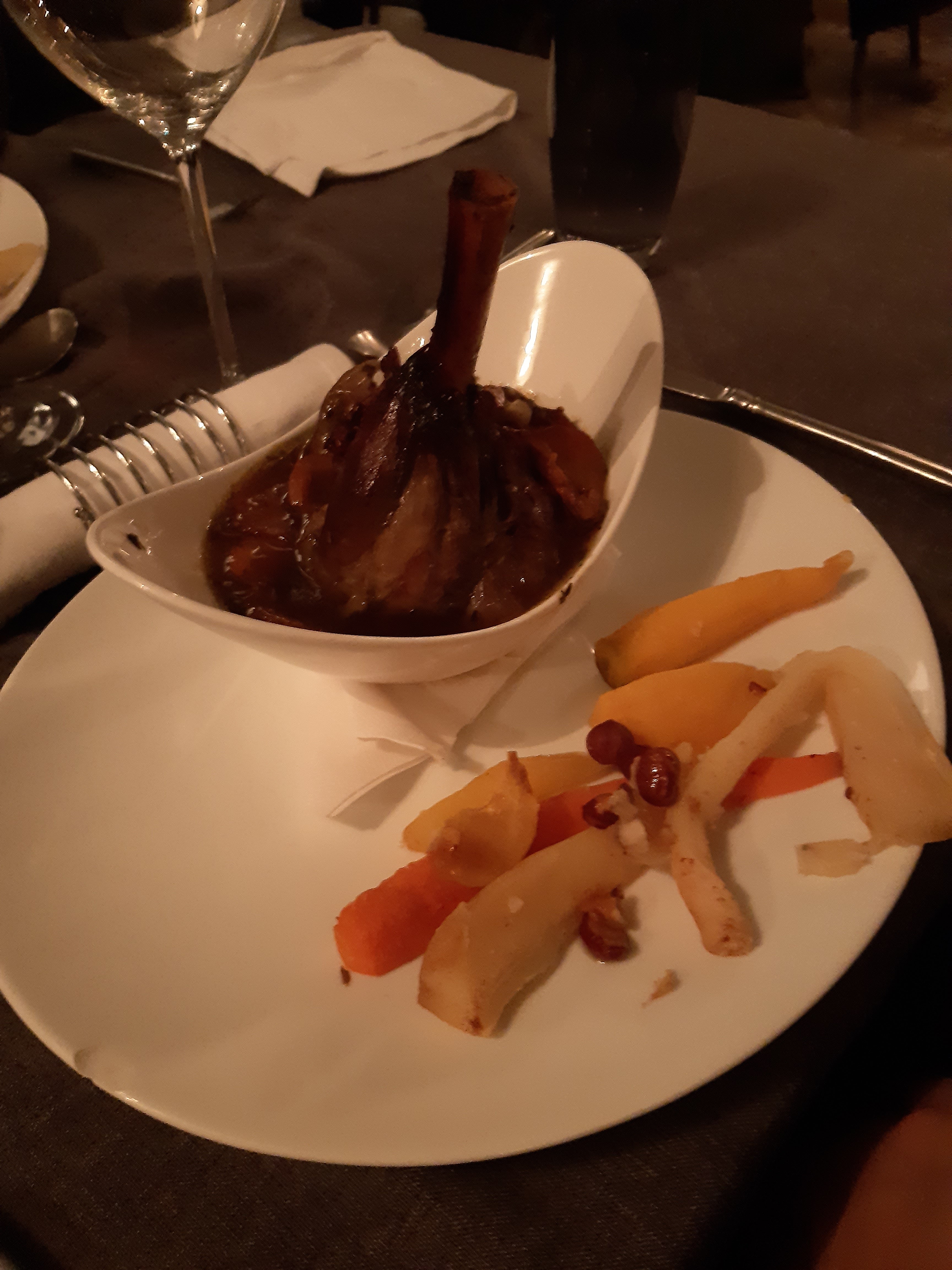 Excellente cuisine, très belles assiettes, un peu dommage le manque de lumiere pour apprécier les plats à leur juste valeur. On reviendra à coup sûr. Service impeccable 🙂