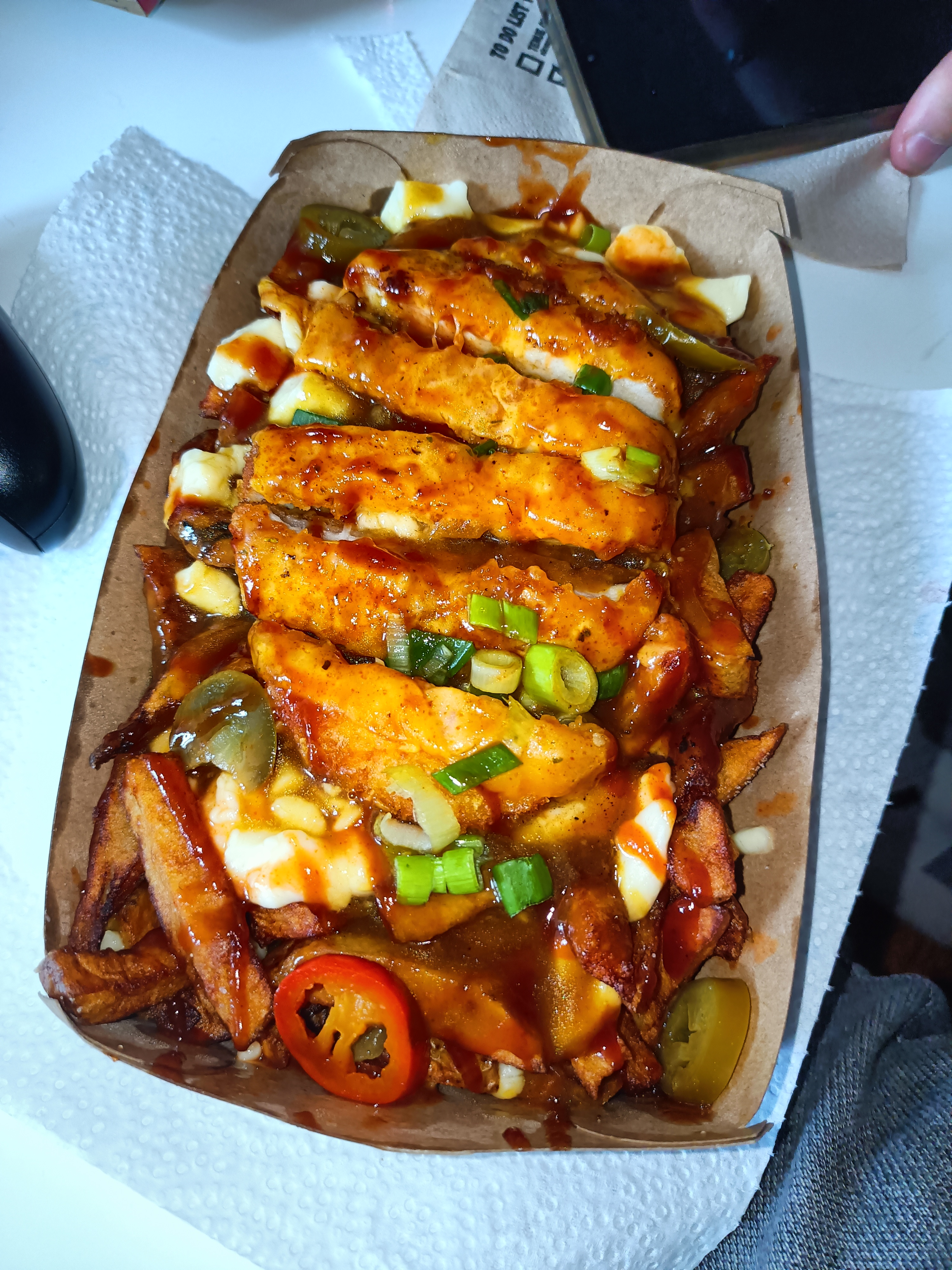 Première poutine pour moi. Je m’attendais à plus de saveurs au niveau de la sauce et du fromage. Rapport qualité prix correct car il y avait quand même plusieurs types de viandes dans mon plat (Raptor) et la taille était largement suffisante pour une personne.