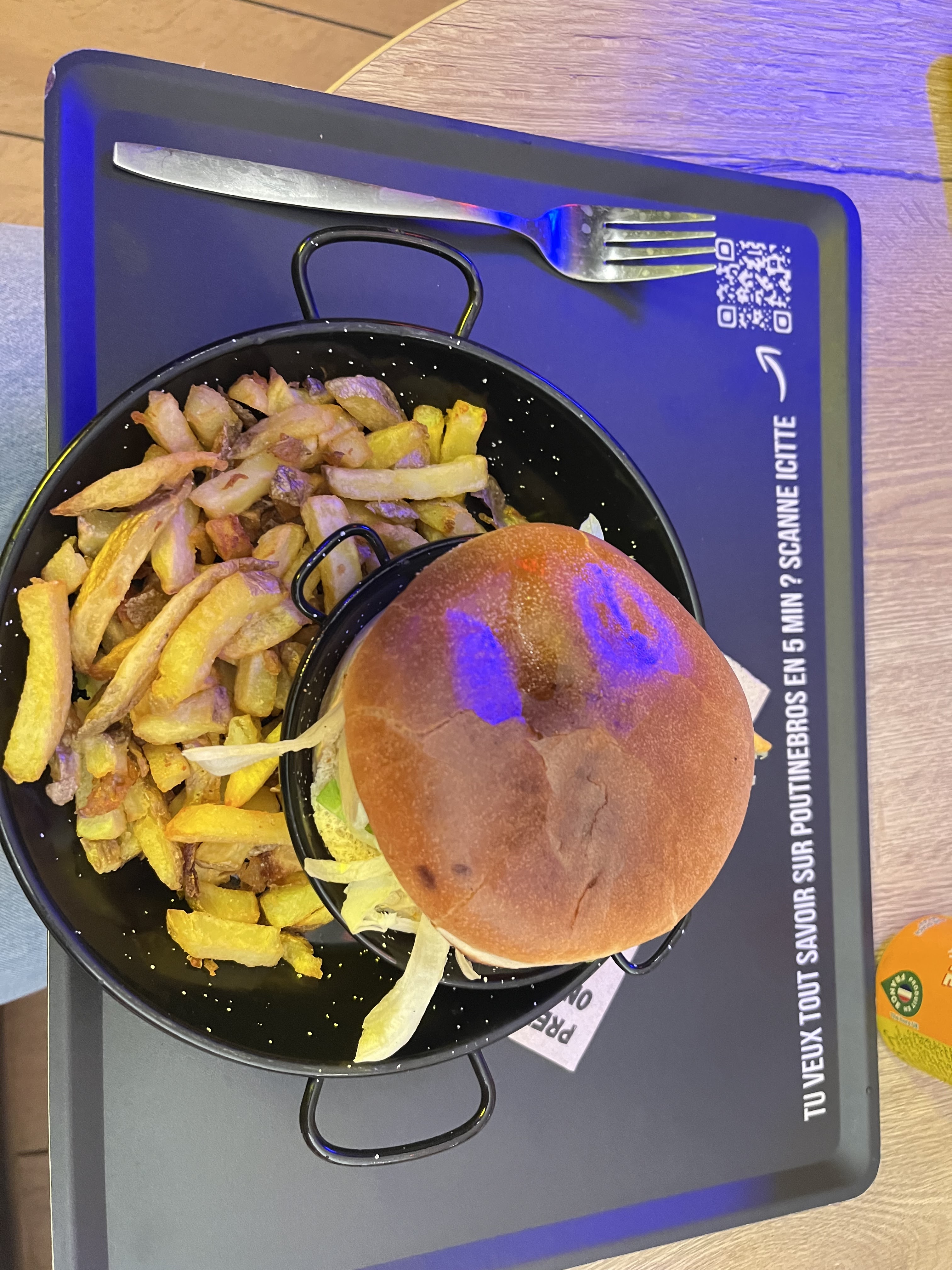 Bonne adresse pour manger une poutine. La déco ne nous transporte pas au Canada.