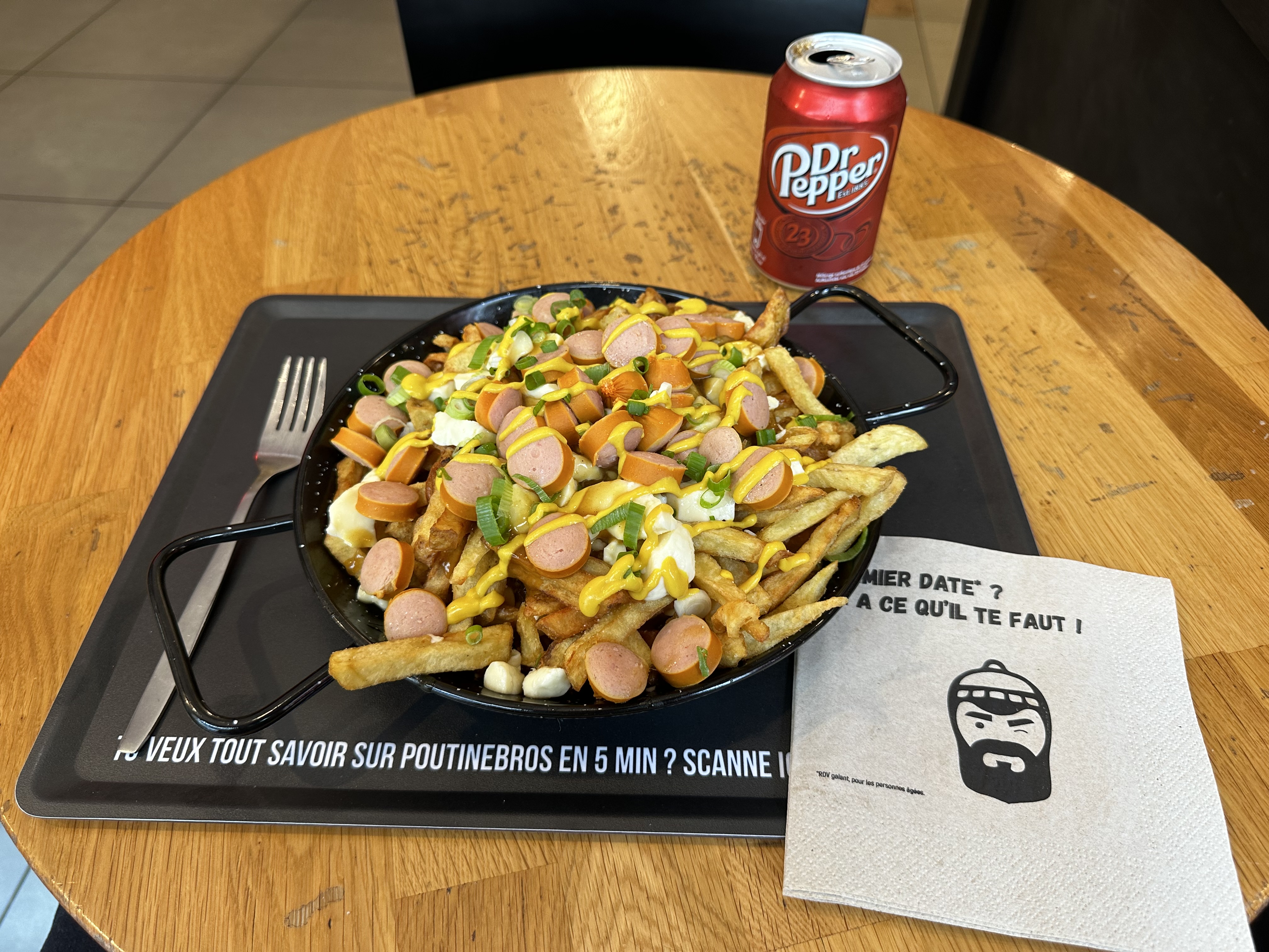 Je suis allée déjeuner chez Poutine Bros, et j'ai complétement redécouvert l'enseigne. Ça faisait des années que je n'y étais pas allée car je n'avais pas plus apprécié que ça et je suis ravie que cette expérience m'ai fait changer d'avis. J'ai commandé la Raptor, une poutine garnie de saucisses, de bacon et de viande hachée, avec un supplément de fromage en grain. Malgré ma demande de ne pas mettre de sauce brune, elle a été ajoutée, mais finalement, cela a ajouté une touche de saveur que j'ai appréciée. Ça a fini par me réconcilier avec la sauce brune que je trouvais avant trop forte et vraiment pas agréable. La, elle était légère et ajoutait de l'onctuosité a la poutine. J'ai été triste de constater que la bolognaise n'existe plus, c'est dommage haha. Le fait de manger dans de vraies assiettes a certainement amélioré l'expérience, par rapport aux barquettes en carton qui font très fast food, j'ai eu l'impression de réellement manger en restaurant. C'était agréable de redécouvrir l'enseigne avec une amie après une longue absence de ma part. Dans l'ensemble, c'était un moment très satisfaisant. Merci de m'avoir fait changer d'avis, j'y retournerai très probablement !