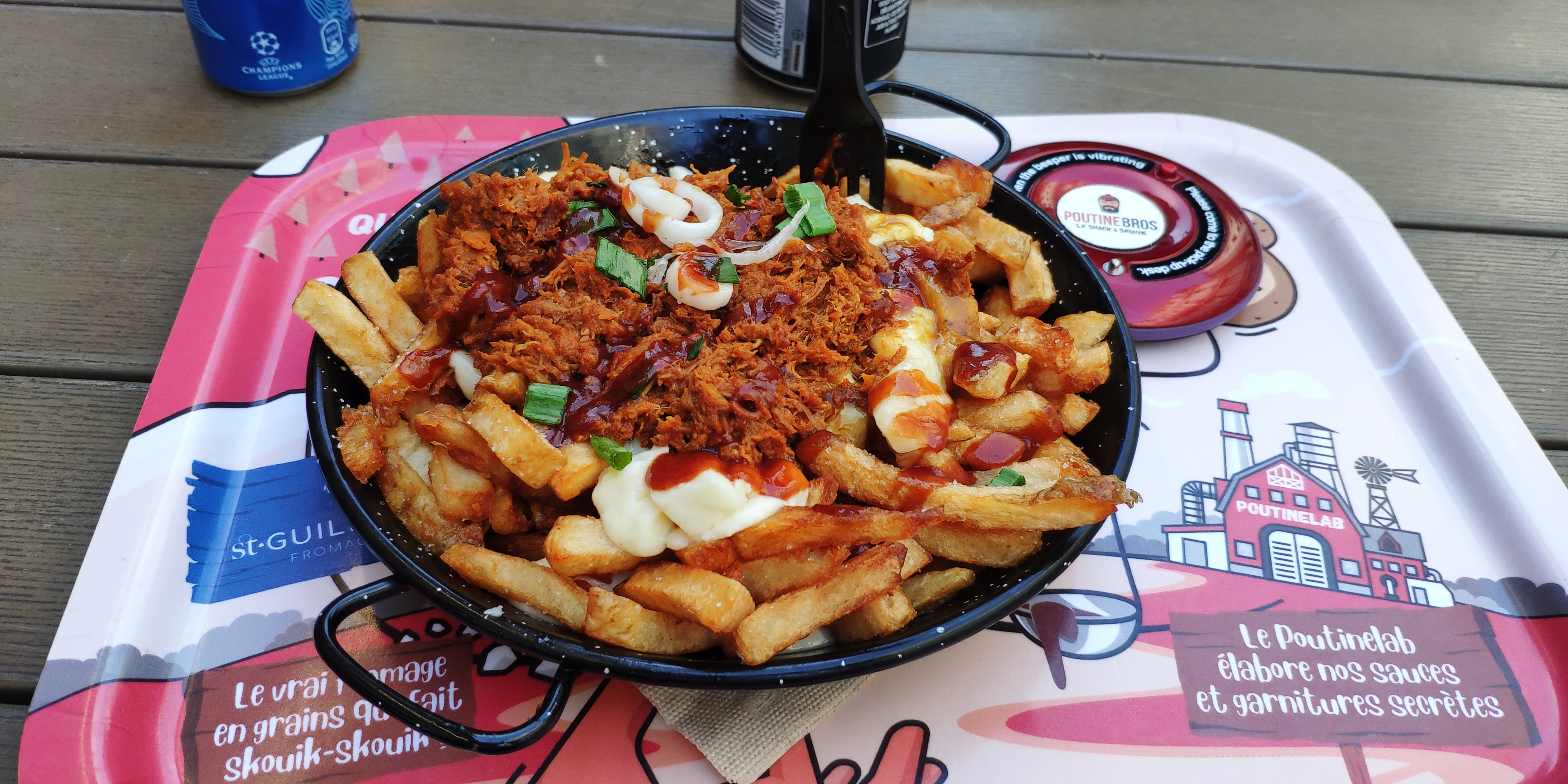 Bon ba j'ai pris ma poutine en click and collect, très rapide rien à dire... Mais je sais pas quelle goût elle a... J'ai clické pour avoir des couverts, y'en a pas du coup la poutine avec les doigts c'est pas ouf... Prendre le train avec je suis dubitatif, la réchauffer au micro ondes pas convaincu... Frustrant. Du coup verdict, ba ça aurait sûrement été meilleur frais plutôt qu'au micro ondes. C'était bon quand même, manque un peu de fromage à mon goût mais le porc effiloché était excellent