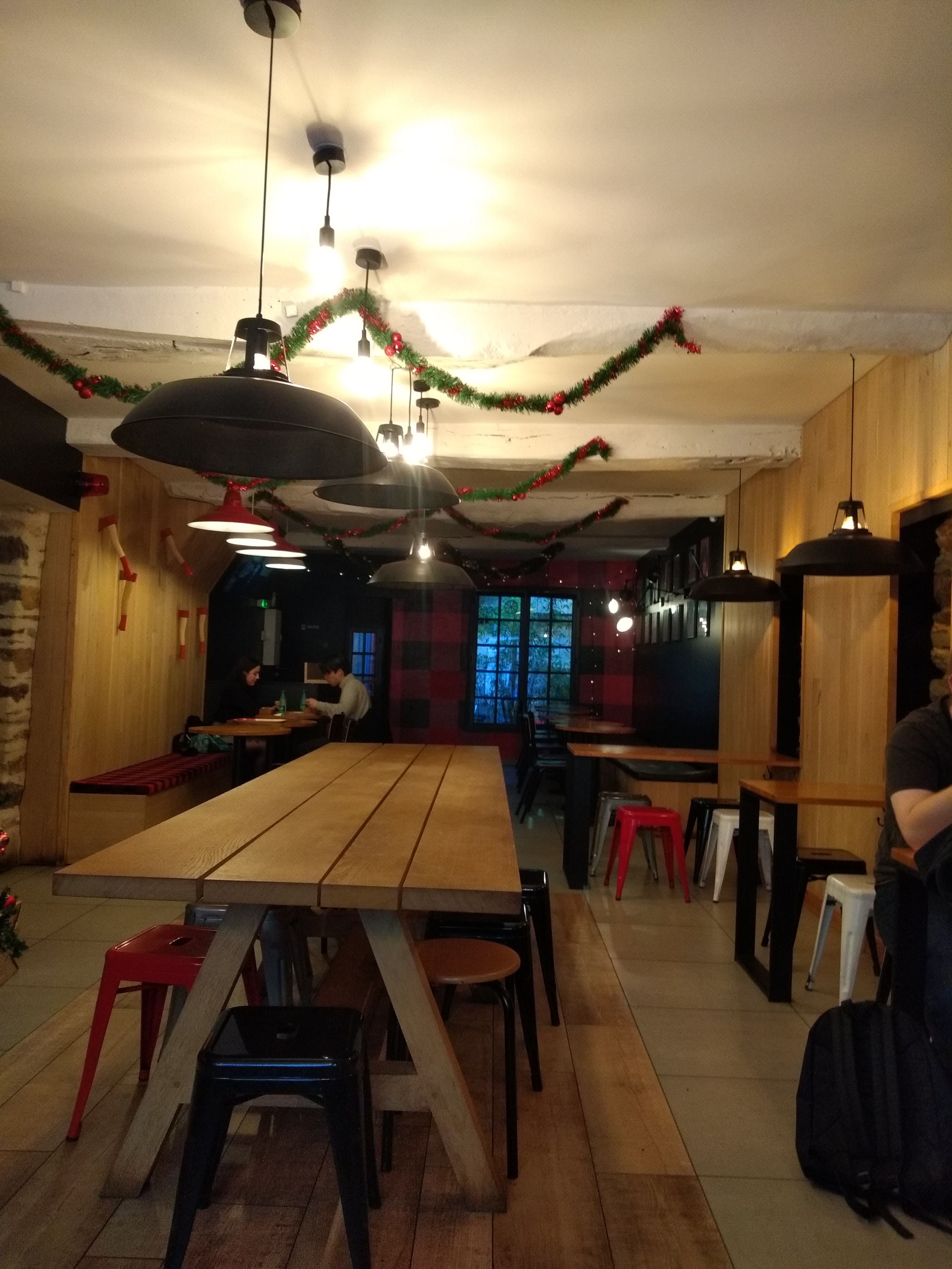 De la délicieuse poutine à déguster à prix raisonnable. Déco sympa on se croirait dans un chalet. Bonne humeur du personnel qui saura vous conseiller si comme pour moi il s'agit d'une totale découverte de de plat typique ! (Bon oubliez le régime en sortant mais profitez des rues autour pour finir la soirée entre amis)