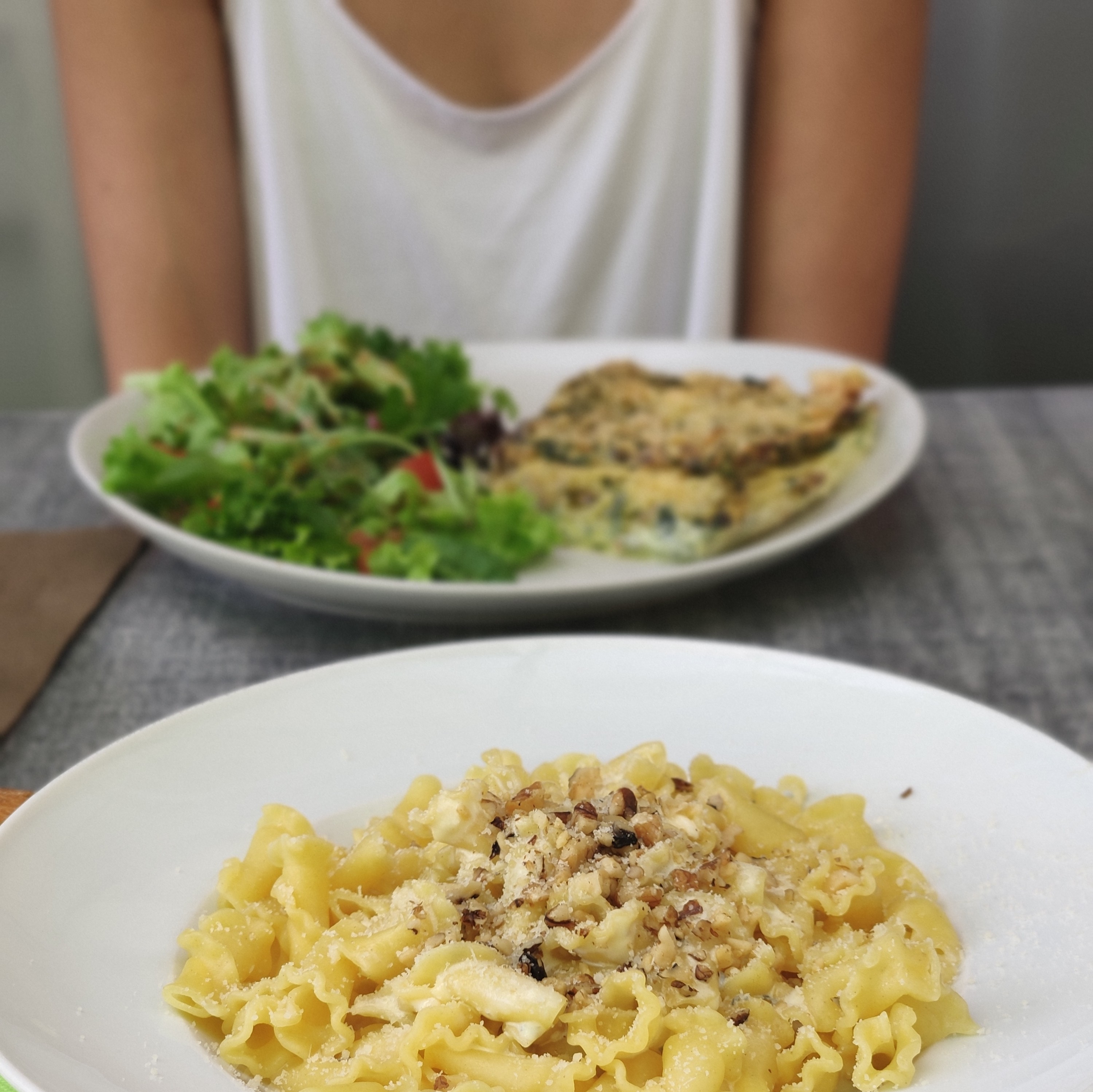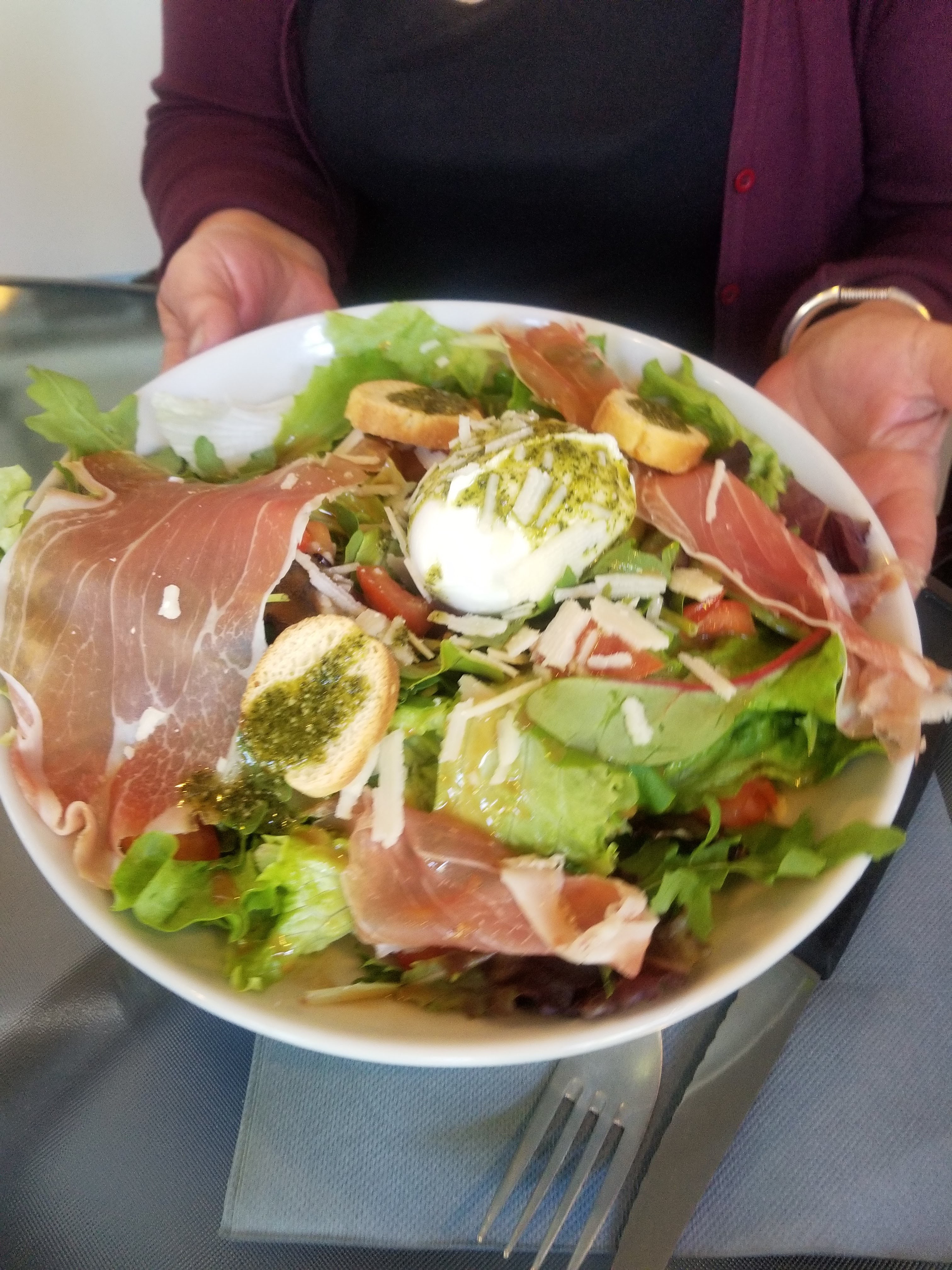 Très bon accueil avec le sourire (derrière le masque) salade Caesar, pates très bonnes.