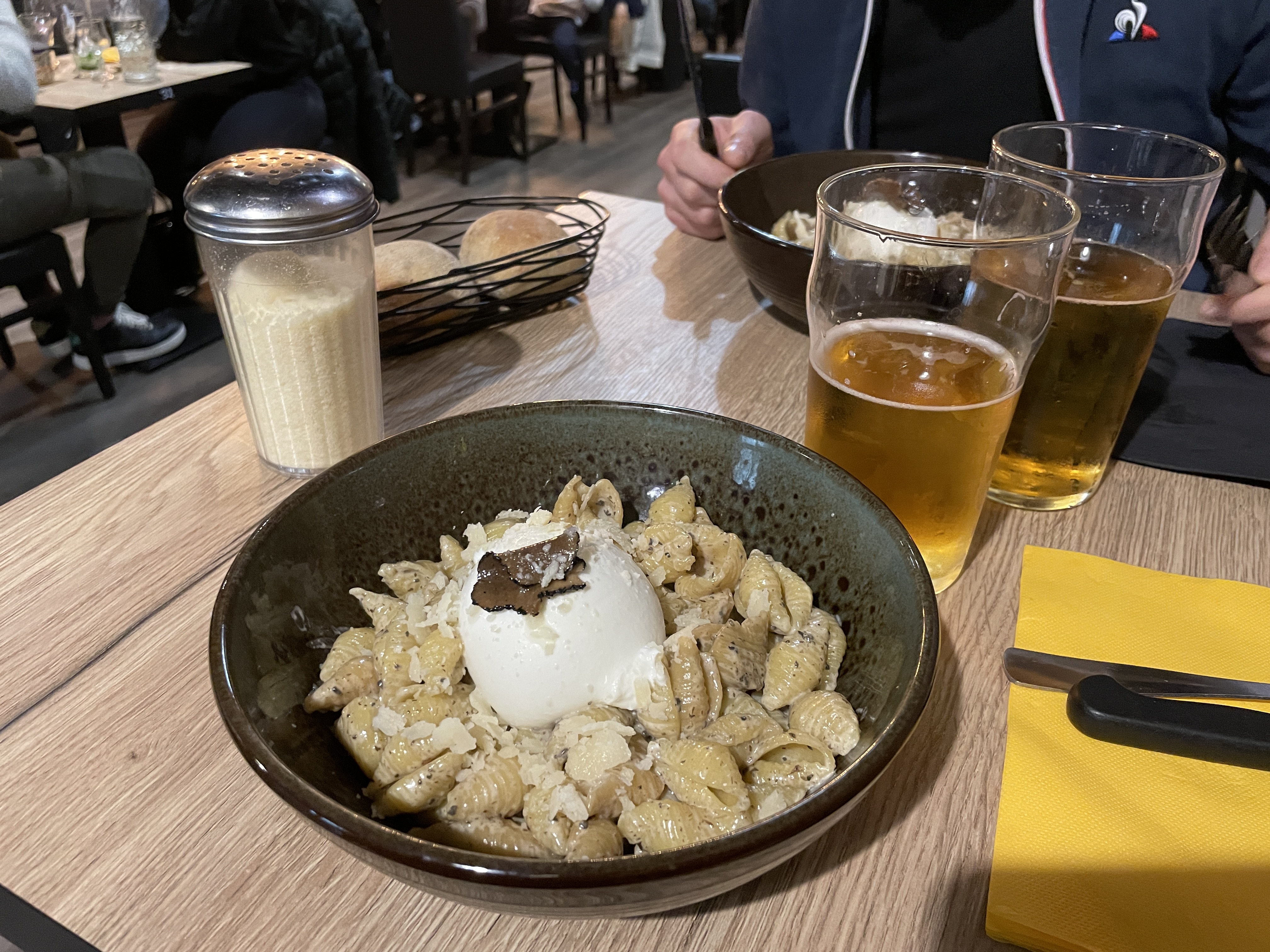 Nous avons passé un agréable moment dans ce joli restaurant. Nous sommes venus goûter les pâtes dans la meule à la truffe un délice! L'équipe est top, le Tiramisu nutella speculoos est à tomber par terre! Mon mari a pris une Bomba Burrata exceptionnel apparemment ! A venir essayer sans hésiter !