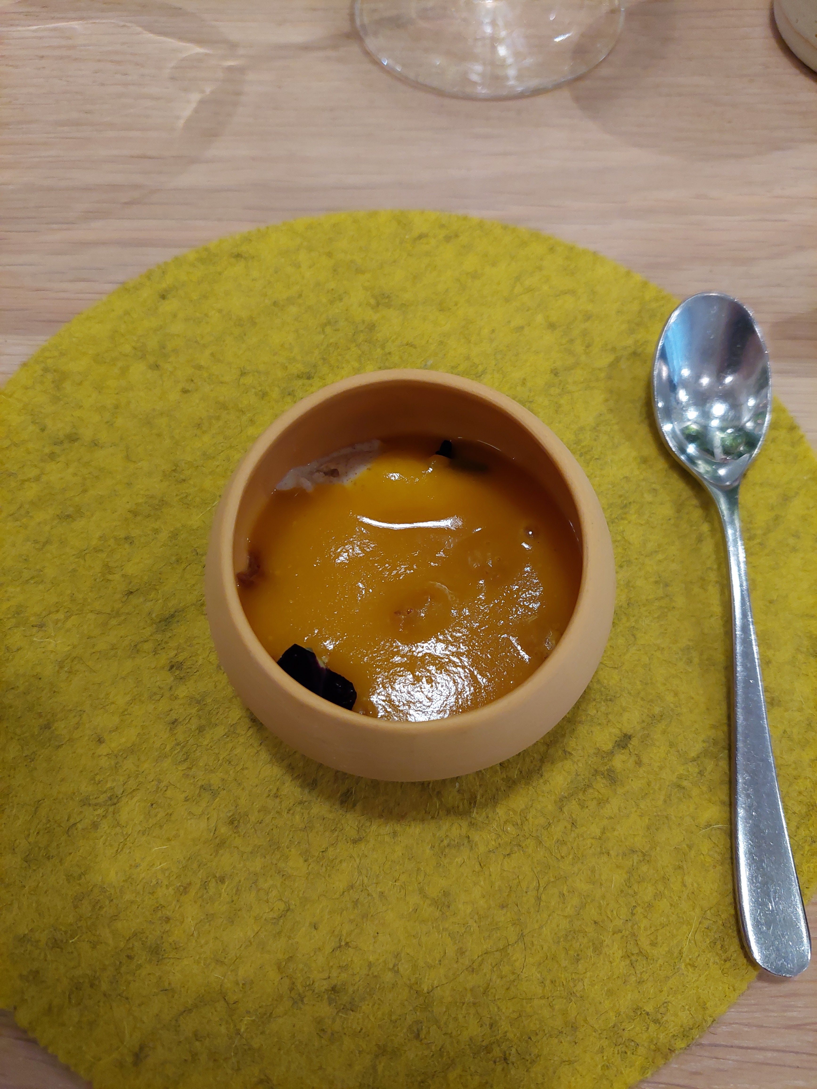 Menu très agréable, manifestement de saison et bien pensé, original mais accessible à toutes les papilles En revanche, un petit bémol sur l'accompagnement des vins (le parcours), un peu trop excentrique à mon goût Toutefois, on sent une bonne connaissance et une vraie passion de la sommelière, donc c'est très personnel Très bon accueil sans être guindé