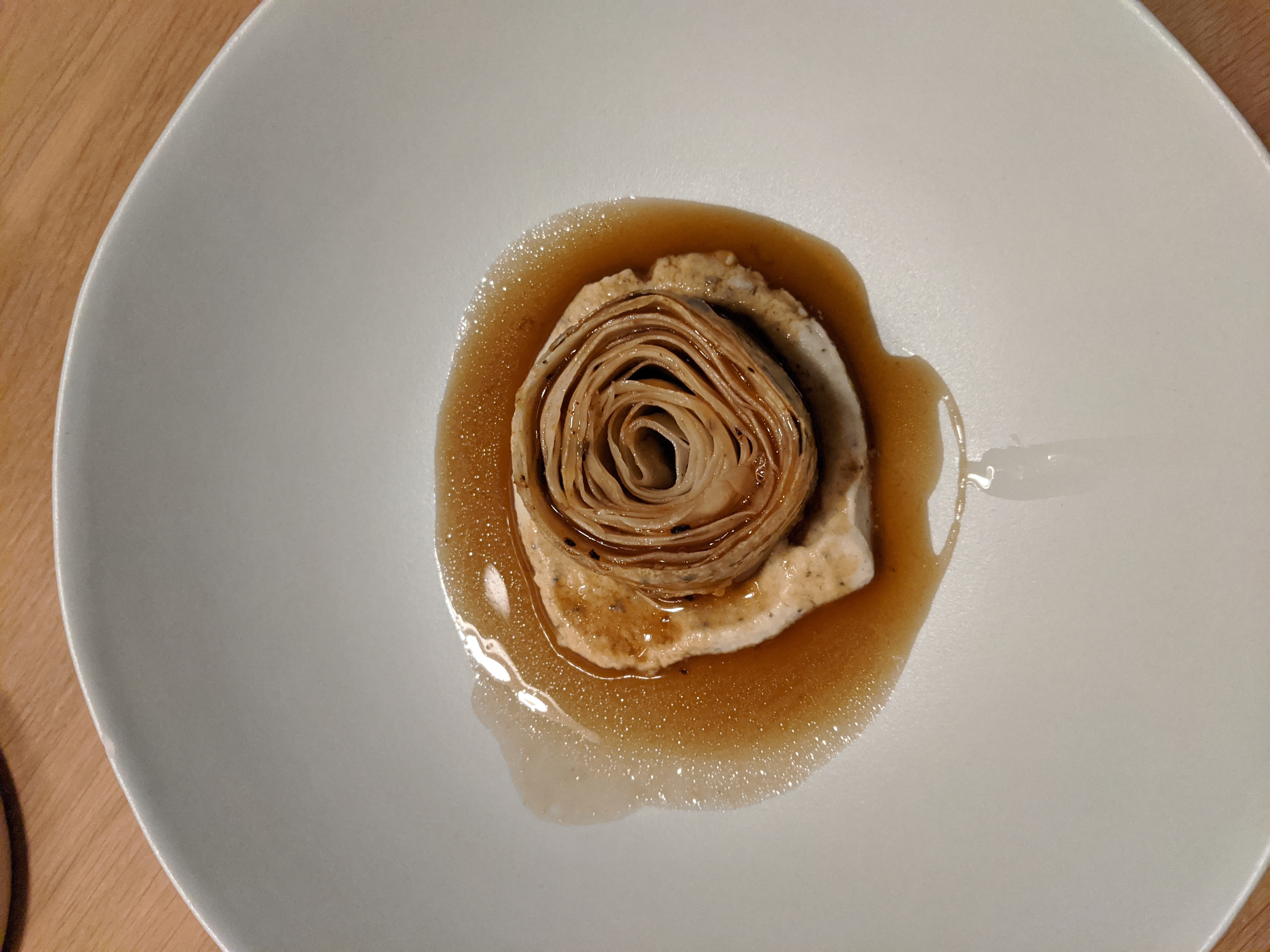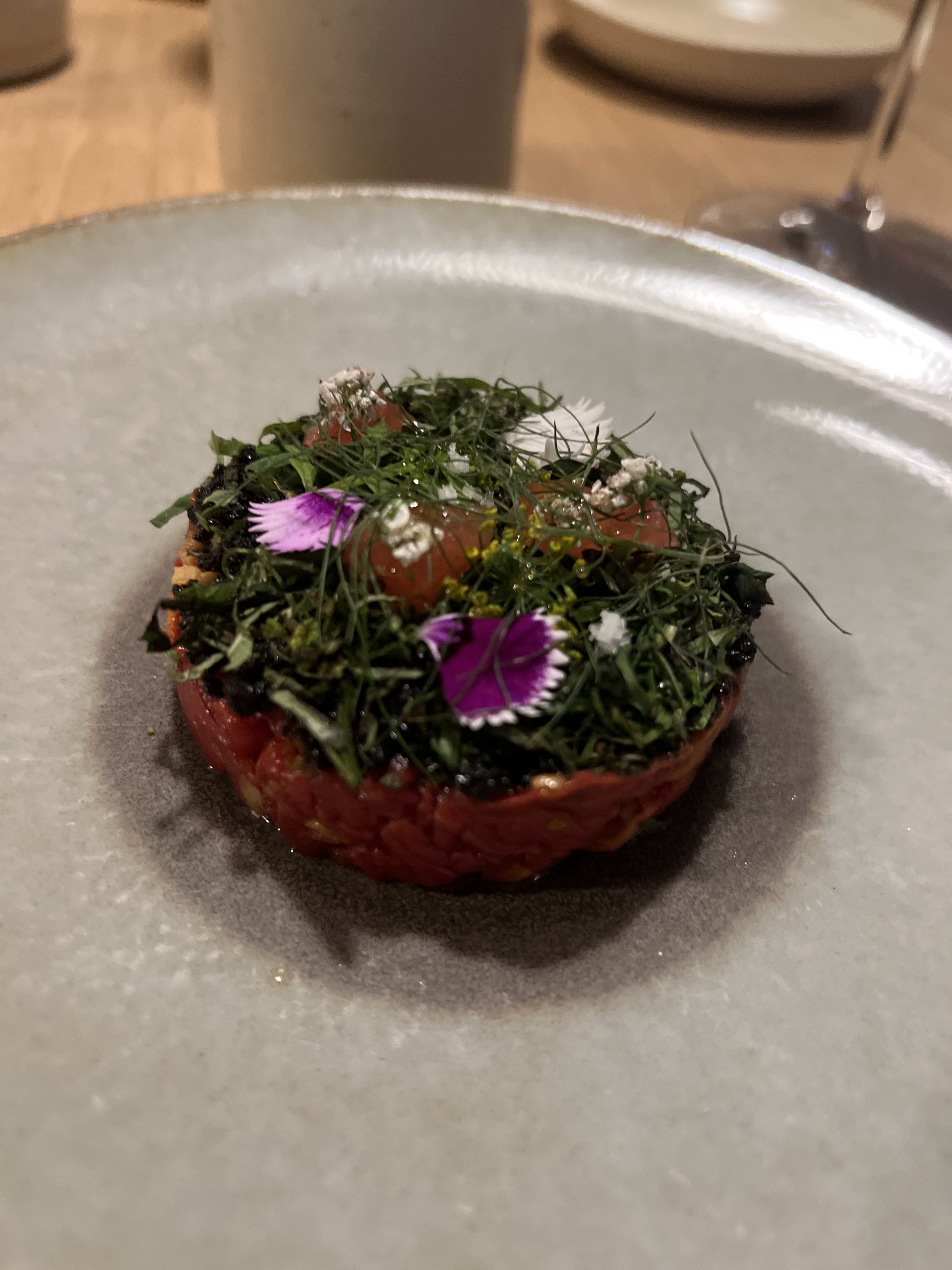 Absolument excellent. Pas de menu. Un siège. Repas de 7 ou 9 plats (nous en avons choisi 9). Accords vins disponibles, ainsi qu'une carte des vins complète. Superbe utilisation de saveurs et de textures, incorporant des ingrédients floraux et herbacés. Probablement le meilleur repas que nous ayons eu, avec un service parfaitement chronométré. Il mérite largement l'étoile Michelin.
