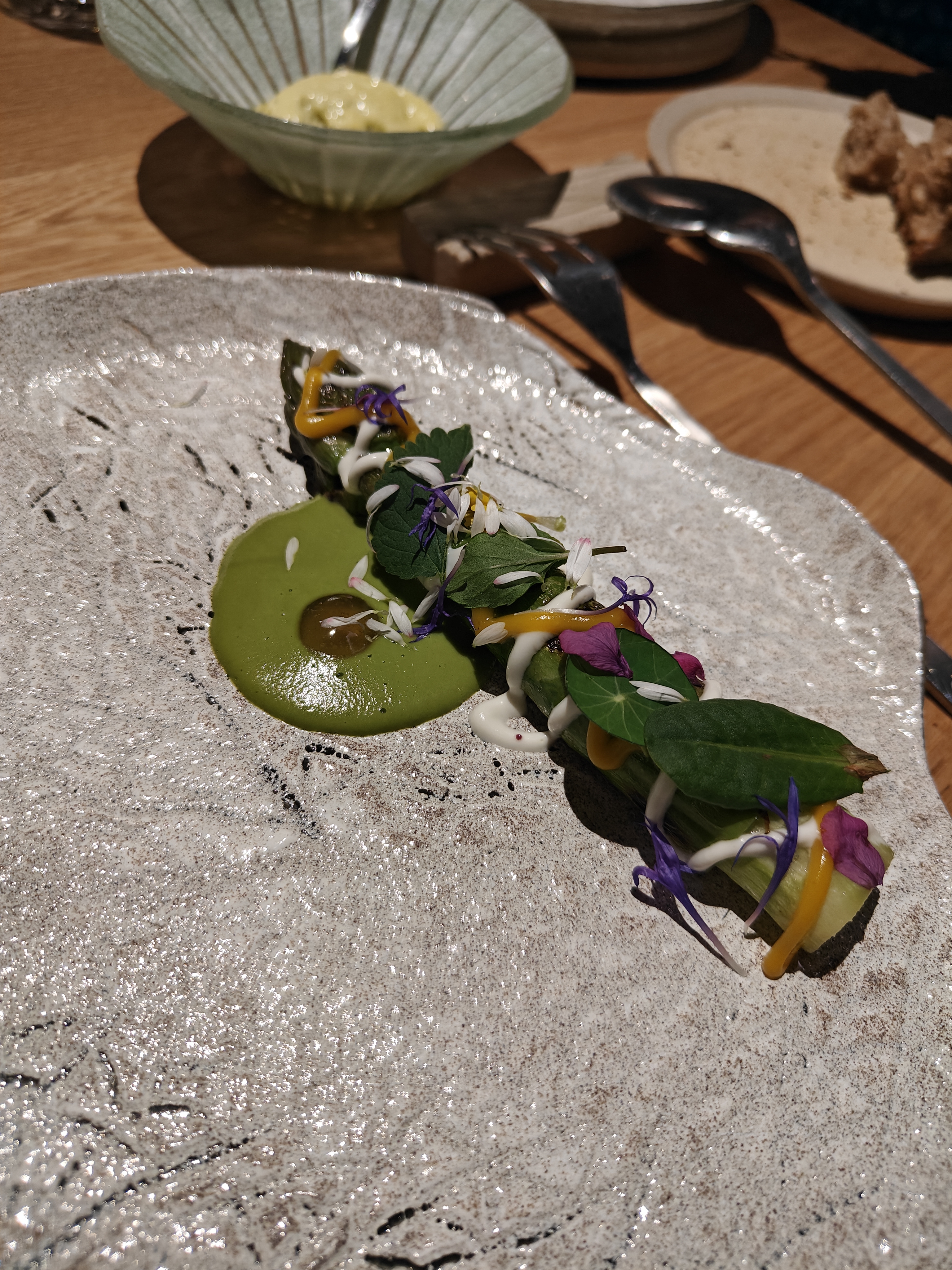 Cadre moderne et zen. Très bon repas qui raconte une belle histoire. Les plats mettent en avant tout un cocktail de plantes, graines et fleurs qui nous ont été agréables à découvrir. Service impeccable !