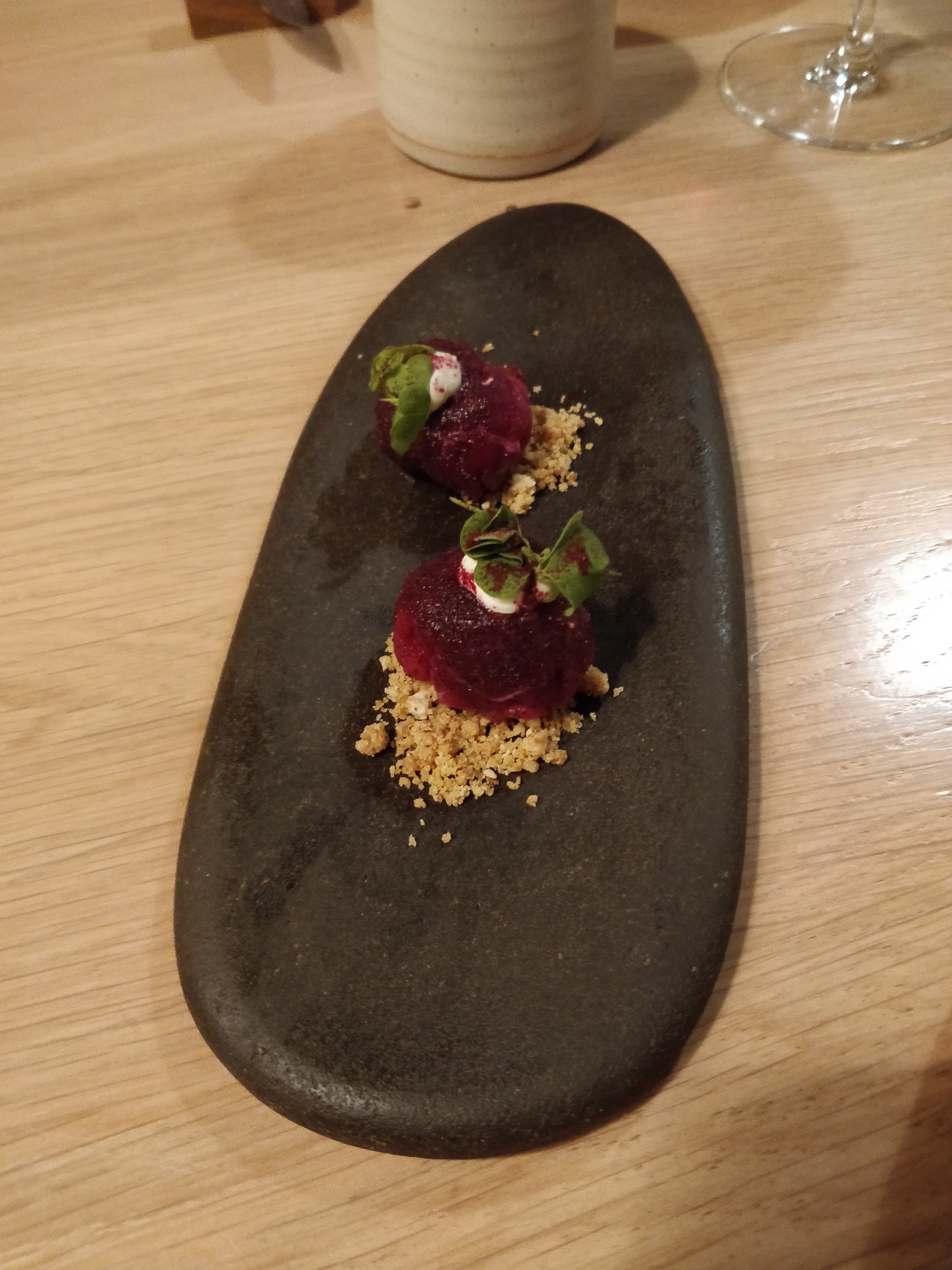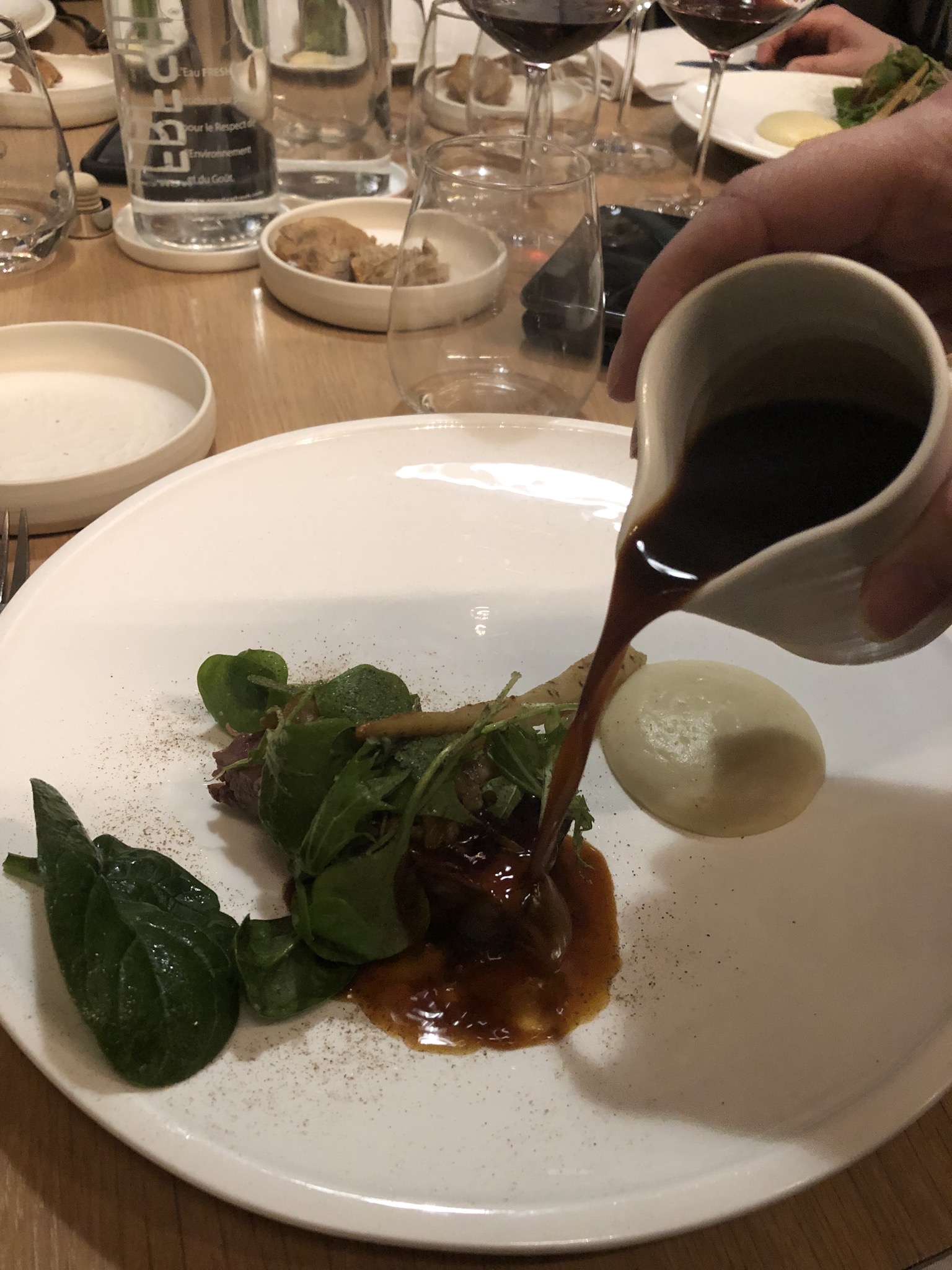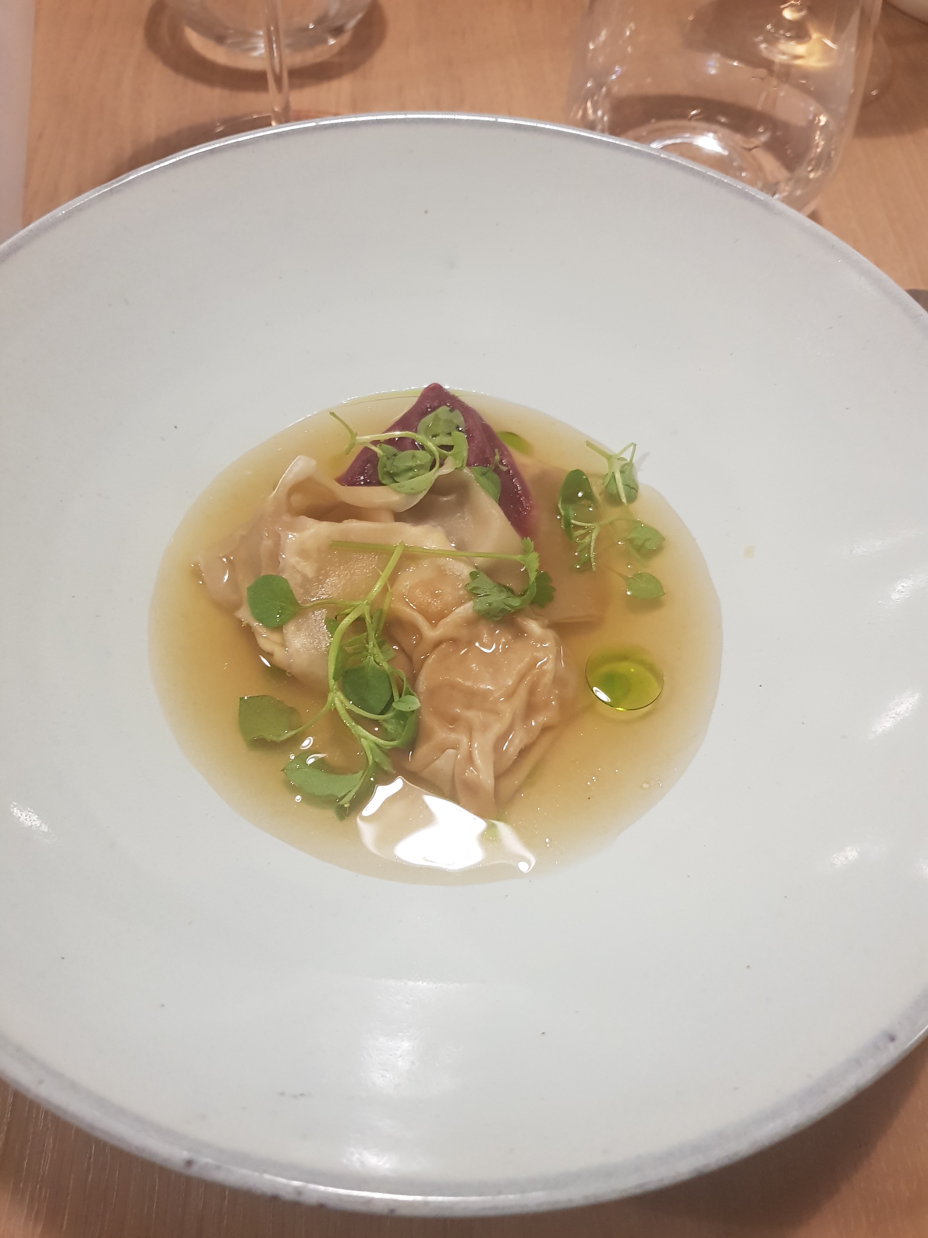 Bien: - La nourriture était phénoménale. Le plat préféré était le plat de truite et de pois mange-tout. La perfection. - Les accords mets et vins m'ont fait croire à la valeur des accords mets et vins. Excellent travail du sommelier. Moins bon: - Le service s'est senti globalement précipité. 9 plats duraient encore 3 heures, mais on avait l'impression que les serveurs étaient toujours pressés de déposer et de récupérer les assiettes. Certes, je suis arrivé avec 10 m de retard mais ce sentiment a persisté pendant tout le repas. - Accords bières. Un accord de bière était intéressant. La seconde ressemblait à peu près à la même chose (et cela vient d'un fan de bière à fermentation mixte/spontanée). - 3 plats de desserts ? Honnêtement, si je savais que 3/9 plats étaient des desserts, j'aurais fait des réservations ailleurs. Ils étaient également excellents mais les assiettes salées étaient de loin les stars. - Nickel et gradation. Il suffit d'inclure le coût de l'apéritif et de l'eau dans les prix des menus. Les frais supplémentaires semblaient ringards à la fin. - Salle à manger fermée. Cela n'a en rien gâché l'expérience, mais le volume de la pièce ressemblait à celui d'une cafétéria. Pas idéal pour un repas > 150 € par personne, IMO. Conclusion : je le recommanderais à un ami. La nourriture ne ressemblait à aucune autre. Mais je ne reviendrais pas si j'étais à nouveau à Lyon.