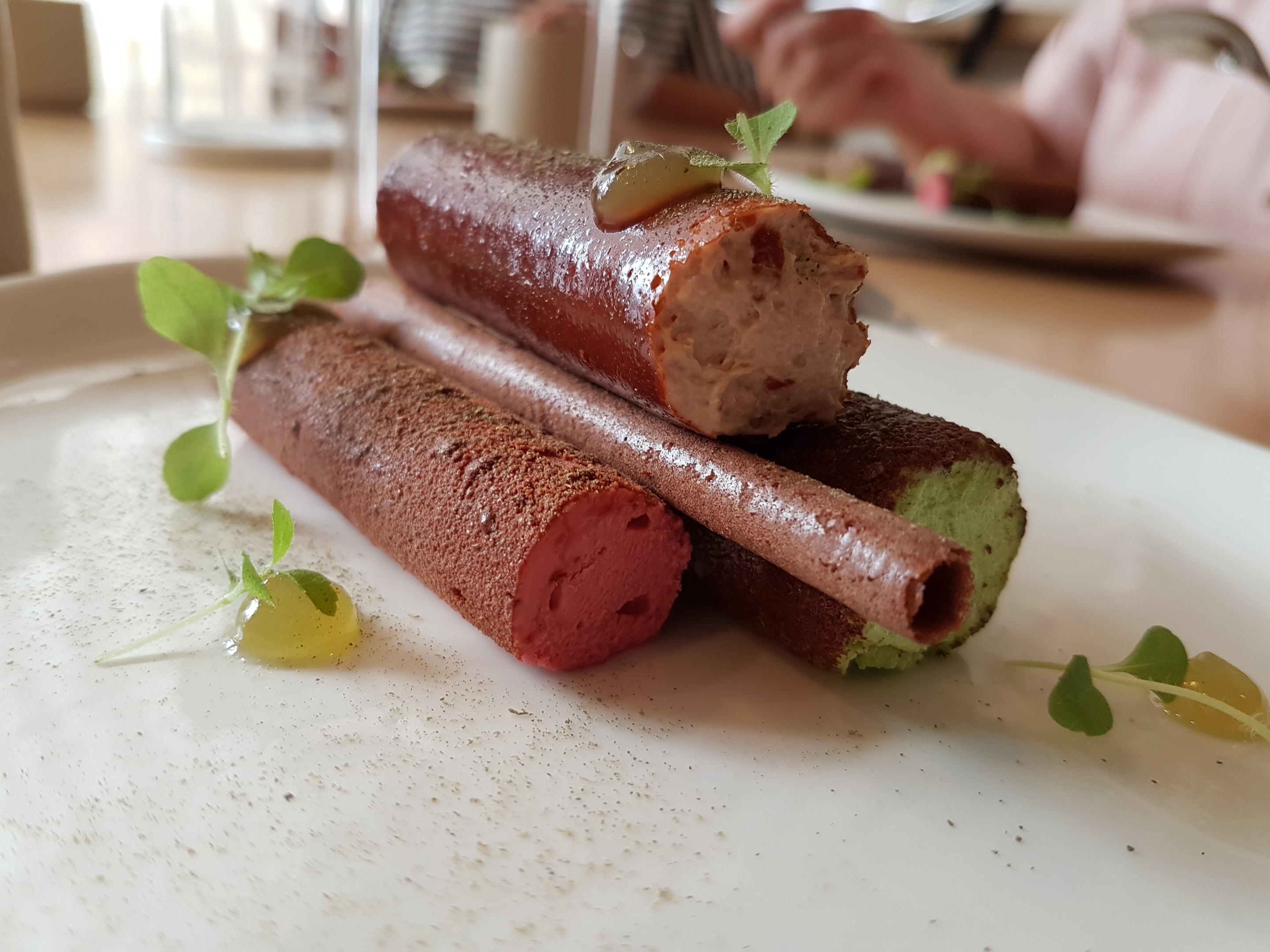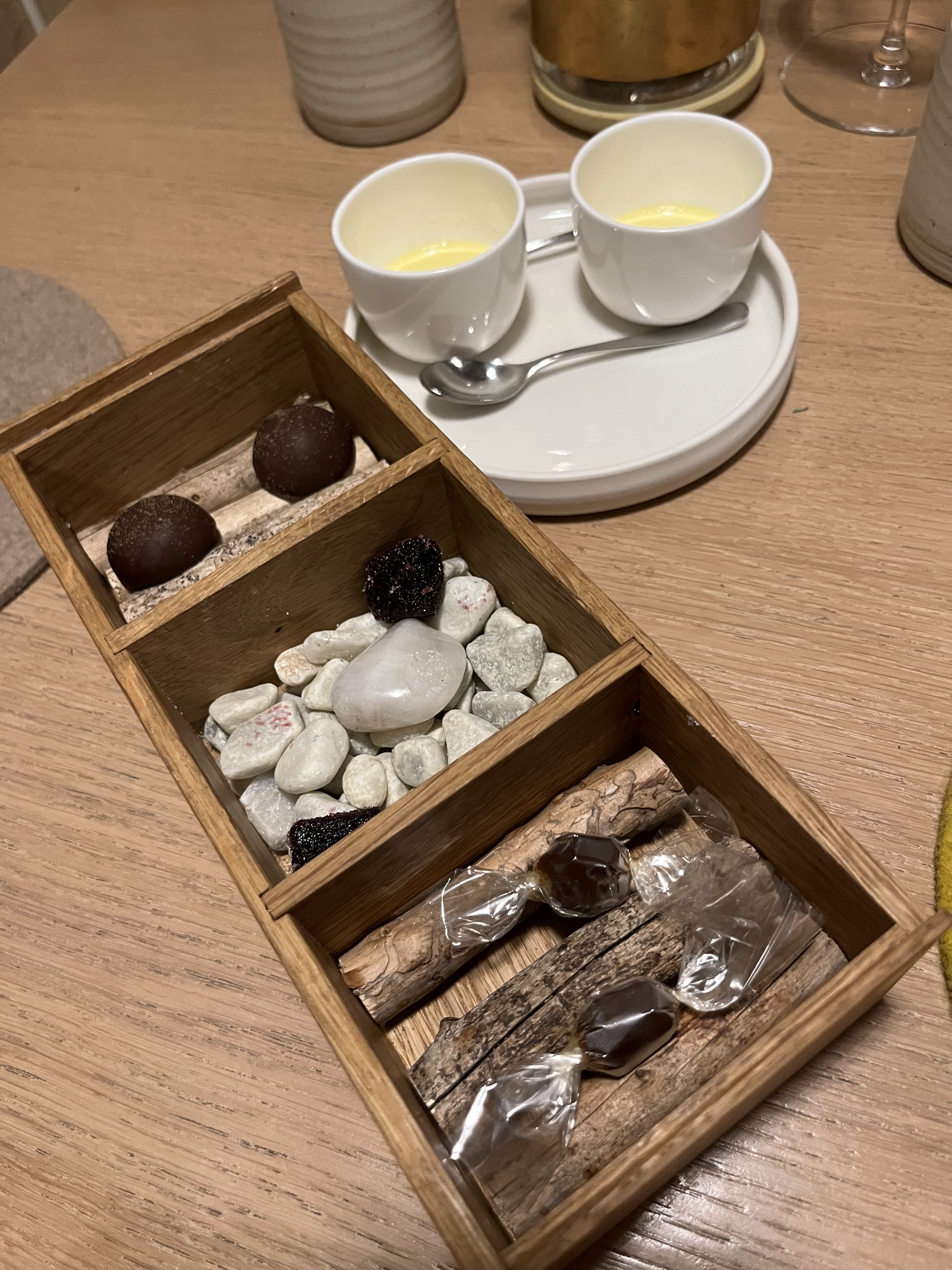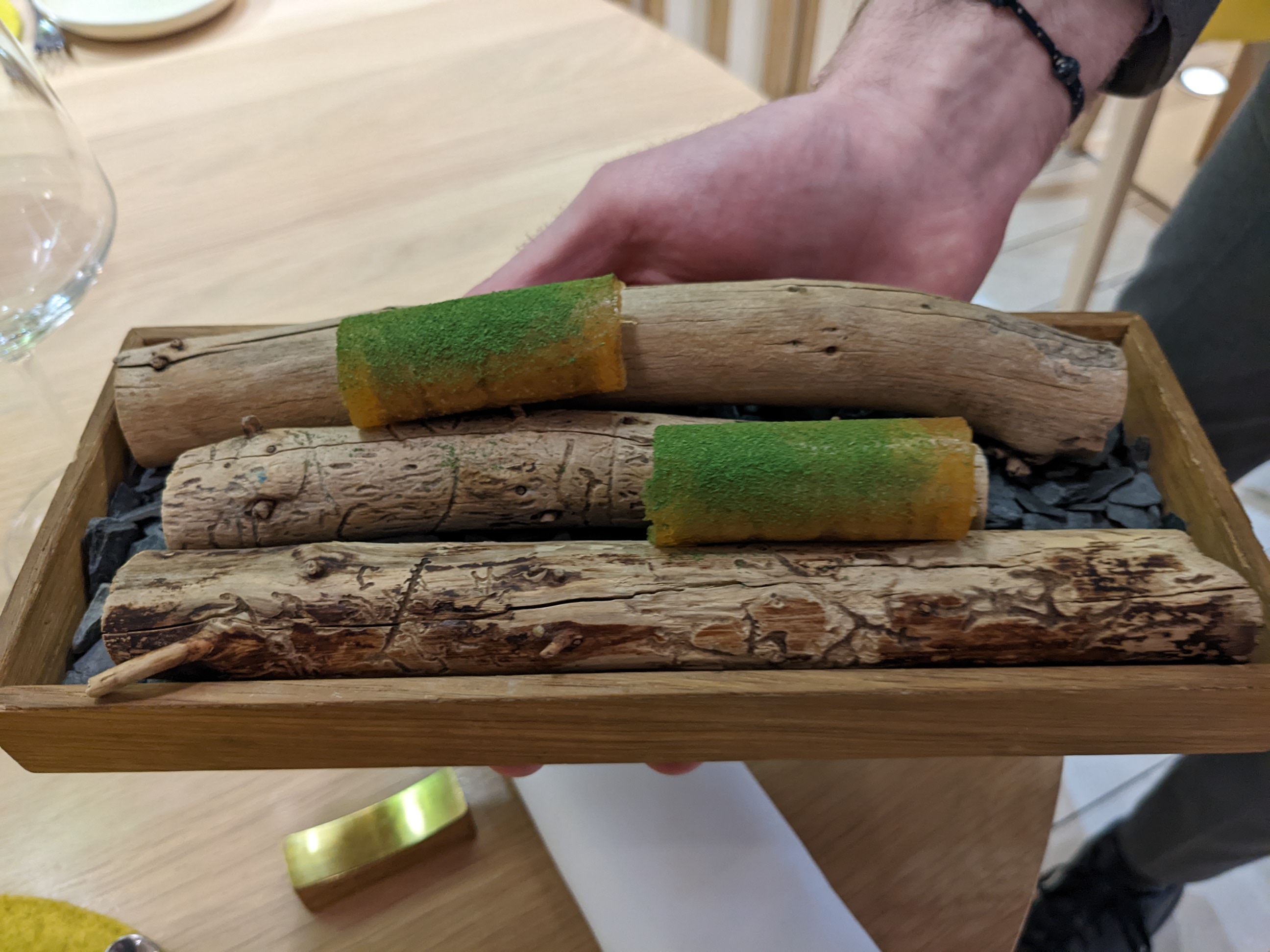 Bien: - La nourriture était phénoménale. Le plat préféré était le plat de truite et de pois mange-tout. La perfection. - Les accords mets et vins m'ont fait croire à la valeur des accords mets et vins. Excellent travail du sommelier. Moins bon: - Le service s'est senti globalement précipité. 9 plats duraient encore 3 heures, mais on avait l'impression que les serveurs étaient toujours pressés de déposer et de récupérer les assiettes. Certes, je suis arrivé avec 10 m de retard mais ce sentiment a persisté pendant tout le repas. - Accords bières. Un accord de bière était intéressant. La seconde ressemblait à peu près à la même chose (et cela vient d'un fan de bière à fermentation mixte/spontanée). - 3 plats de desserts ? Honnêtement, si je savais que 3/9 plats étaient des desserts, j'aurais fait des réservations ailleurs. Ils étaient également excellents mais les assiettes salées étaient de loin les stars. - Nickel et gradation. Il suffit d'inclure le coût de l'apéritif et de l'eau dans les prix des menus. Les frais supplémentaires semblaient ringards à la fin. - Salle à manger fermée. Cela n'a en rien gâché l'expérience, mais le volume de la pièce ressemblait à celui d'une cafétéria. Pas idéal pour un repas > 150 € par personne, IMO. Conclusion : je le recommanderais à un ami. La nourriture ne ressemblait à aucune autre. Mais je ne reviendrais pas si j'étais à nouveau à Lyon.