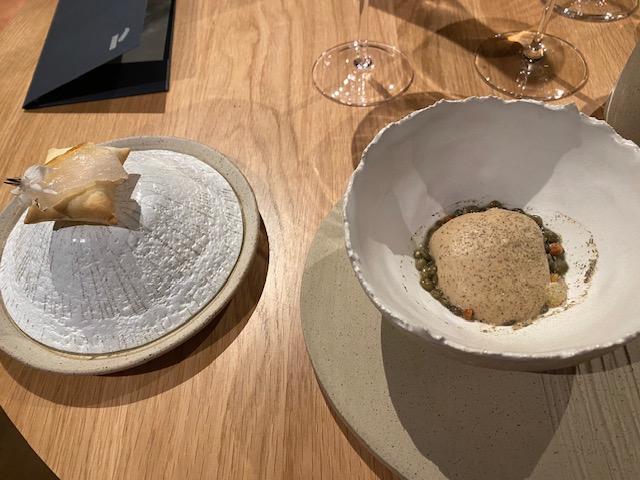 Restaurant incroyable. Nous avons déjeuné. Le menu est une surprise. Nous avons eu deux entrées, un plat principal et un dessert comme menu fixe (35 euros). Le menu amélioré est le même, mais vous permet de manger les deux options du plat principal. Nous avons ajouté une assiette de fromages pour deux des 5 mangeurs (13 euros chacun). Toute la nourriture était délicieuse - de très haute qualité avec une saveur particulière. Les assiettes sont visibles sur les photos - très belles. Service très attentionné.