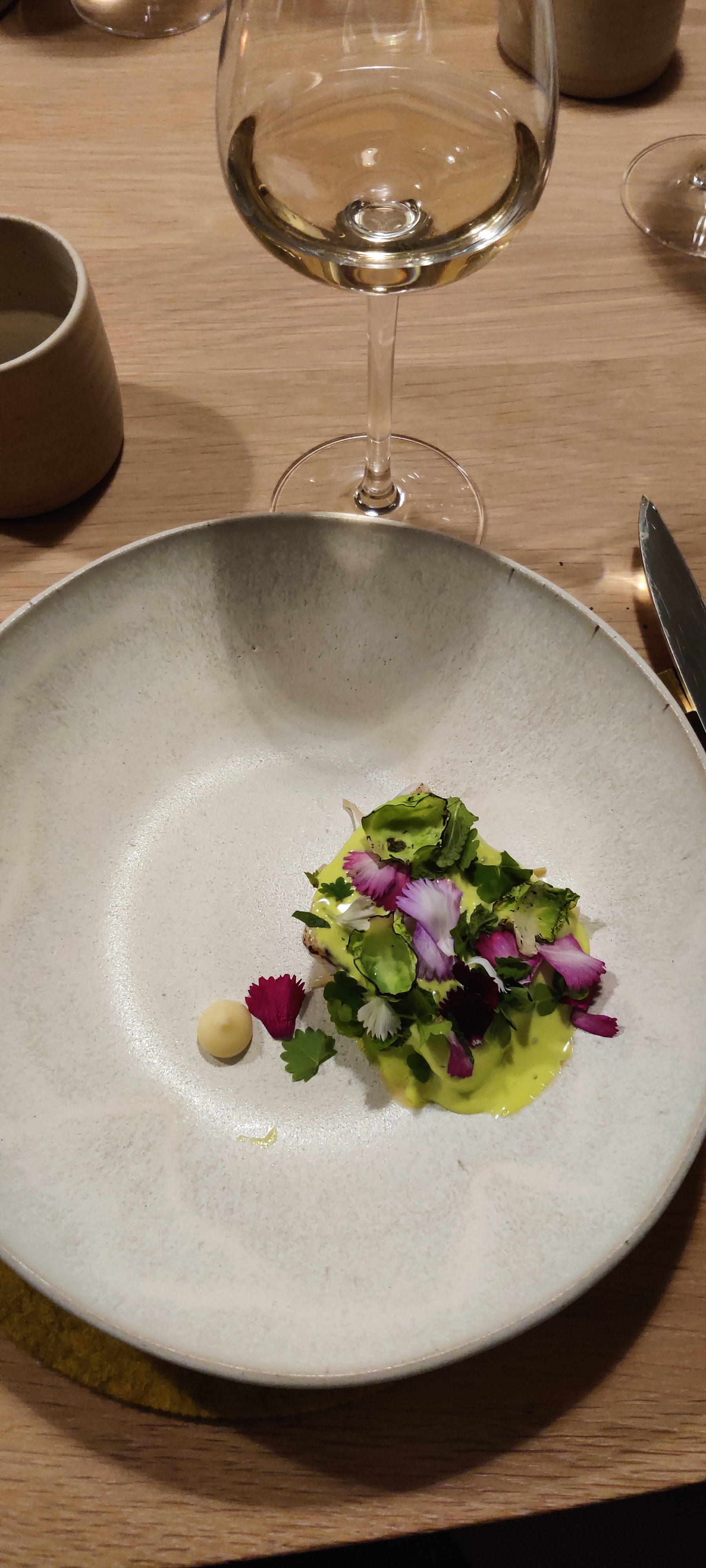 Une expérience culinaire de qualité et décontractée pour un super diner ! Accueil simple, décontractée et décomplexé (on va choisir soit même sa place et s'installer) mais chaleureux! Décoration épurée et nature mais de gout. Et surtout une cuisine travaillée et efficace ! Menu très floral, très complet, faite une confiance aveugle au chef qui vous surprendra avec des plats très délicats et un menu vraiment complet (9 plats + amuse bouche + mignardise pour le menu randonnée ) Les vins sont surprenants et le sommelier passionné (que des découvertes positives) Bref, que des bonnes choses pour ce restaurant qui se veut de qualité étoilée , et le tout décontracté !