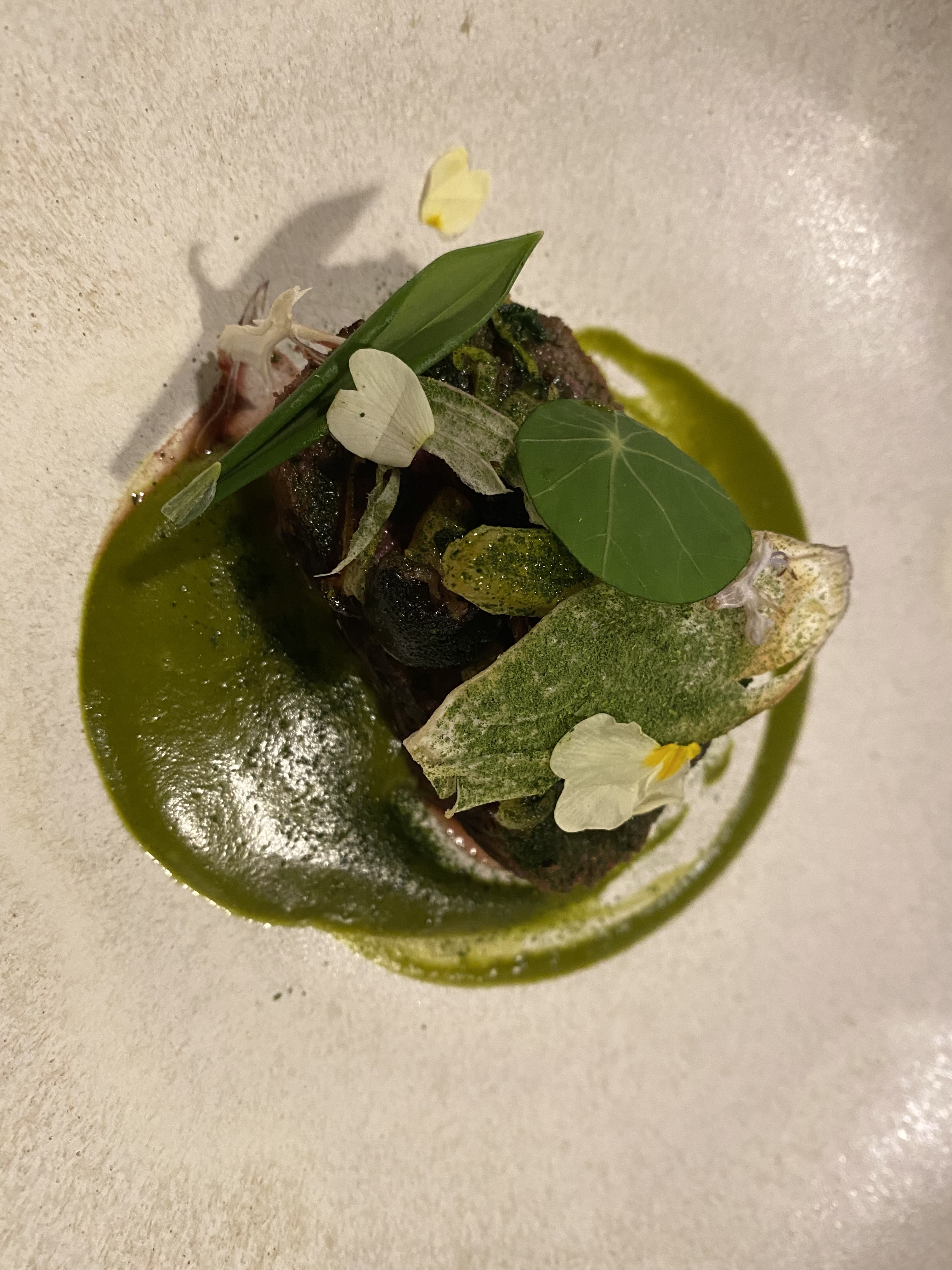 Quelle claque ! Un lieu zen épuré avec son magnifique mur végétal, prémisse à une cuisine raffinée et recherchée où les herbes assaisonnent avec originalité et délicatesse de l’entrée au dessert. Une équipe investie, un chef timide mais tellement talentueux complète ce bel écrin. Un lieu à découvrir et à aimer ... un peu...beaucoup...