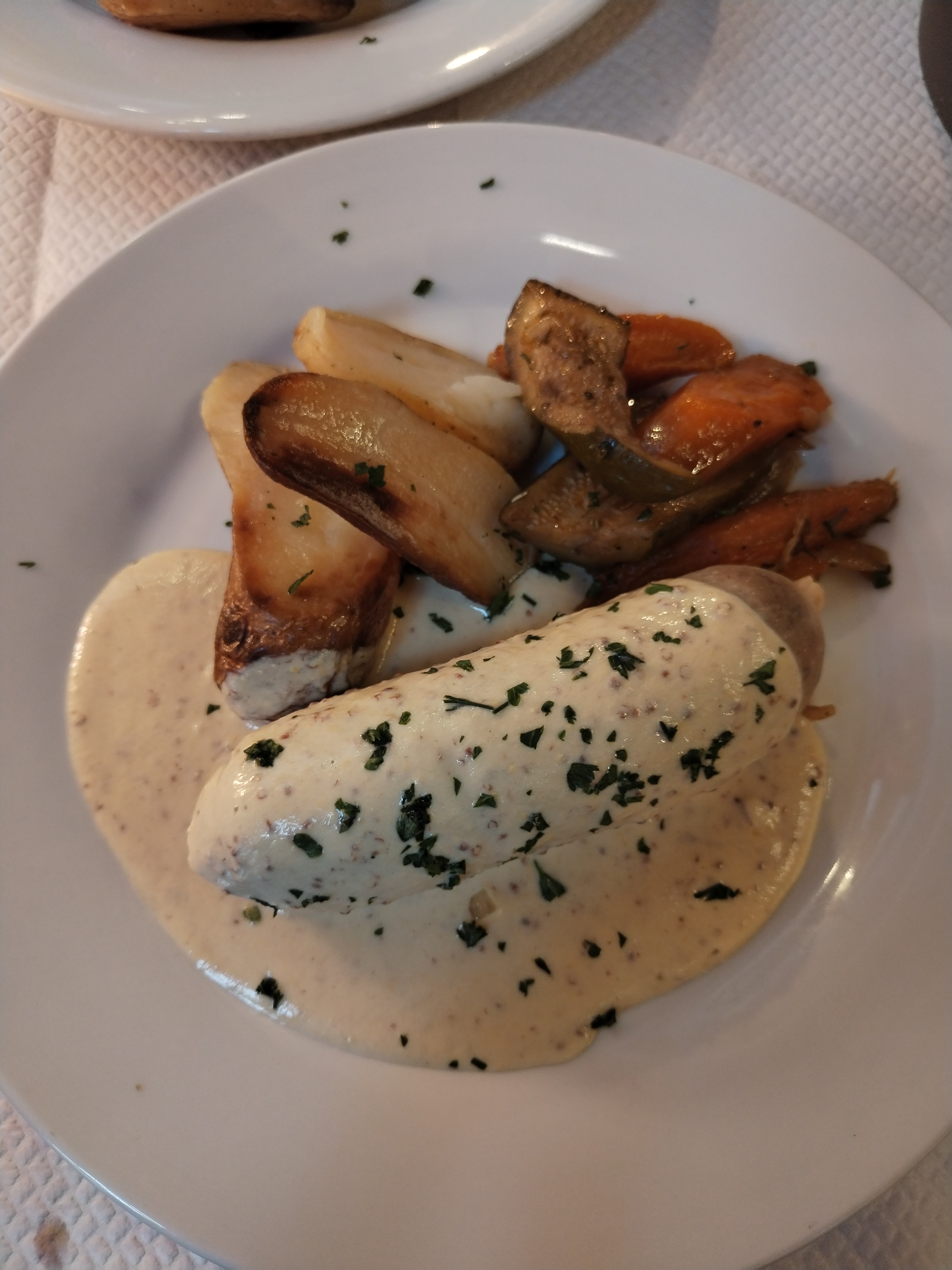La nourriture était correcte, sans plus. Les quenelles goutaient la farine. Nous avons eu l’impression que la nourriture servie était préparée d’avance et réchauffée. Je crois qu’il y a de meilleures options dans le quartier.