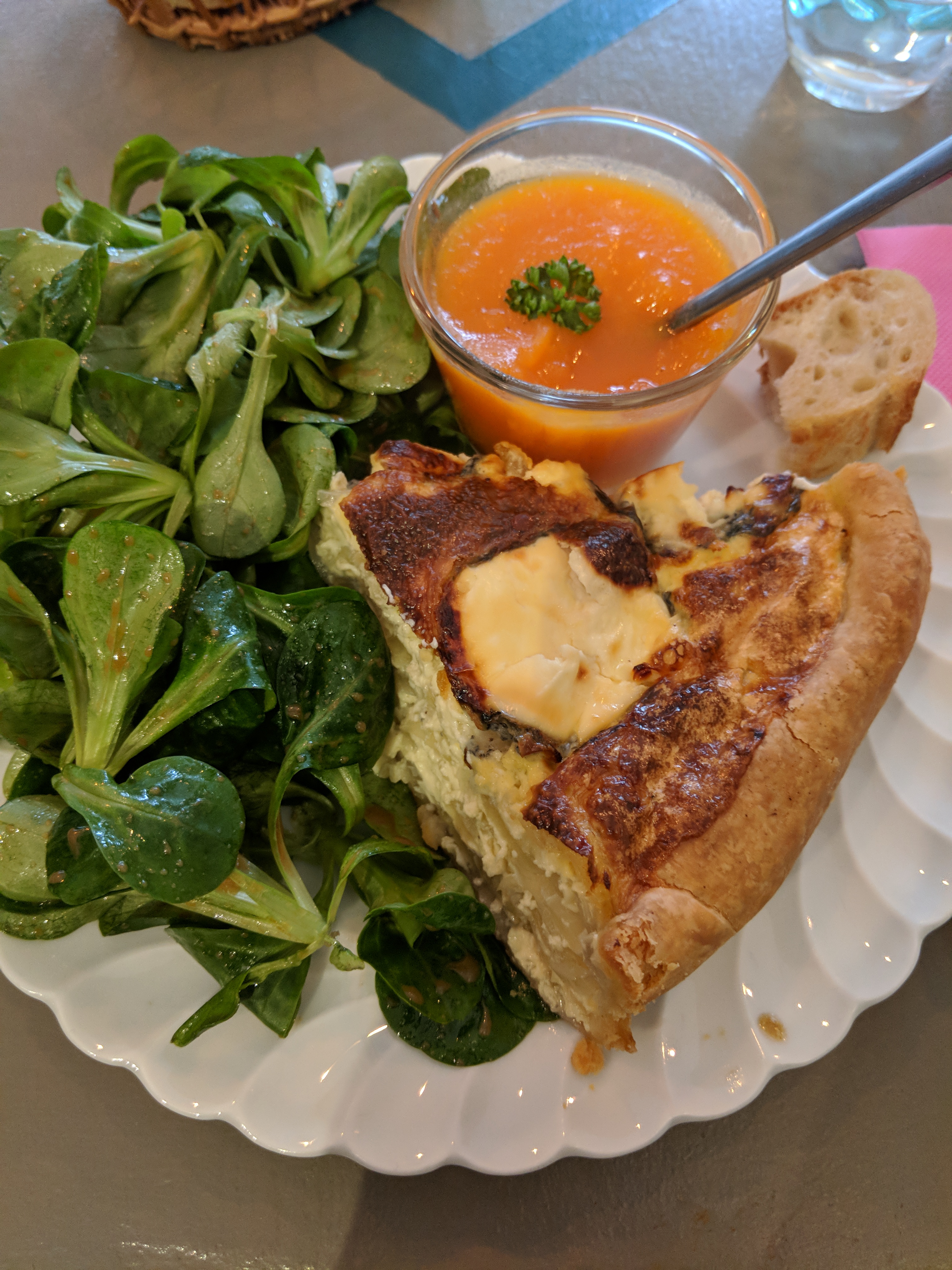 J'ai du tomber un mauvais jour... Suite à ma première experience il y a bcp de marge pour améliorer. J'ai testé un velouté, du boeuf à la bière, salade et divers petits desserts. Le velouté manquait un peu de sel comme le boeuf, qui était lui très fibreux et dur..les quantités sont assez restreintes. La salade (mache) accompagnée d'une vinaigrette...rien d'exceptionnel pour moi! Pas mal les desserts. Une seule personne pour s'occuper de tout et j'imagine aussi pour faire la cuisine. J'y retournerai pour tester les quiches et voir si effectivement j'ai eu un jour de poisse, ce qui est fort possible vu les autres commentaires ultra positifs..I'll be back!!! je suis confiant.