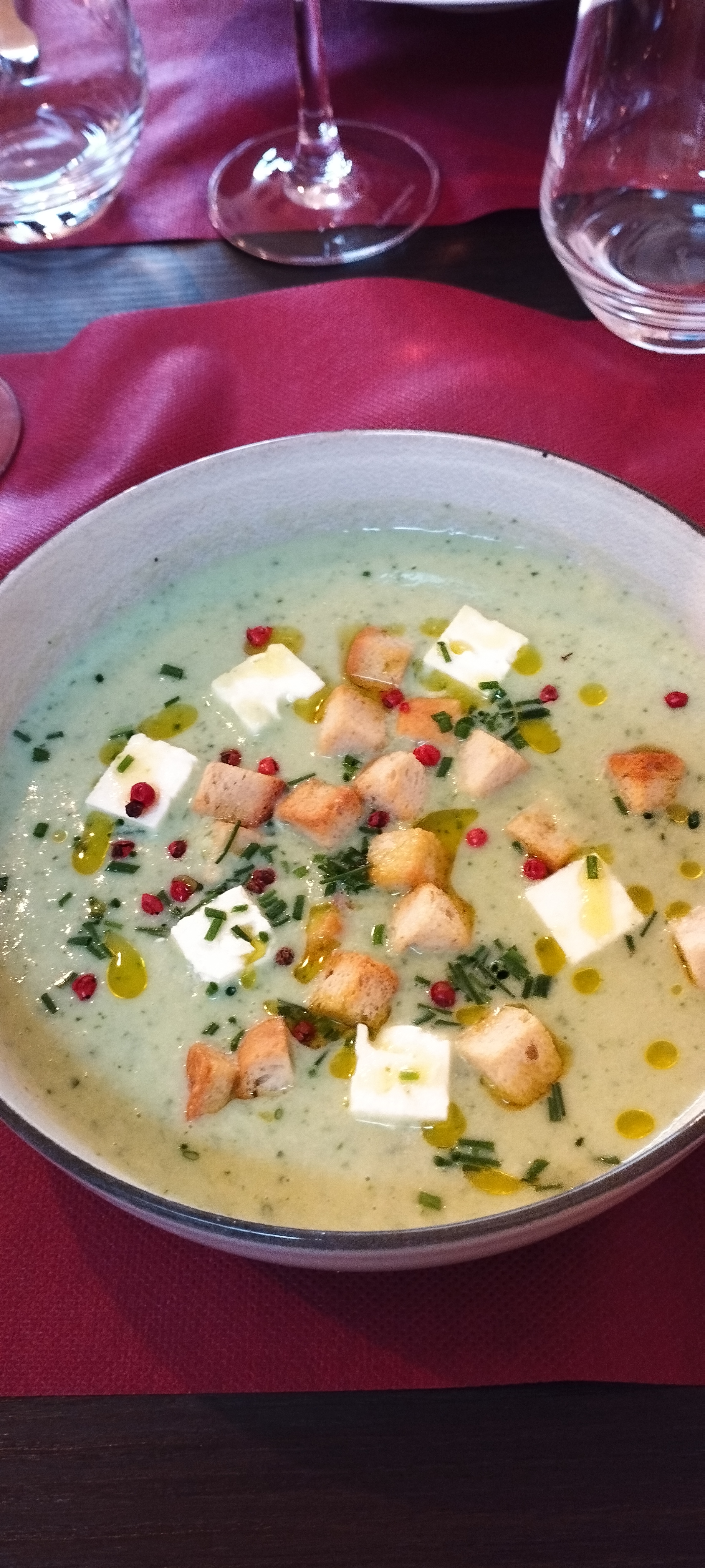 Accueil et service au top, très bon repas (velouté de butternut avec tuile de bacon, cuisse de canard et brownie. Je recommande.