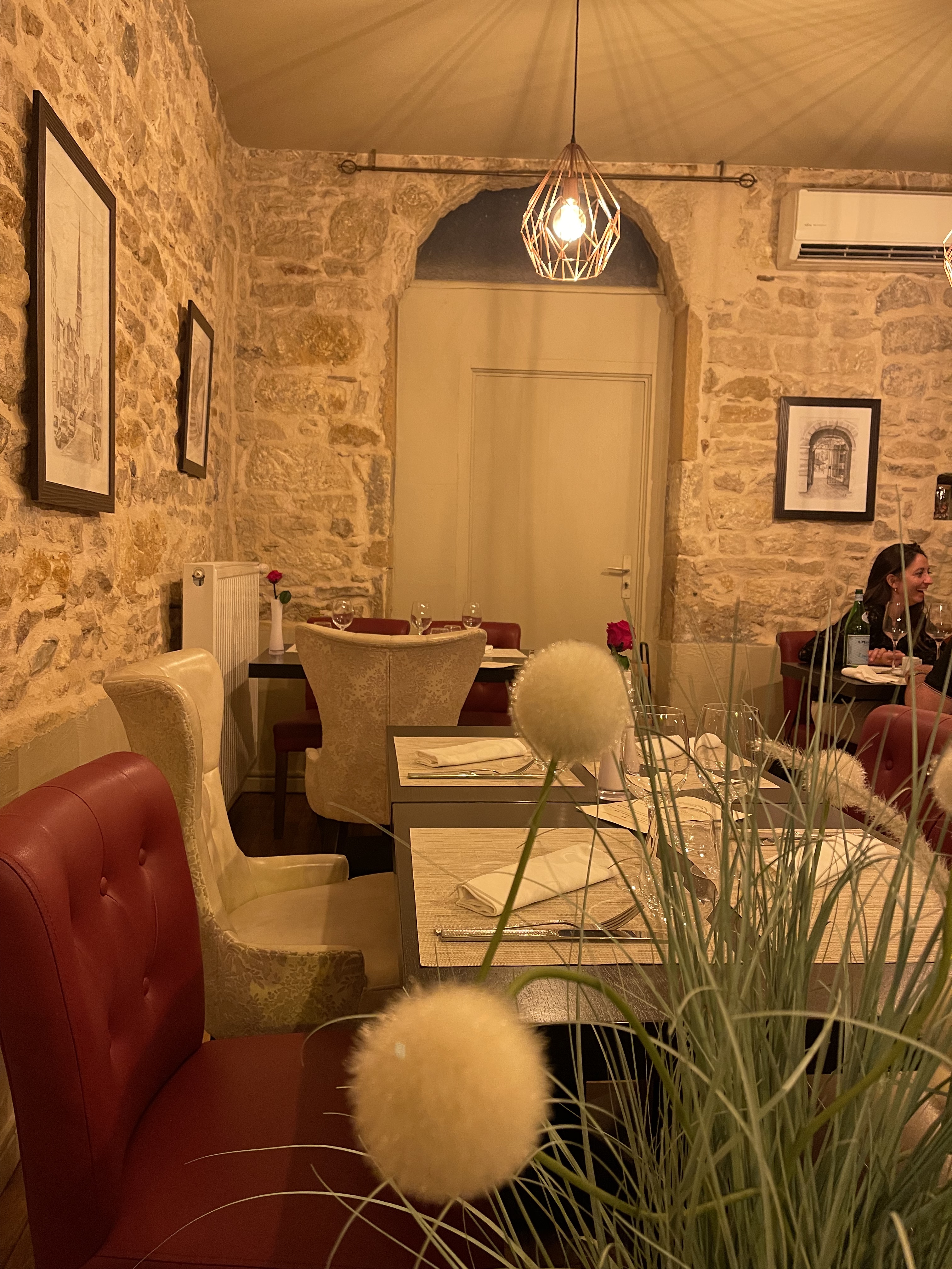 Restaurant au top ! Déco soignée et cosy entre vieilles pierres et confortables fauteuils. Accueil souriant et chaleureux. Cuisine inventive et gouteuse. C'était parfait : à faire et refaire !!