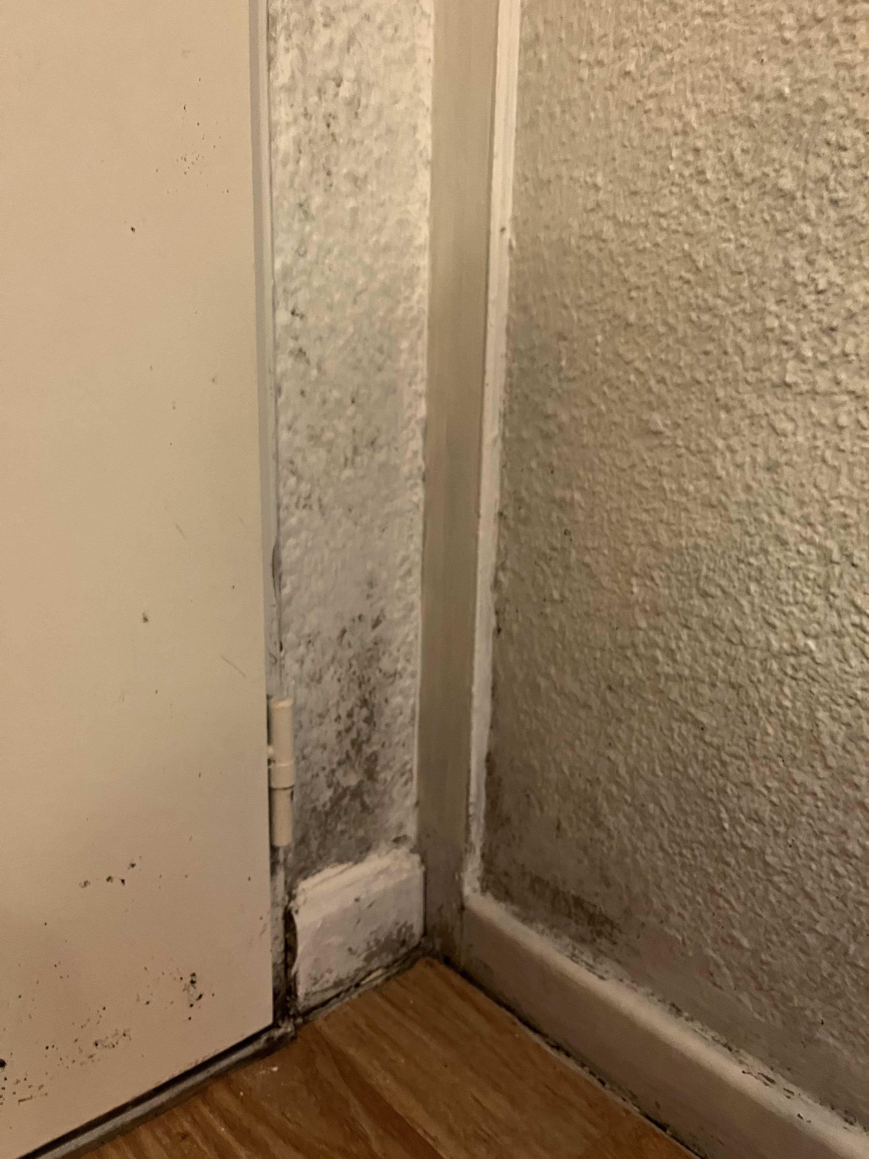 chambre sale porte de salle de bain cassé robinet remplacé par un pommeau de douche