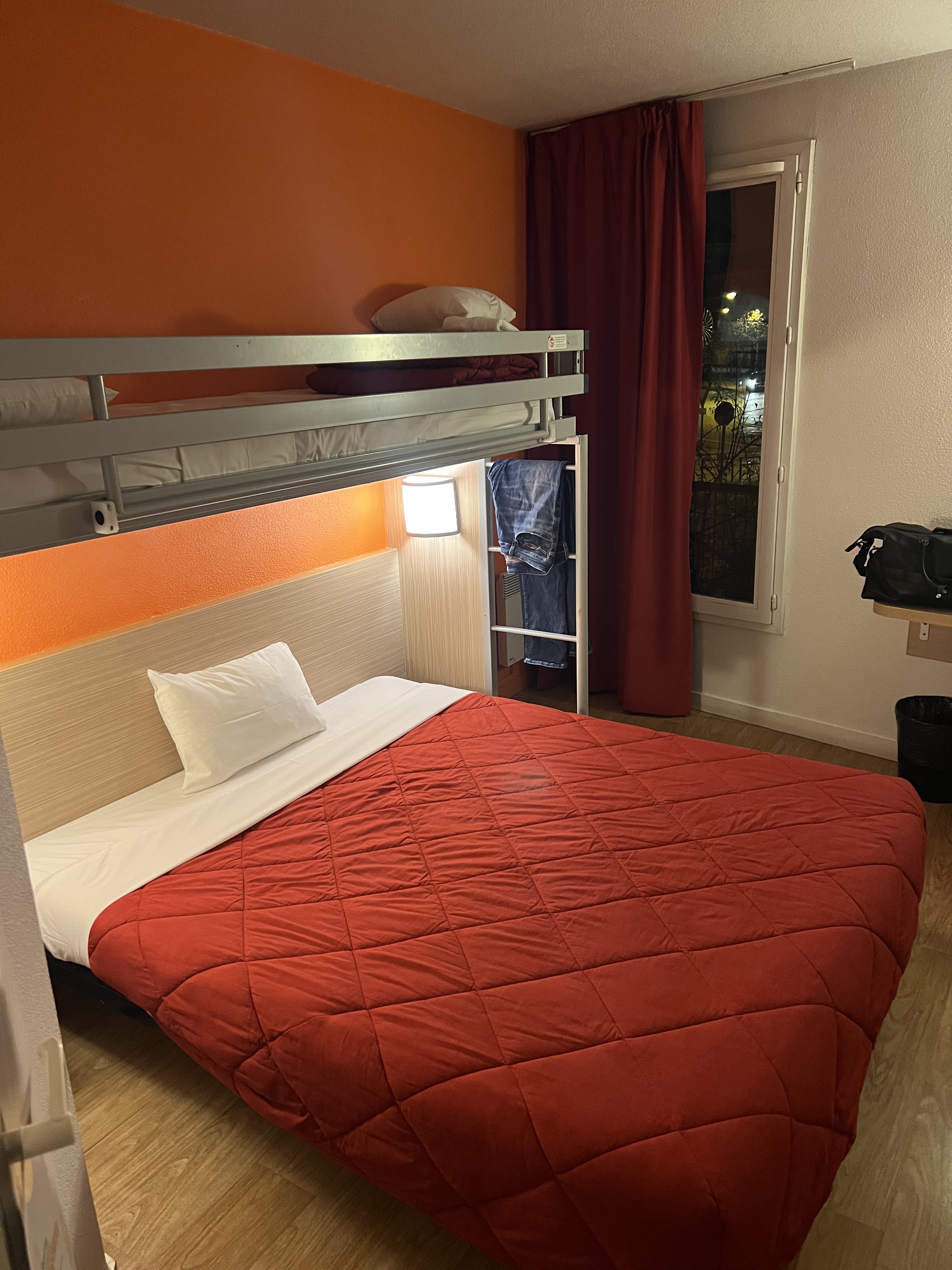 Établissement à fuir plus de 80€ la nuit pour une chambre pour 2 adultes et un enfant. Le lit du haut pas fait, toilettes bouchés, sans parler des clients qui parlent à point d'heure dans les couloirs, mais normal vu que aucune consigne n'est donnée pour ce type de personnes ne respectant pas les autres. Après avoir fait remonter les informations auprès de l'accueil, nous avons juste eu le droit à faite une réclamation. Chose faite mail reçu avec des excuses mais aucun geste commercial. Fuyez vraiment