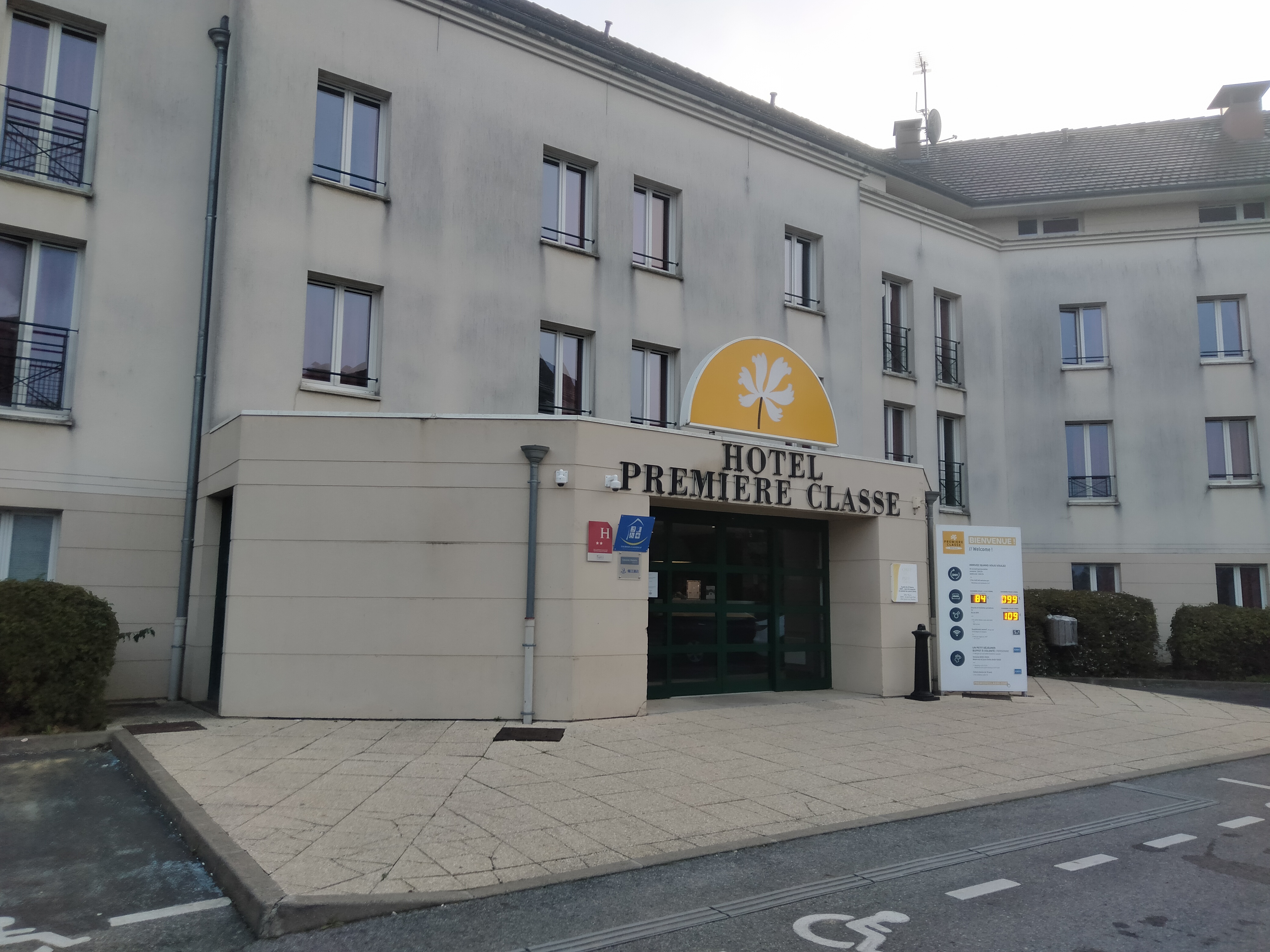 Hotel premiere classe bien meilleur qu'attendu. Parking gratuit, wifi fonctionnant très bien et très bien situé (pas très loin de Disney). Possibilité de manger au restaurant de l'hôtel Campanile d'à côté (-20 % sur l'addition). Hôtel très confortable et agréable. Beaucoup d'étrangers de passage.