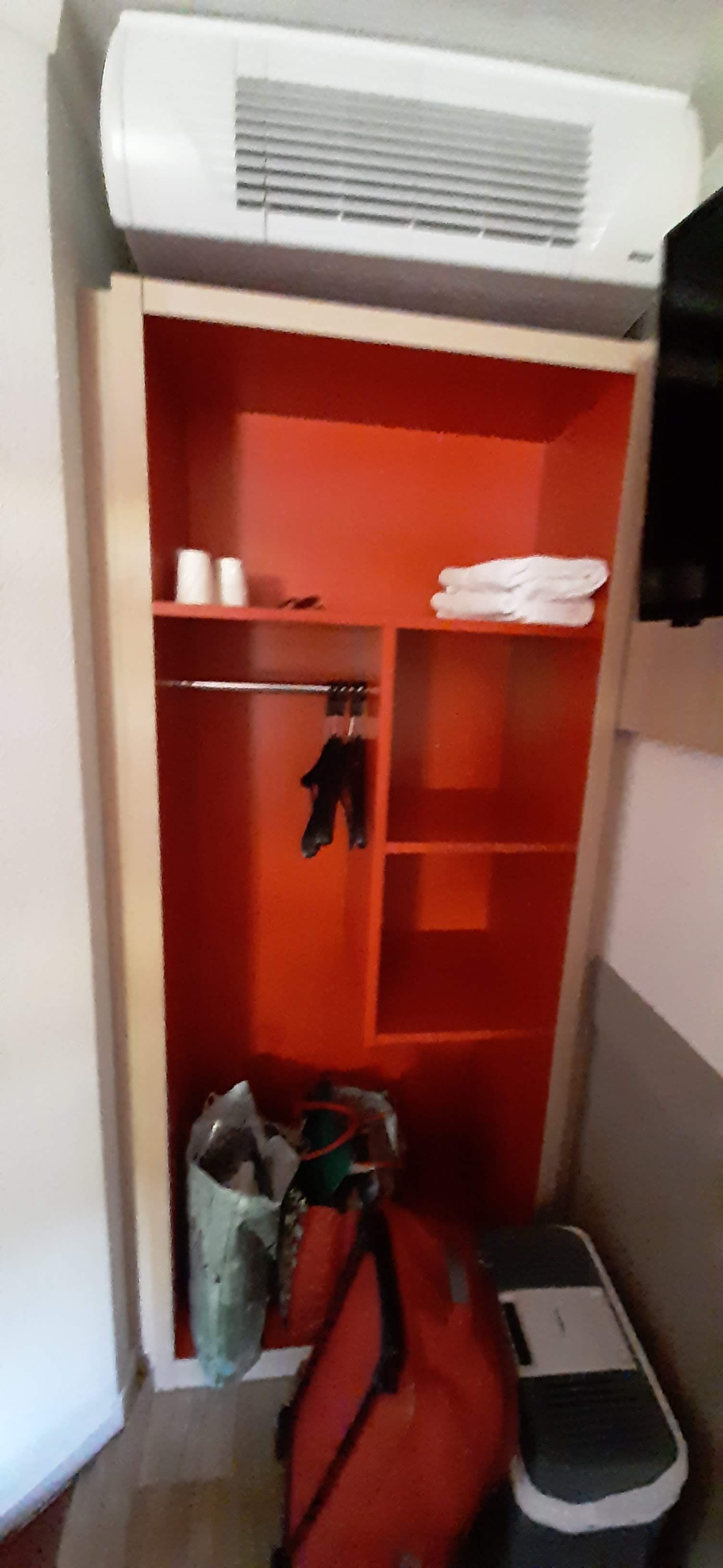 Chambre dont le ménage n'a sûrement pas été fait. Même si ce n'est pas cher, c'est un minimum . Et encore je n' ai pas pris en photo les mouches mortes et les interrupteurs à la tête du lit avec du scotch.☠️