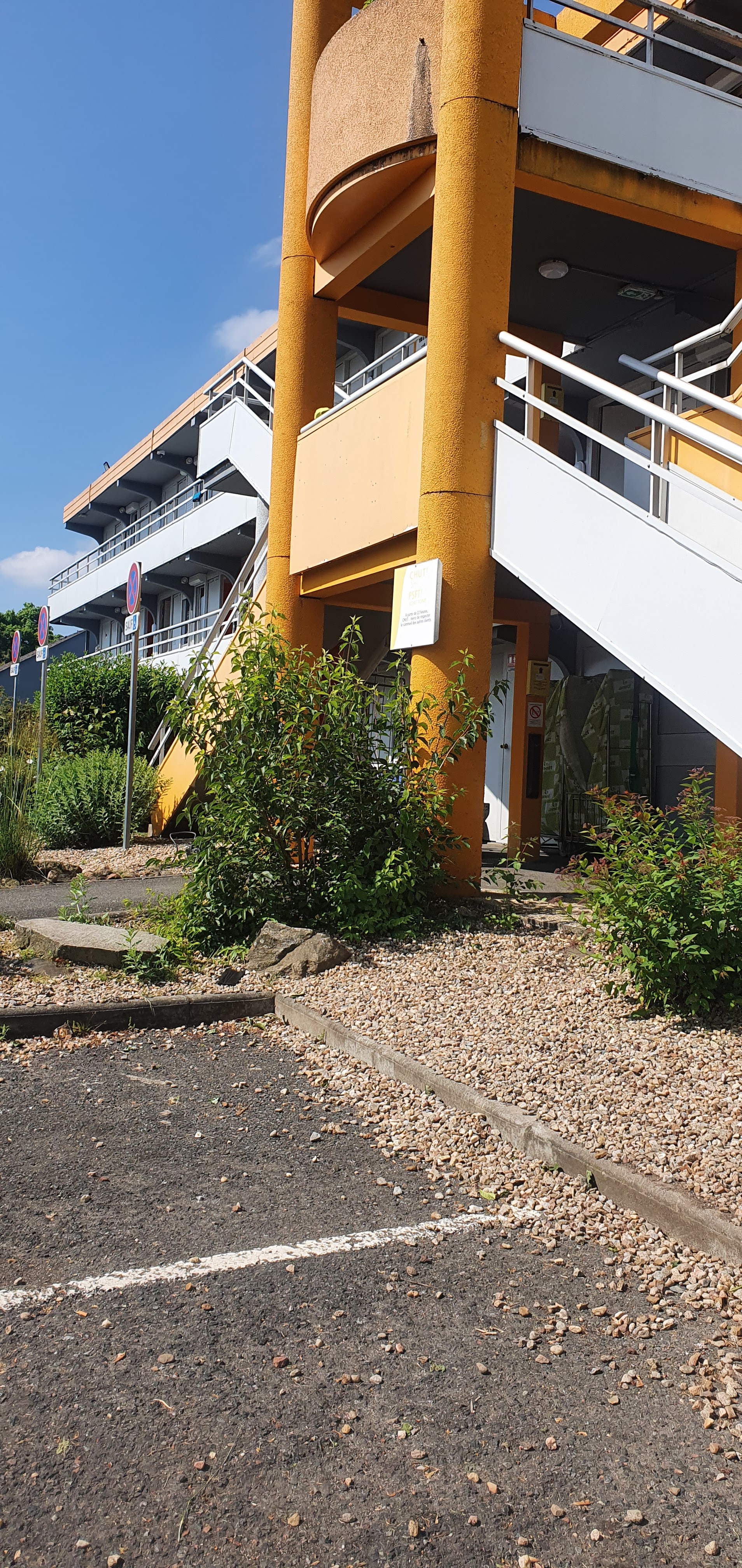 Hôtel caché à côté du BB hôtel situé dans une zone industrielle, grand parking, accueil sympa et disponible mais chambre située à l' extérieur pas très calme avec les allées et venues , chambre petite, salle de bain aussi , manque de luminosité, tristounet mais vu le prix on va pas chipoter